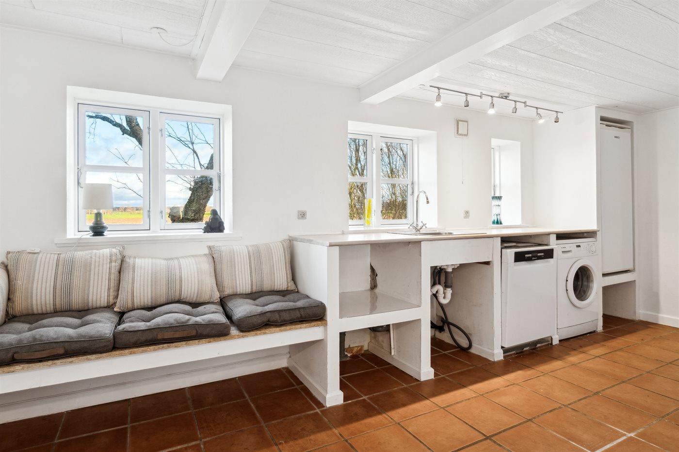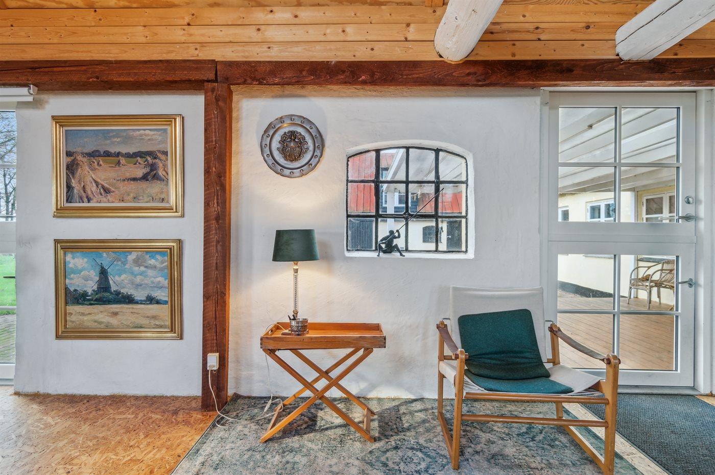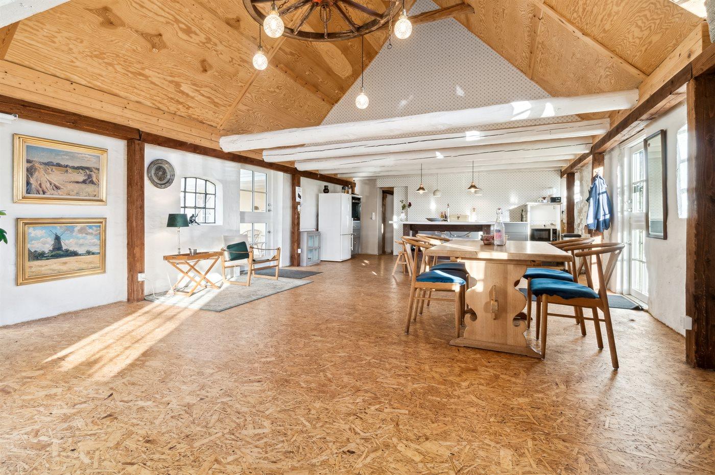 Sommerhuset er i to afdelinger, der selvfølgelig er forbundne med hinanden. En meget stor stue med brændeovn, køkkenafdeling og i det hele god plads til alle og så en mindre stue med plads til hygge og fællesskab. Har man brug for ro til at læse en bog eller at sidde og slappe af, så anbefales reposen, som et roligt område. Den store have, der omgiver huset, er delvis lukket, så man lade hundene løbe frit i indhegningen, når der er brug for det. Ønsker man fred og ro, så er dette virkelig et godt sted at feriere.