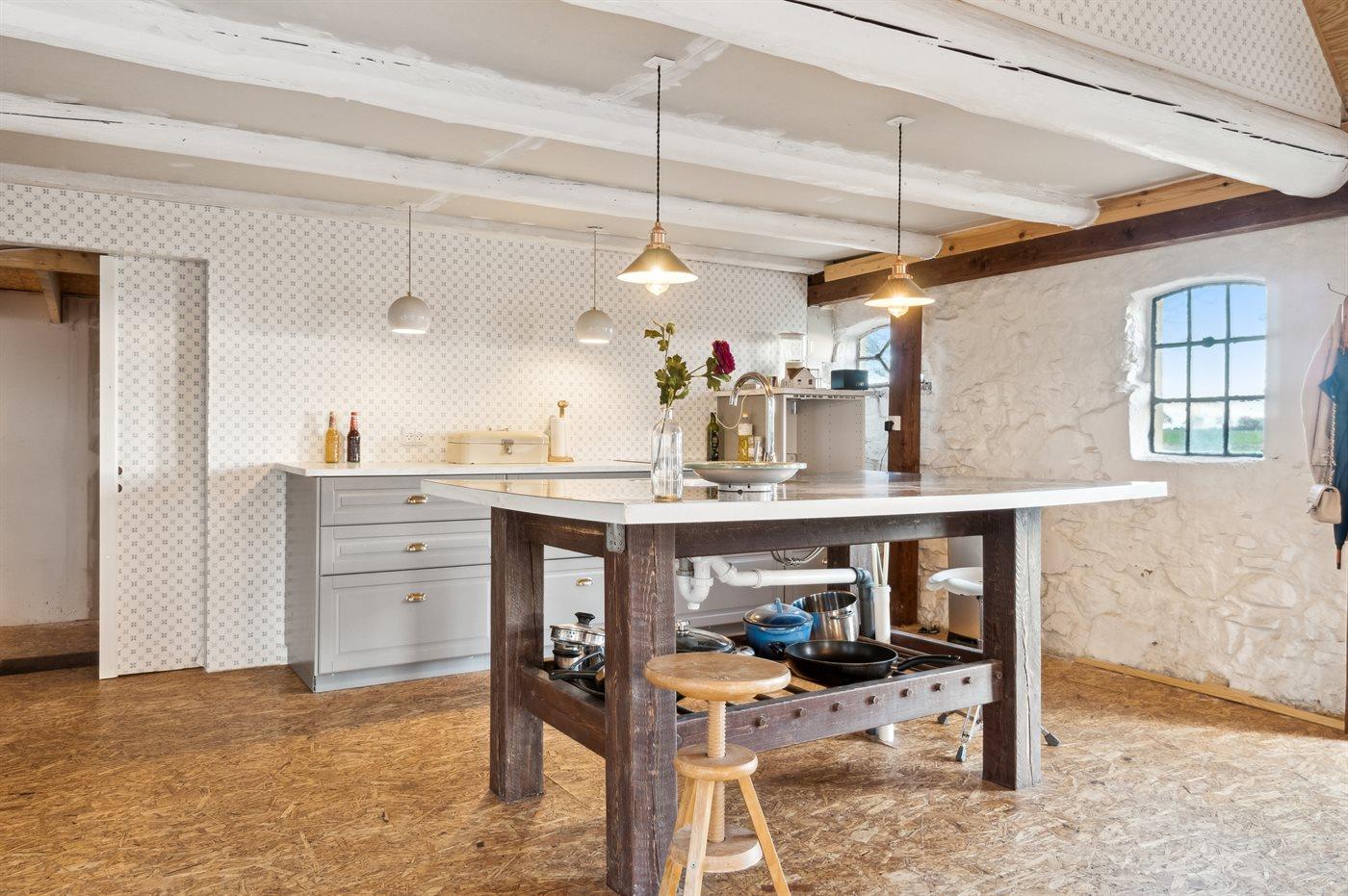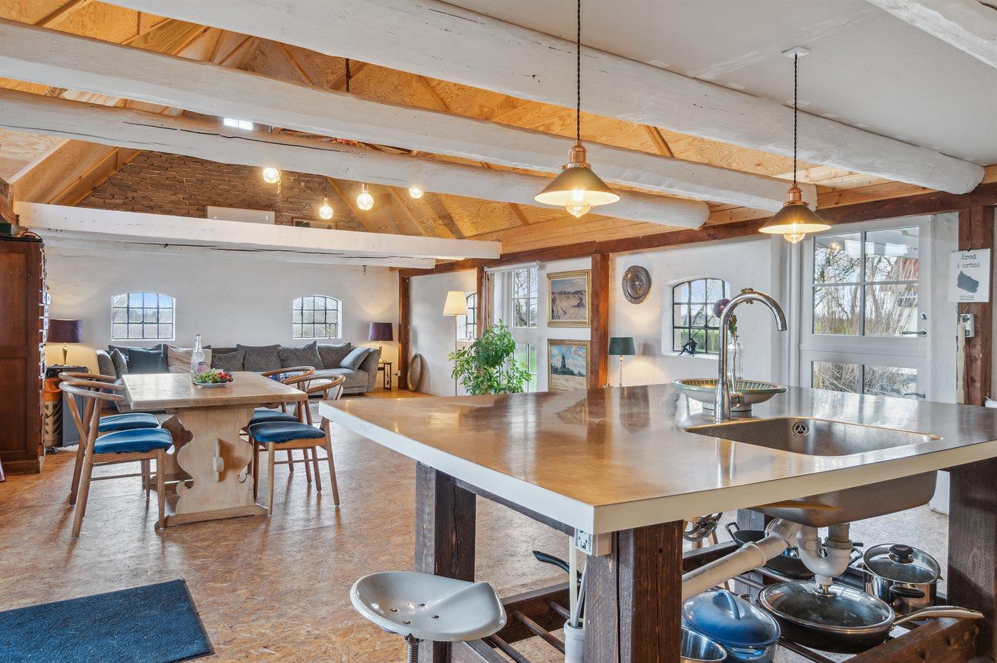 Køkkenet er udstyret med 2 køleskabe. Der er 4 induktionskogeplader, varmluftovn, mikrobølgeovn samt opvaskemaskine.