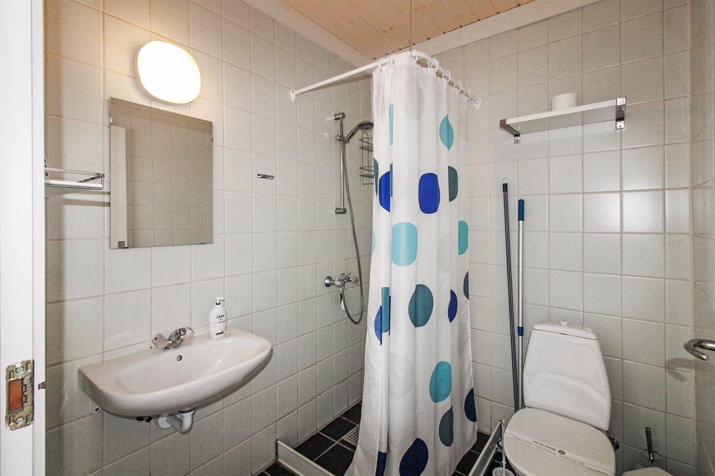 Der er 1 badeværelse med bruser og 1 toilet.