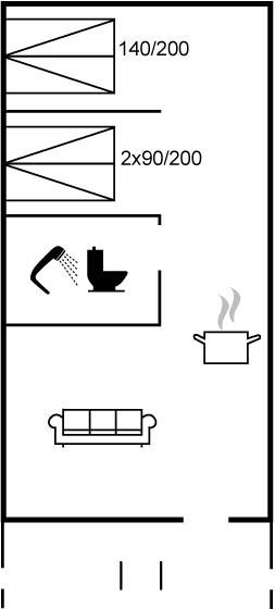Der er i alt 2 soveværelser. Sovepladserne fordeler sig på: 4 sovepladser i dobbeltsenge. Derudover er der 1 stk. barneseng.