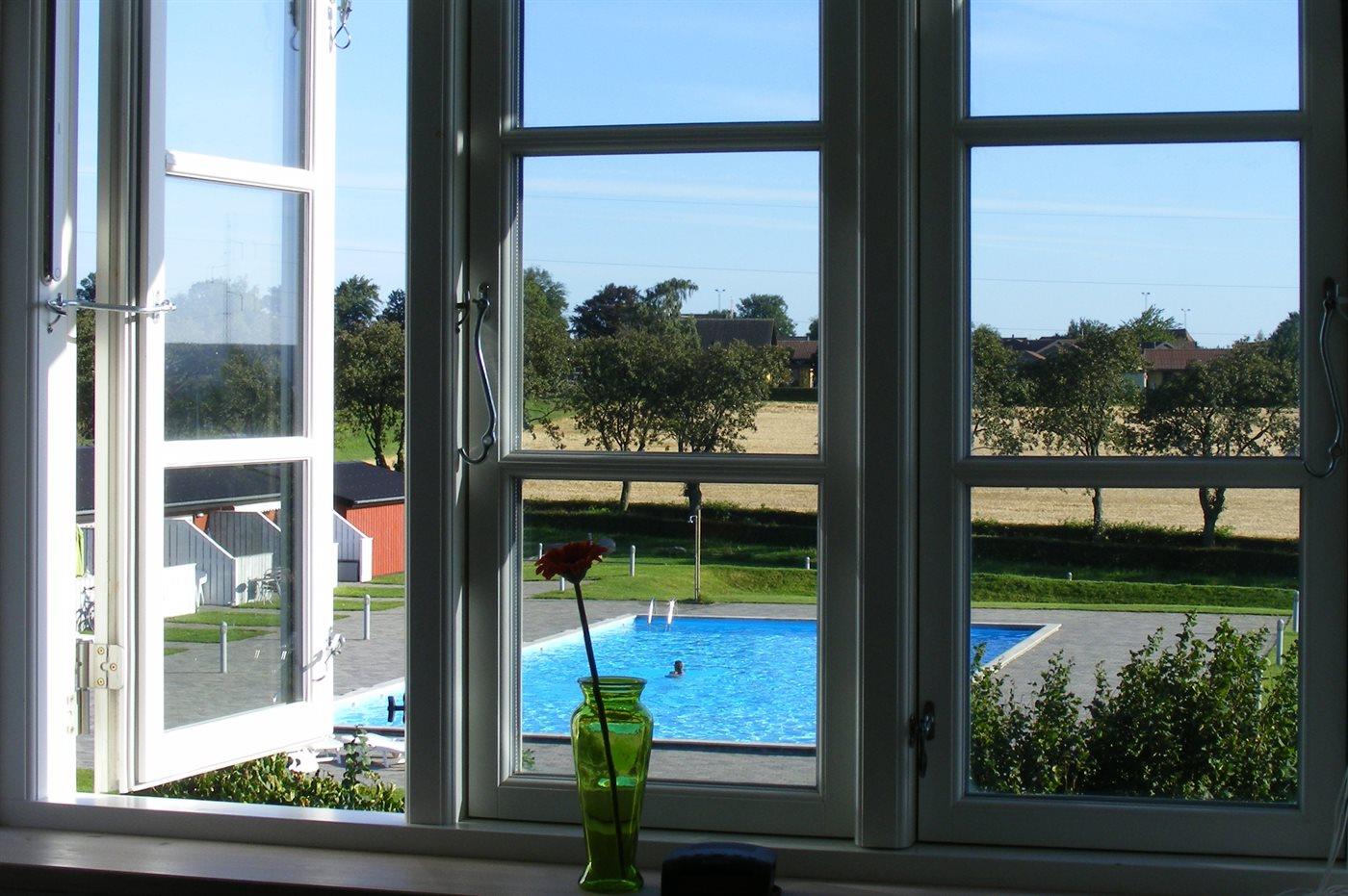 Charmerende ferielejlighed i to plan med fælles pool og legeplads i Aakirkeby, Bornholm.