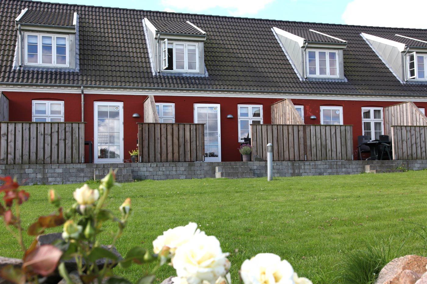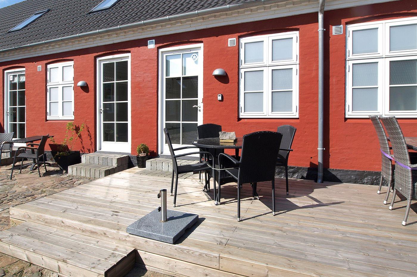Indgang til lejligheden sker via en dejlig fælles, solrig gårdsplads og hver bolig har sin egen terrasse.