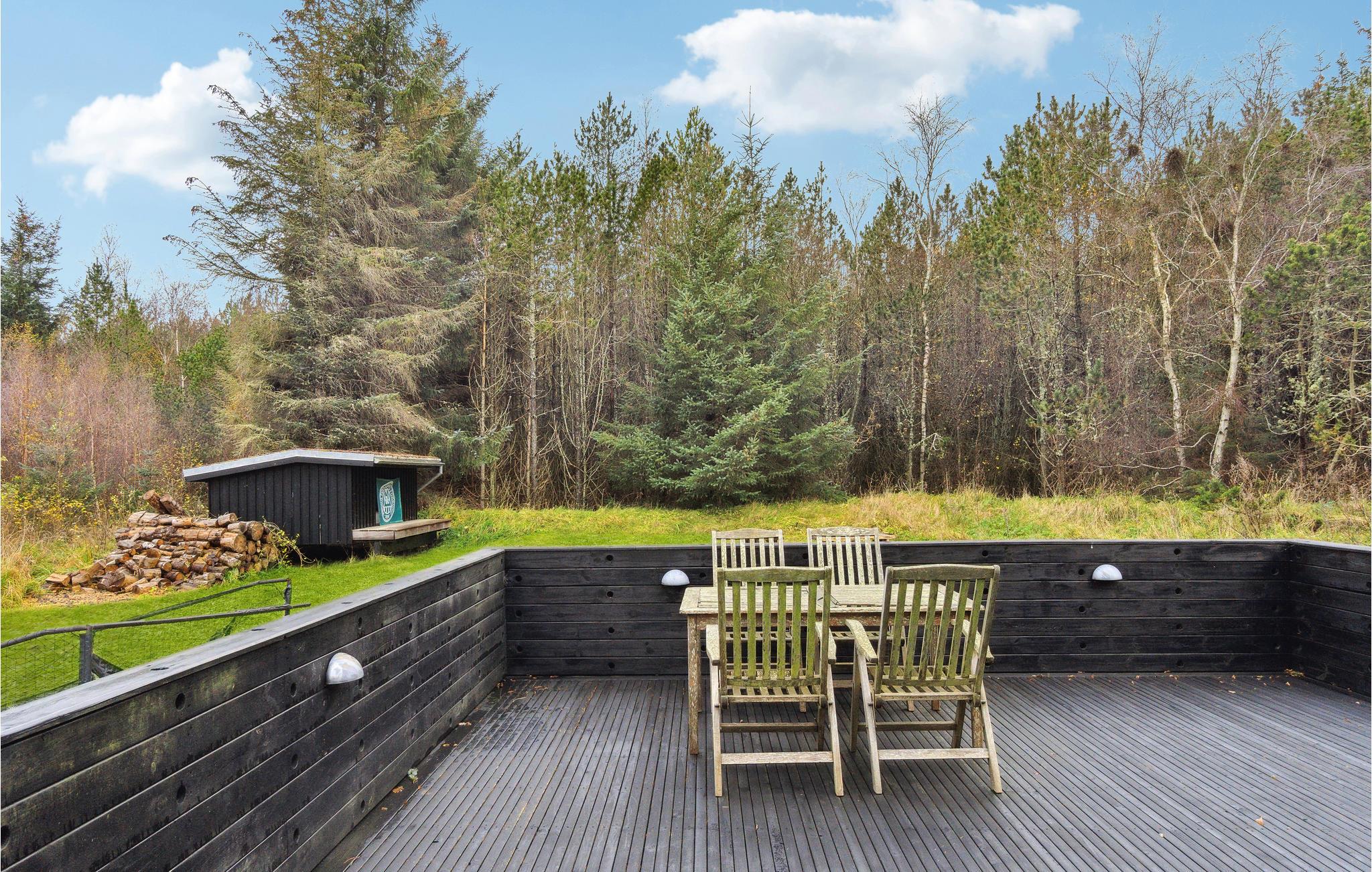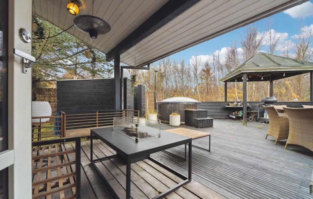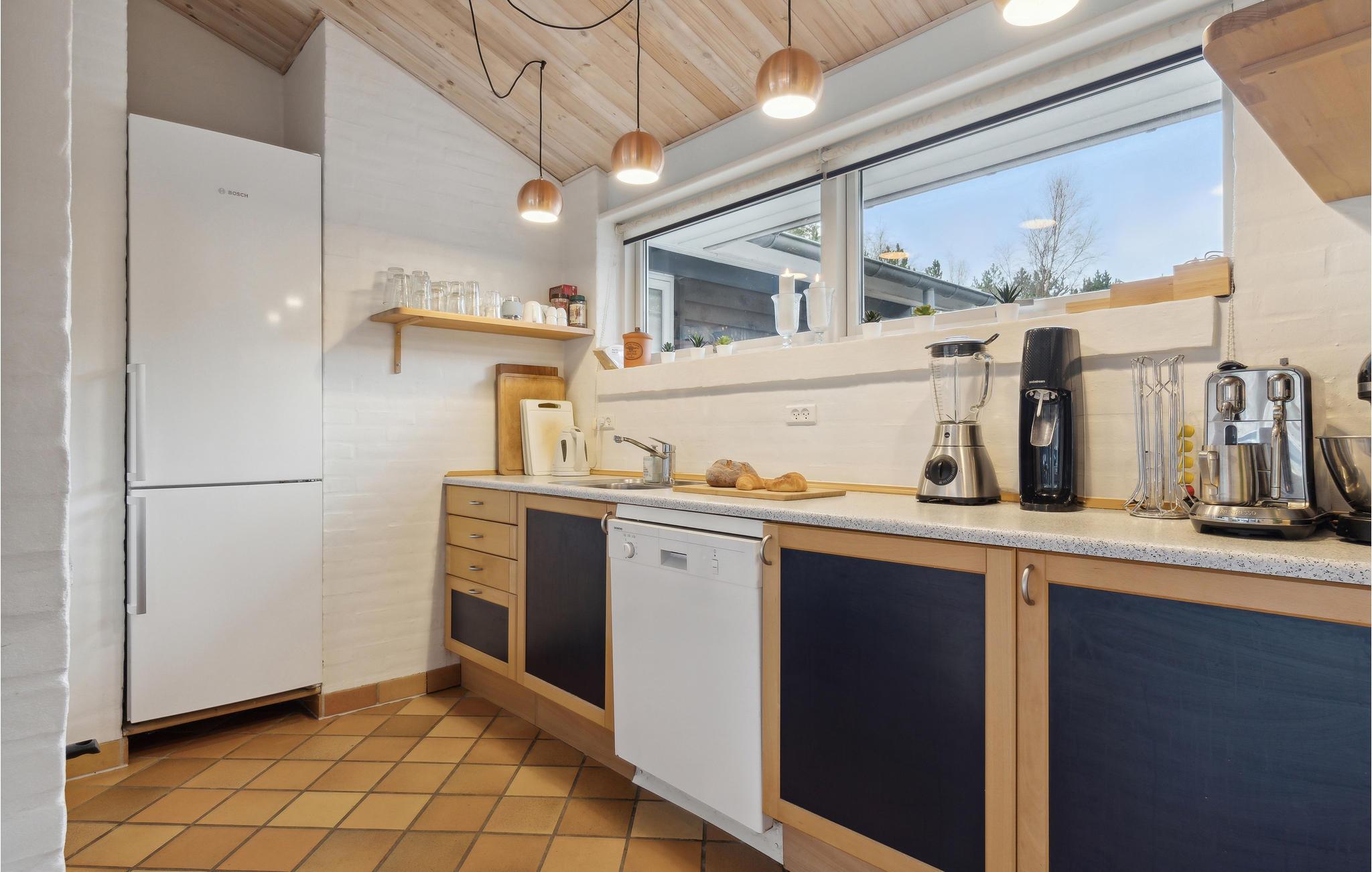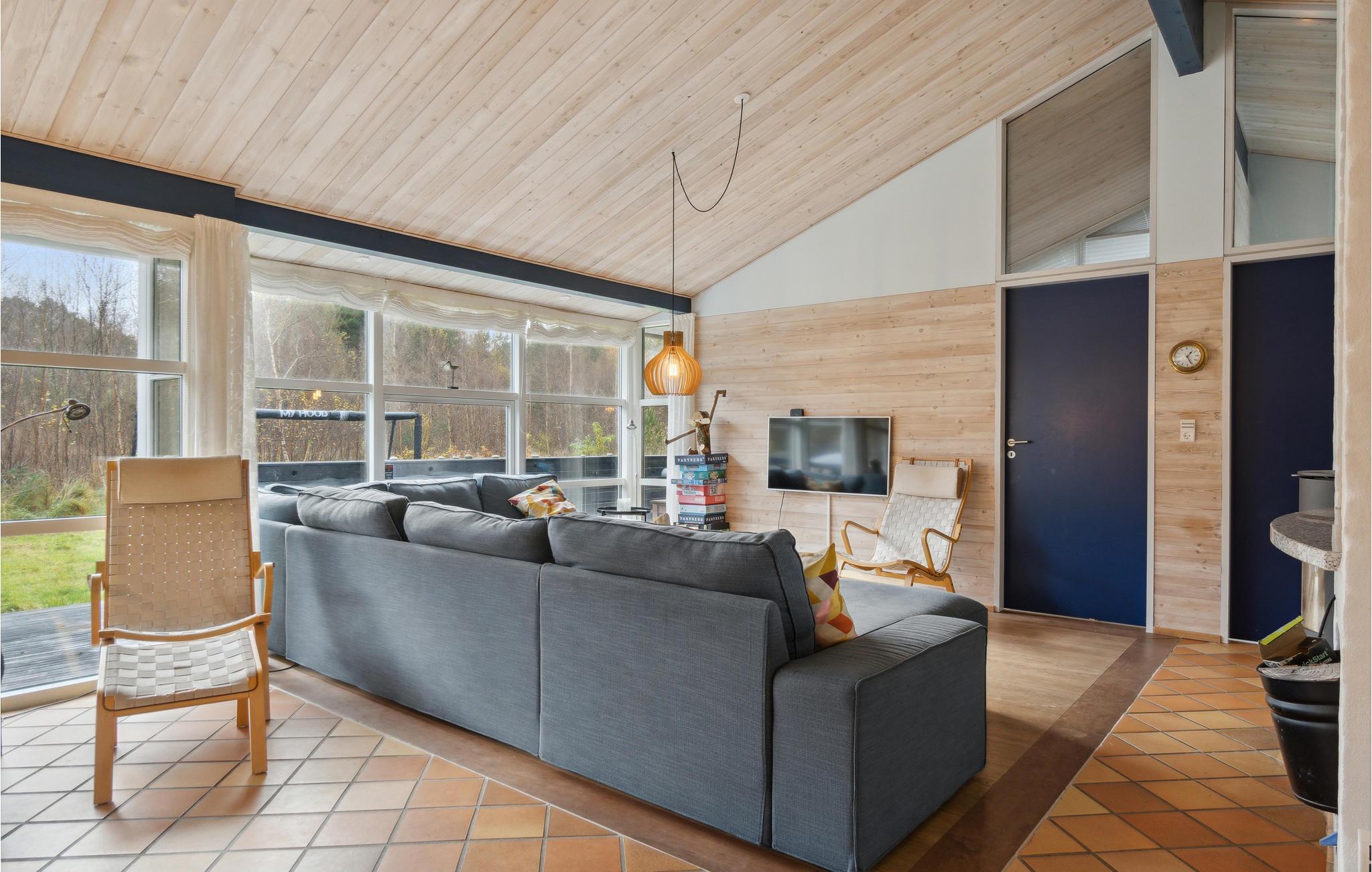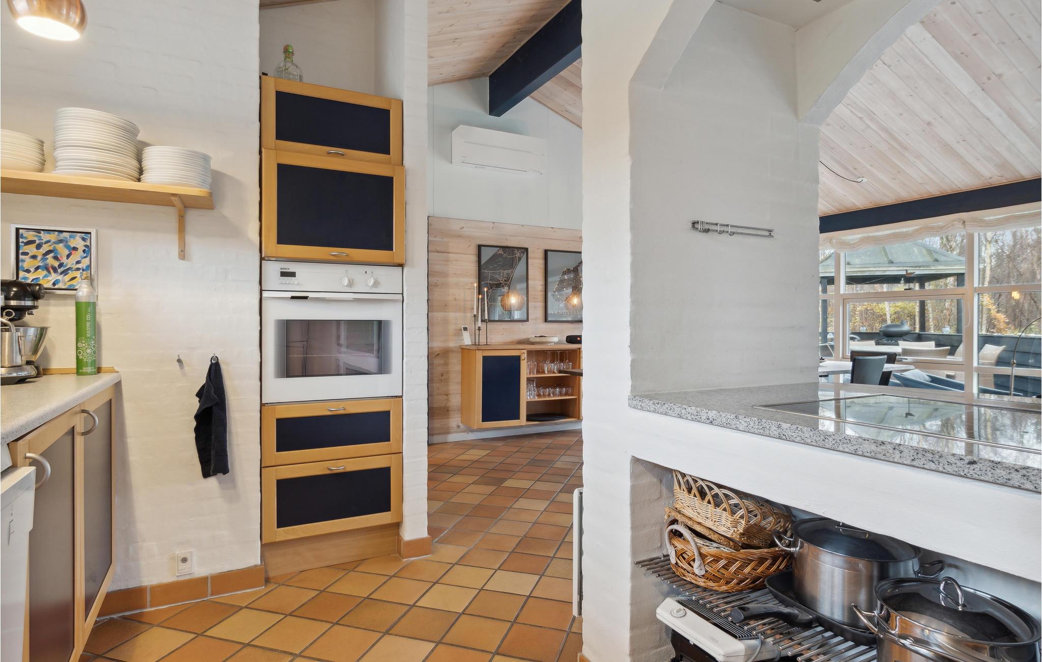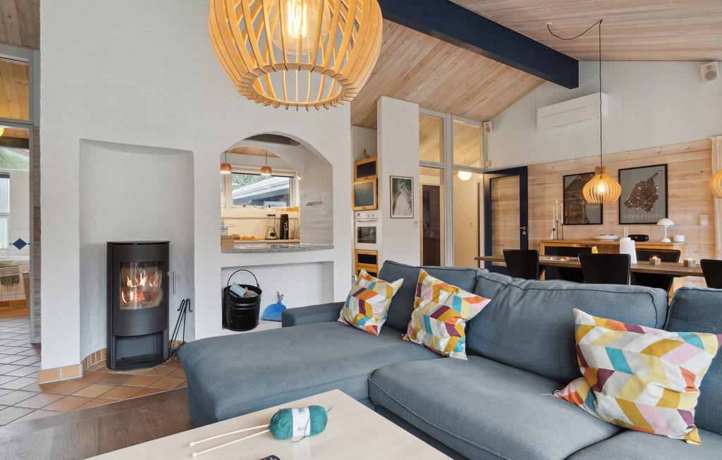 Dette skønne hus byder velkommen i rolige omgivelser, blot en lille gåtur fra havet. Opholdsrummet med smagfuld indretning, lyst træ, stor viduesfassade og høje lofter giver en følelse af rummelighed, luftighed og komfort. Her er rart at være, og nærvær og kvalitetstid med familien er i højsædet. Uanset om I laver mad og spiser sammen eller sludrer i den behagelige sofa, kan I nyde jeres tid sammen i fulde drag. Hiv strikketøjet, bogen eller de medbragte spillekort frem og hyg jer, mens brændeovnen spreder varme. Indtag morgenmaden ved det lange spisebord og nyd den dejlige udsigt. Den store grund er omgivet af træer og byder på masser af plads til at lege og slappe af. I kan nyde solen på terrassen og senere glæde hele familien med lækre grillretter. Fra huset er der ikke mange skridt til stranden, hvor I slikke sol, plaske i vandet eller gå lange ture.