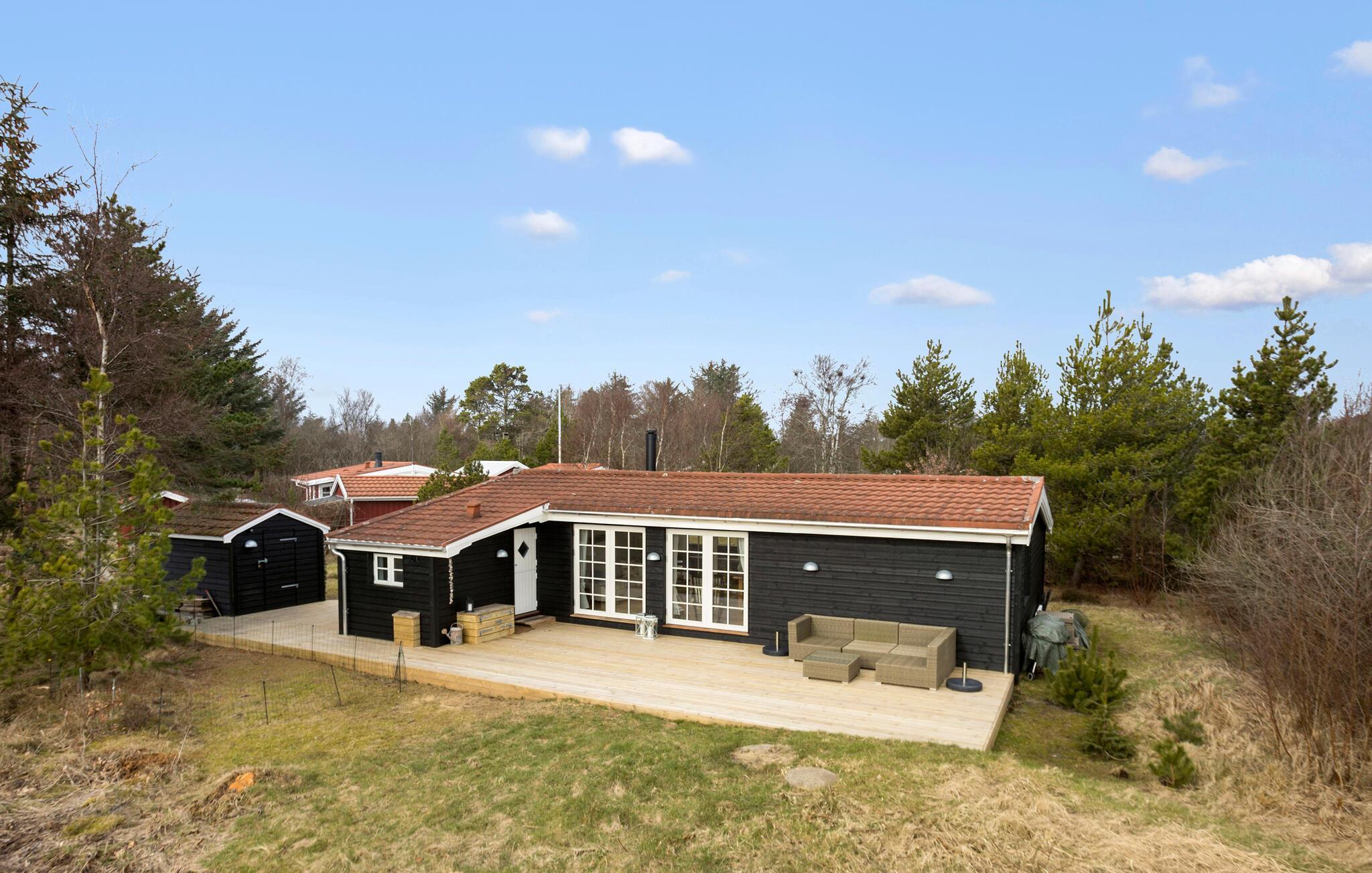Skønt træsommerhus tæt på stranden i Ålbæk med moderne faciliteter og dejlig terrasse til grill og afslapning.