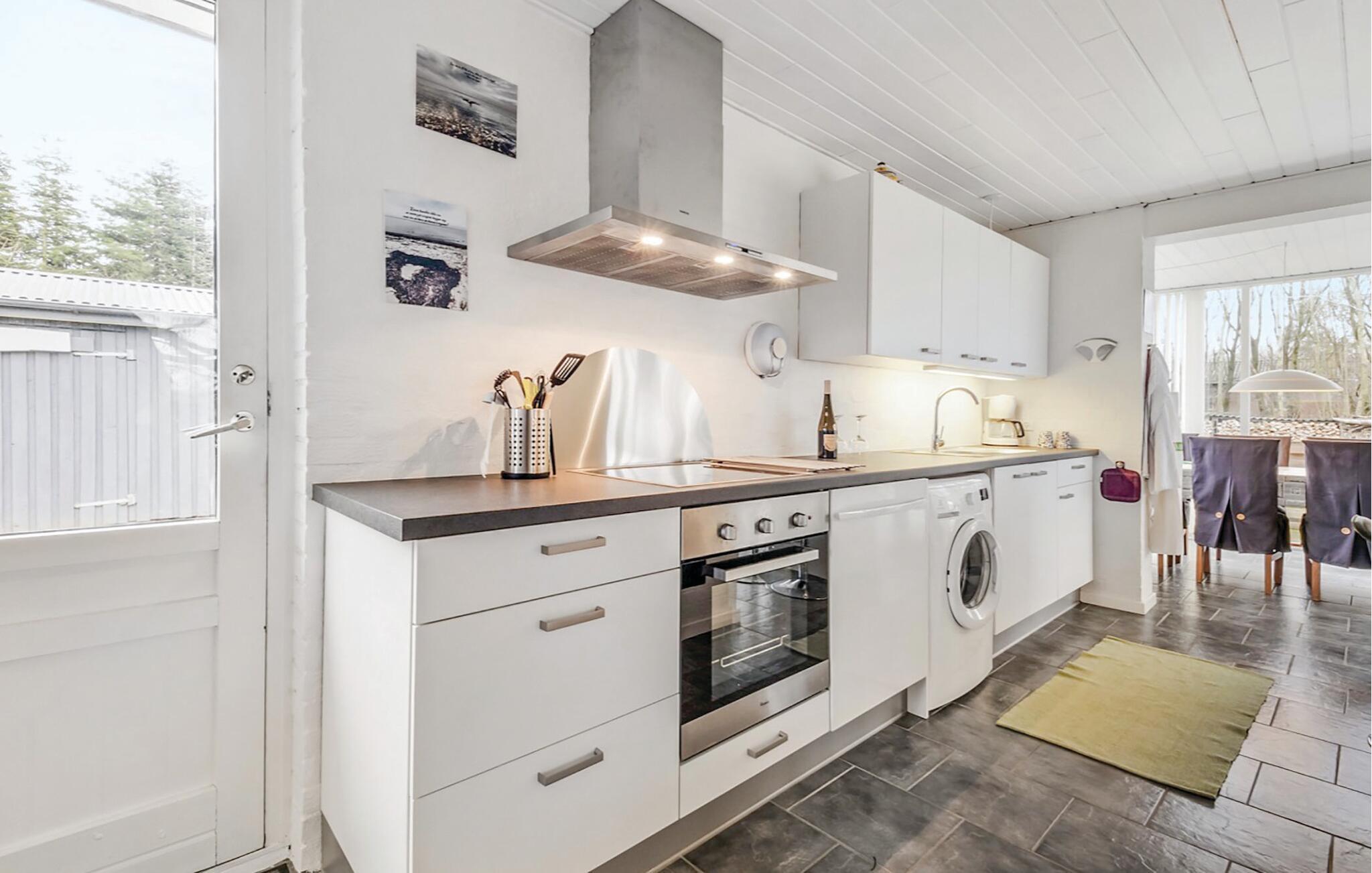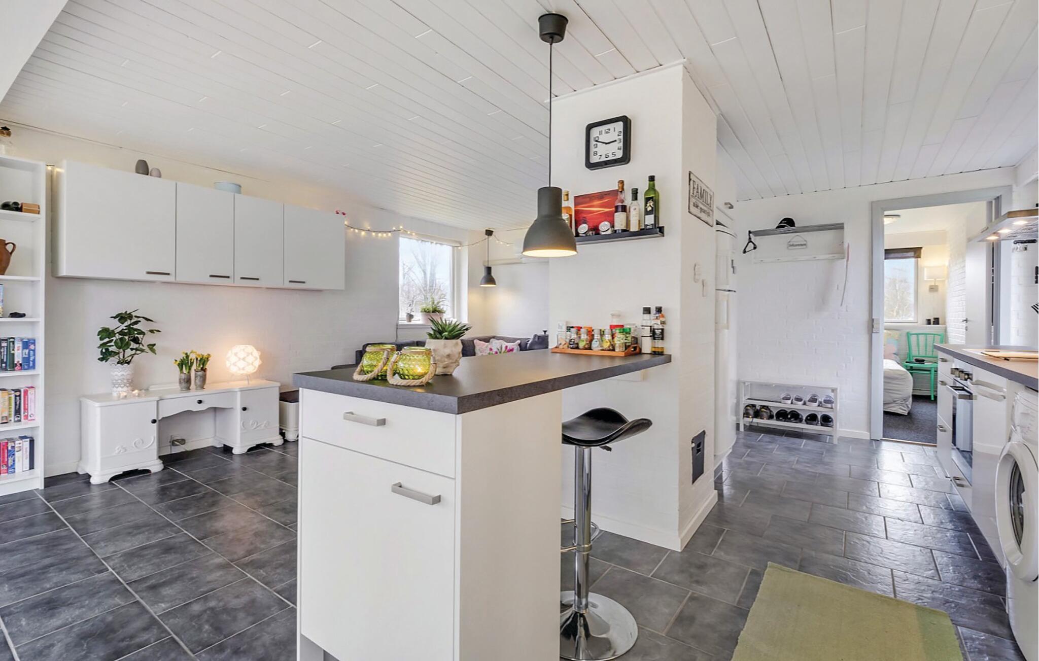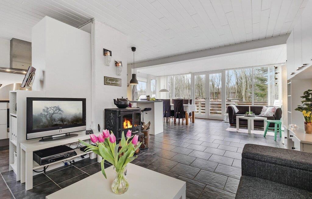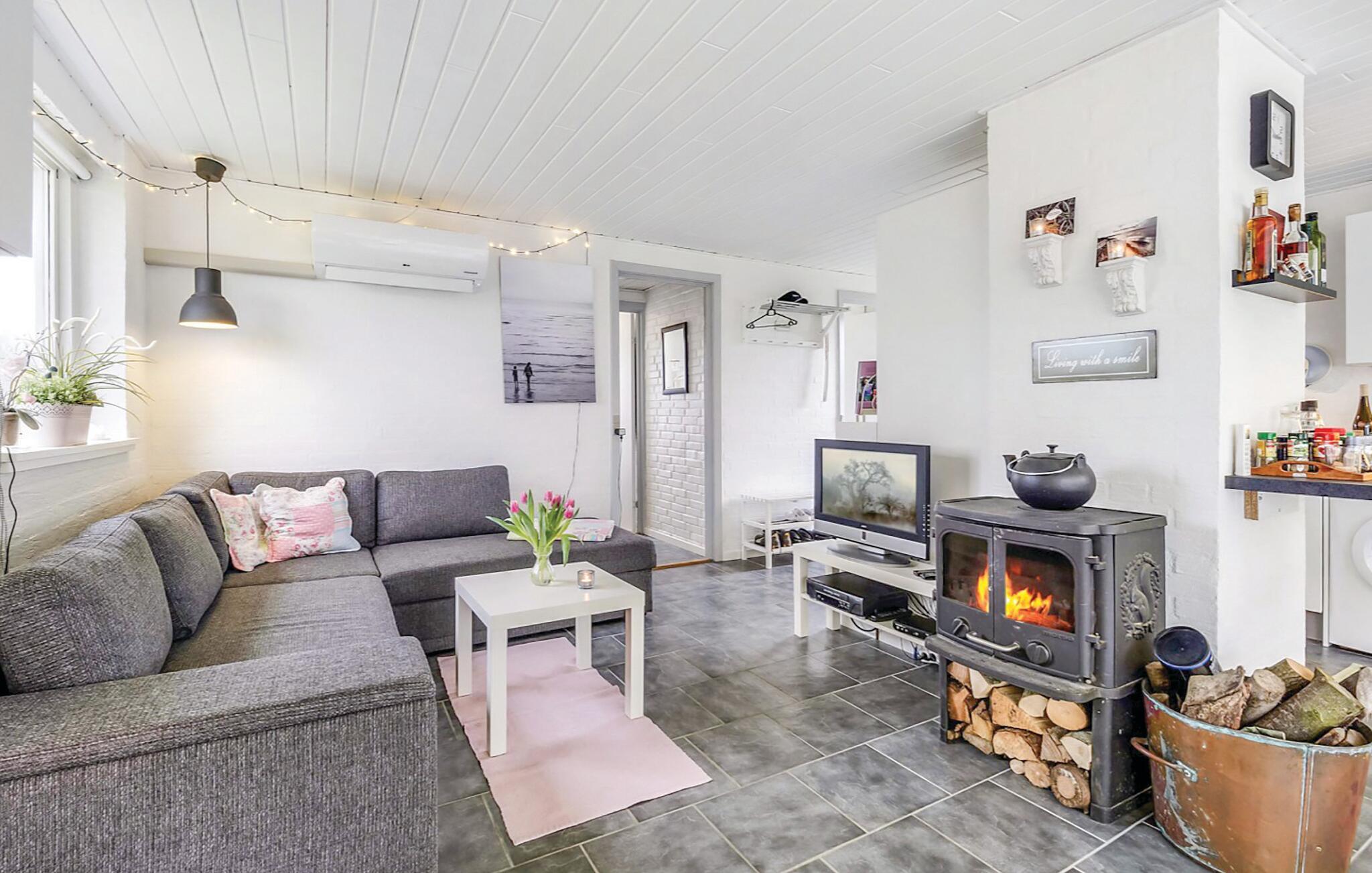 Dette hyggelige feriehus ligger tæt på Limfjorden nær Lihme. Huset er lyst, venligt og moderne indrettet med stue og køkken i et, så familien rigtig kan være sammen. Centralt i stuen er brændeovnen, der spreder både varme og hygge. Huset er indrettet med et soveværelse til to personer og et børneværelse til tre personer. Sofaen i stuen kan desuden hurtigt laves til en seng med to ekstra sovepladser.