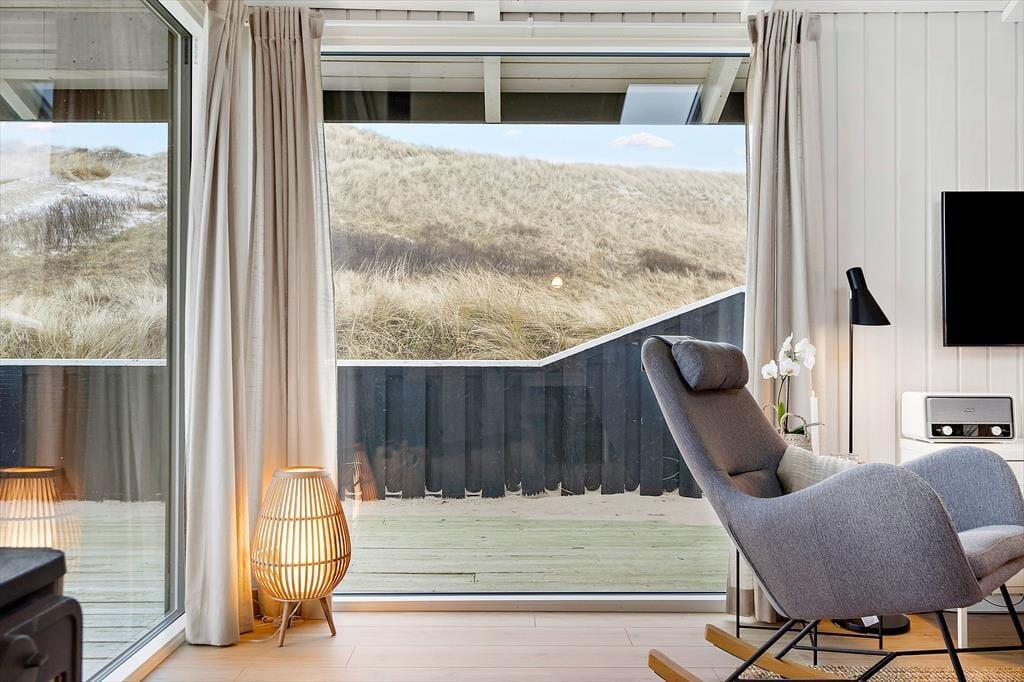 Udsigten til klitterne er flot inde fra huset, og den bliver bestemt ikke mindre betagende, når I opholder jer ude i det fri på den store naturgrund. Fra stuen har I direkte adgang til en skøn og delvist overdækket terrasse, der breder sig mod syd og vest, og mod øst venter endnu en skøn terrasse, som skærmes af et plankeværk mod naboerne. Det er nemt at føle sig fuldstændigt afslappet, når man sidder her i høj sol.