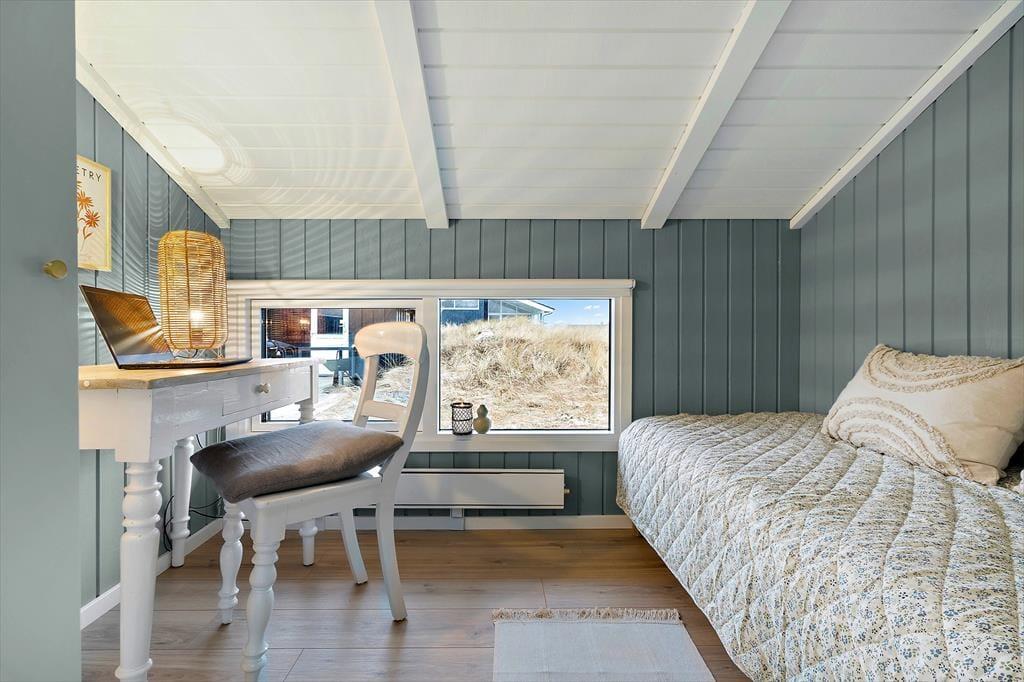 Kun en enkelt klitrække adskiller jer fra Aargab Strand, når I holder ferie i dette hyggelige træsommerhus på Strandkrogvejen 60. Det betyder, at I har særdeles kort afstand til Vesterhavet, hvis I vil bade eller gå tur i vandkanten, og fra huset kan I kigge lige ud på bølgende marehalm og hybenbuske.