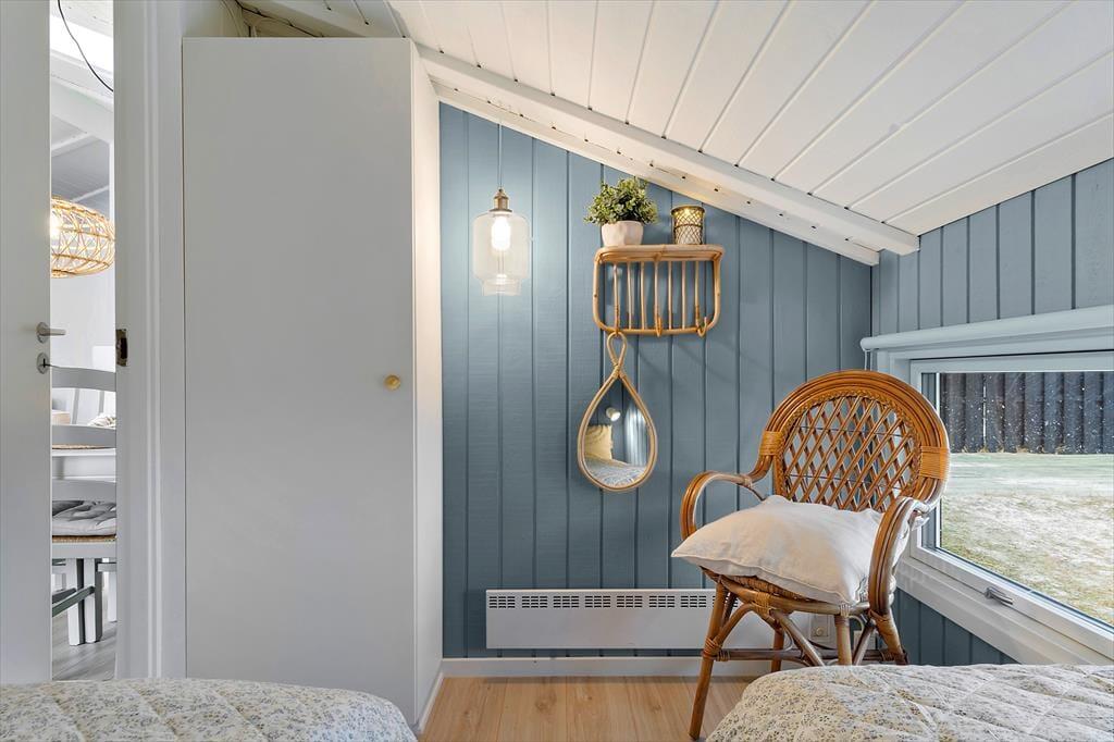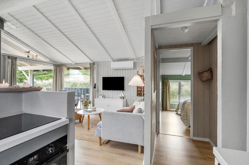 Med sådan en udsøgt beliggenhed er det selvfølgelig oplagt at bruge en stor del af ferien udenfor – men det er nu også skønt at tage en hjemmedag i sofaen nær brændeovnen. Med loft til kip og træbeklædte vægge emmer stuen af klassisk sommerhuscharme, så det er et skønt sted at slappe af. Der er selvfølgelig gratis internet i huset så I kan følge med i alle nyheder eller streame jeres yndlingsfilm på fjernsynet. En spændende bog eller tv er også god underholdning, hvis ikke I bruger tiden på yatzy og sudokuer og ellers vil hemsen hurtigt blive udpeget som børnenes foretrukne legeområde. Huset har i 2024 fået en gennemgående renovering, med bl.a.et nyt tag, nye vinduer, nyt gulv, nye møbler og et nyt køkken, som ligger i åben forbindelse med stuen. Soveværelser er der tre af med i alt fem sengepladser, og i forlængelse af det moderniserede badeværelse, finder I saunaen, hvor I kan nyde livet med lidt ekstra velvære.
