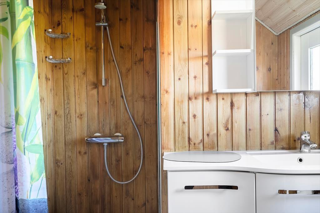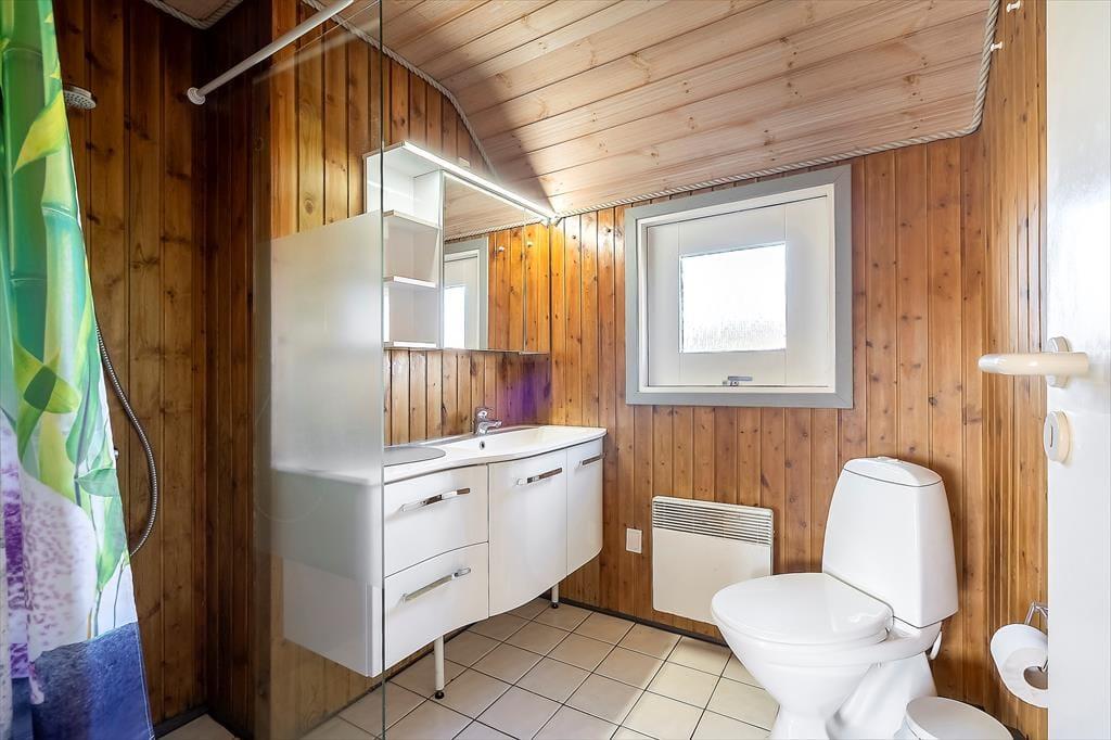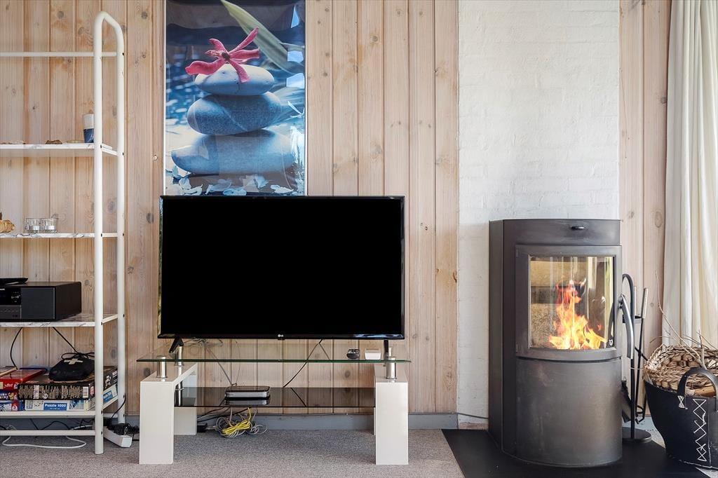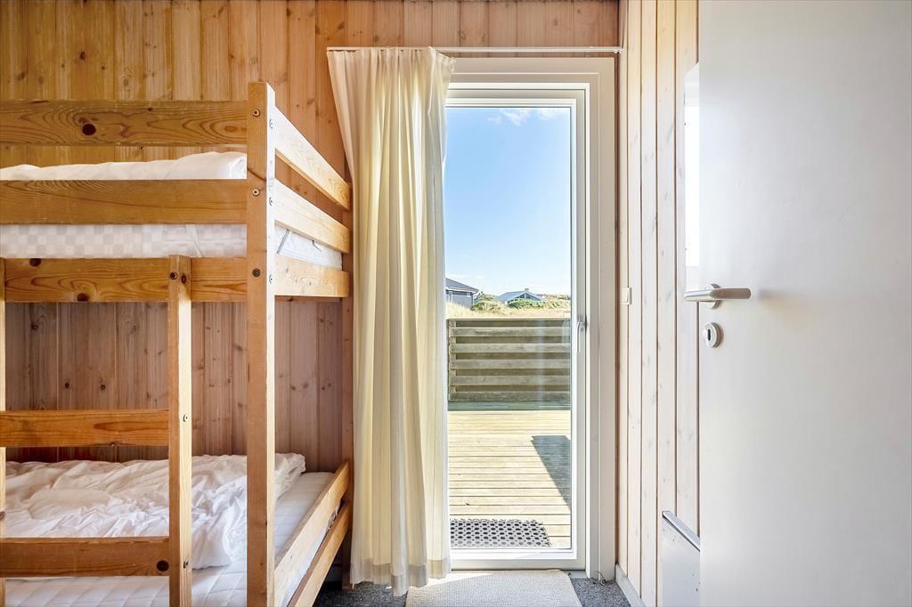Indenfor venter et stort, lyst og indbydende køkken-alrum, hvor stue, spiseplads og køkken smelter sammen i én åben ramme, der indbyder til fælles hygge. De store vinduespartier sørger for, at lyset strømmer ind og giver en følelse af at være i ét med naturen udenfor. Når aftenen falder på, kan I tænde op i brændeovnen og lade varmen brede sig i rummet, mens I samles om brætspil eller film på sofaen. De tre gode værelser byder på hver deres charme – to med dobbeltsenge og ét med køjeseng, hvor børnene kan få deres helt eget lille frirum. Gulvtæpperne både i stue og på værelserne giver en rar og lun stemning, der gør det let at smide skoene og føle sig hjemme fra første øjeblik. Her får I rammerne til både afslapning og nærvær, præcis som en ferie skal være.