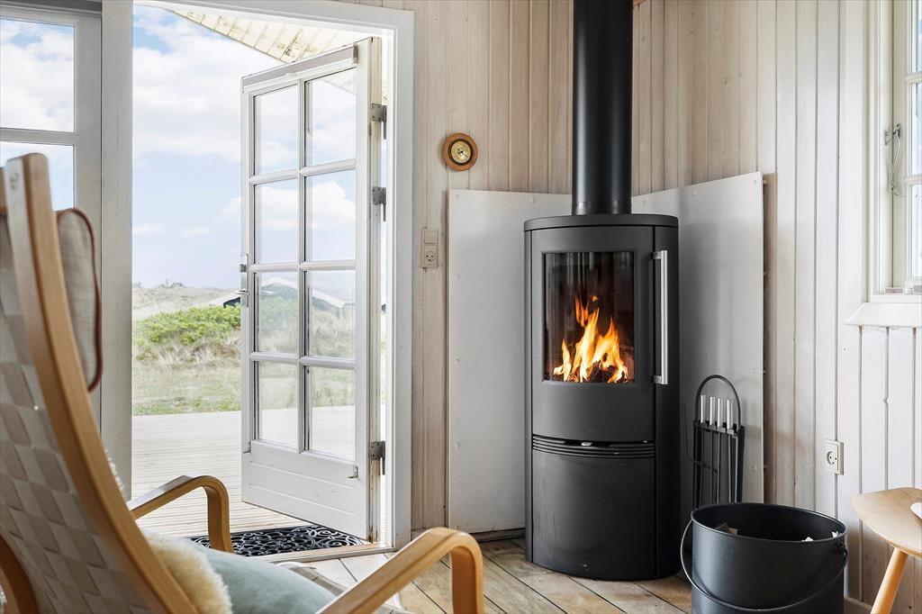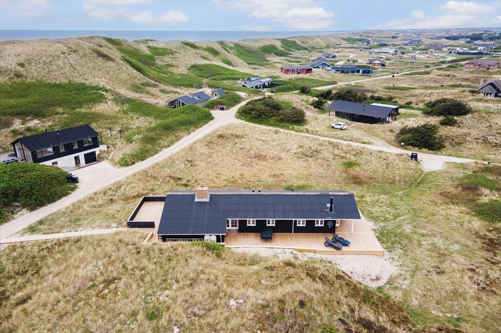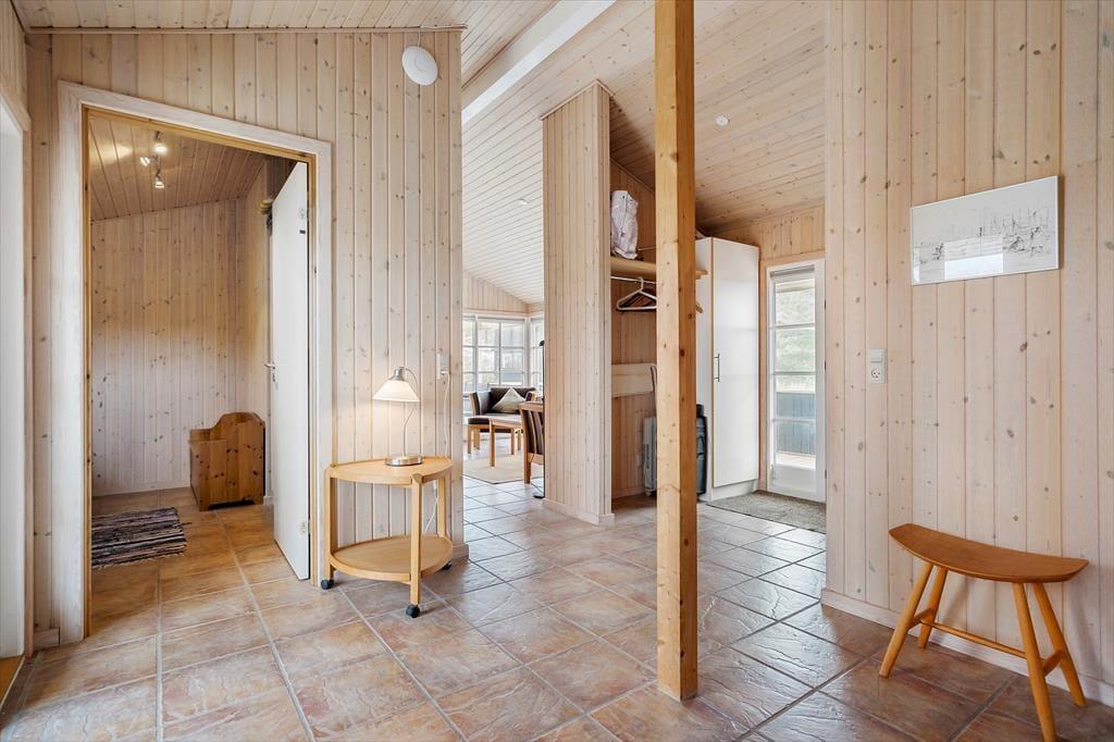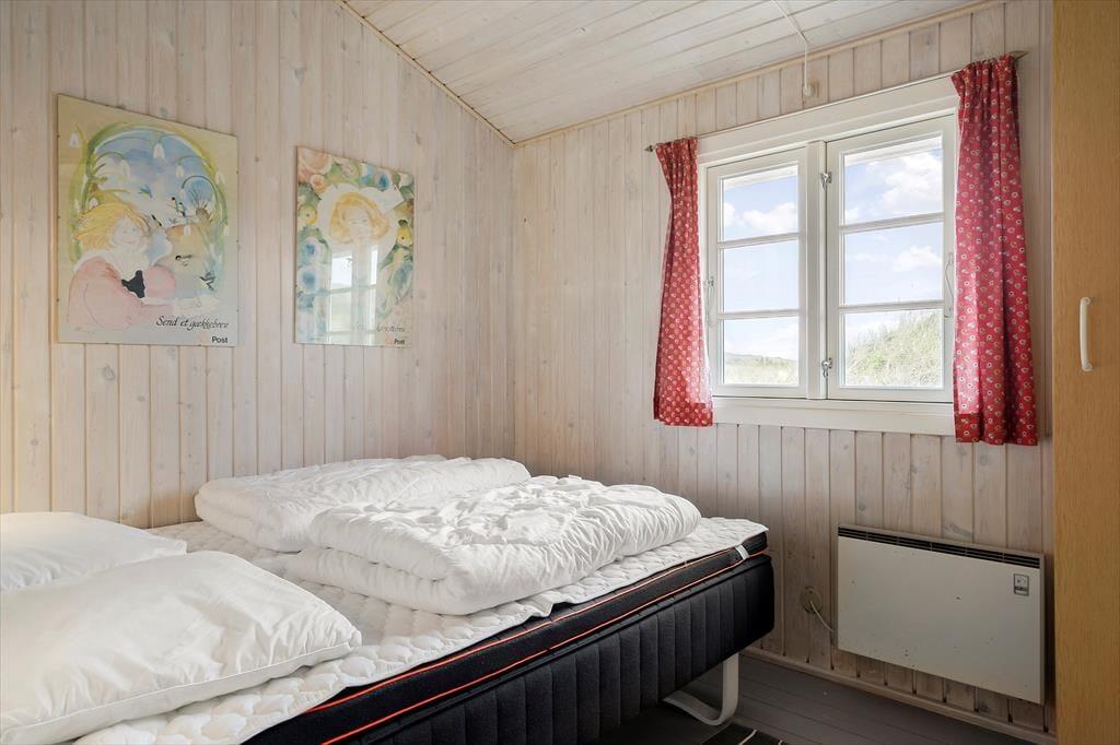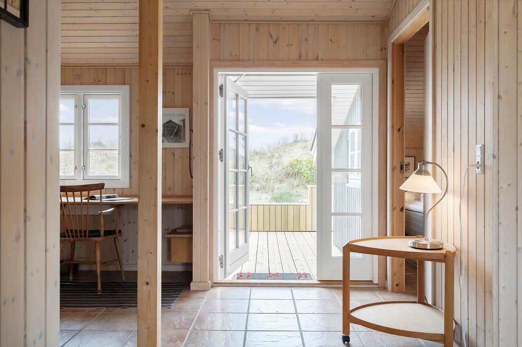 Sommerhuset blev moderniseret og tilbygget i 2008, så I har hele 120 flotte og velindrettede kvadratmeter at brede jer på. Atmosfæren er lys og skøn, og gennem vinduerne har I den flotteste udsigt til de høje klitter, der hæver sig over det naturskønne sommerhusområde. De tre soveværelser har gode bokssenge til i alt seks personer, og centralt i huset ligger to badeværelser, hvoraf det ene er med vaskesøjle og det andet med sauna. Husets skønne opholdsmiljø er også værd at bemærke. Ved entréen har I en lille kontorplads, mens et stort og indbydende køkken-alrum ligger i husets nordøstlige ende. Her er der brændeovn, fladskærms-tv og meget andet, der gør det til et perfekt sted at samles hele familien – og hvis I har mere lyst til en rolig stund med en god bog, kan I rykke ind i pejsestuen, hvor I kan sidde komfortabelt i skæret fra flammerne.