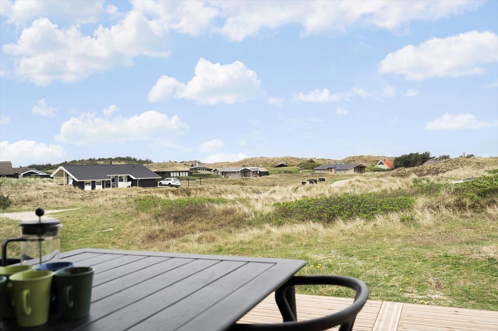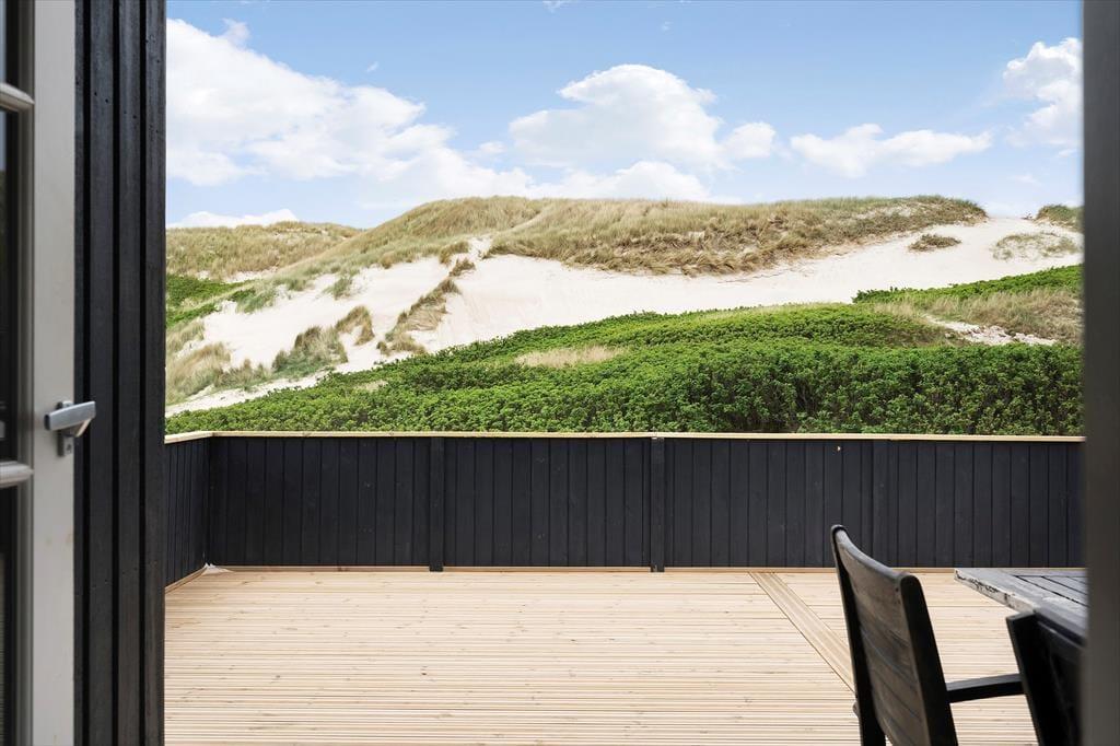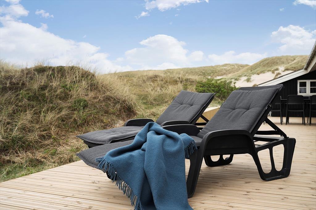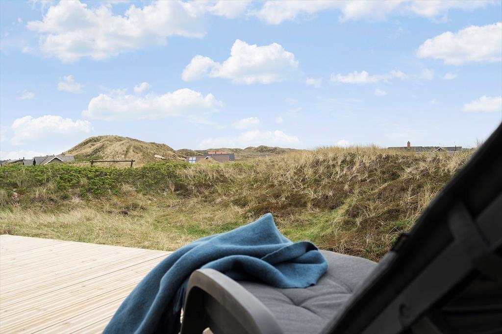 Udsigten til klitterne og det åbne landskab er mindst lige så smuk, når I sidder ude i det fri på husets terrasser. I kan vælge mellem både overdækkede og helt åbne siddepladser, og mon ikke I kan finde en god krog med læ, hvor I kan hygge jer med en kop kaffe, mens I lader tankerne vandre og suger omgivelserne til jer. Til børnene er der en gynge og god plads til at lege på den 2717 m2 store grund.