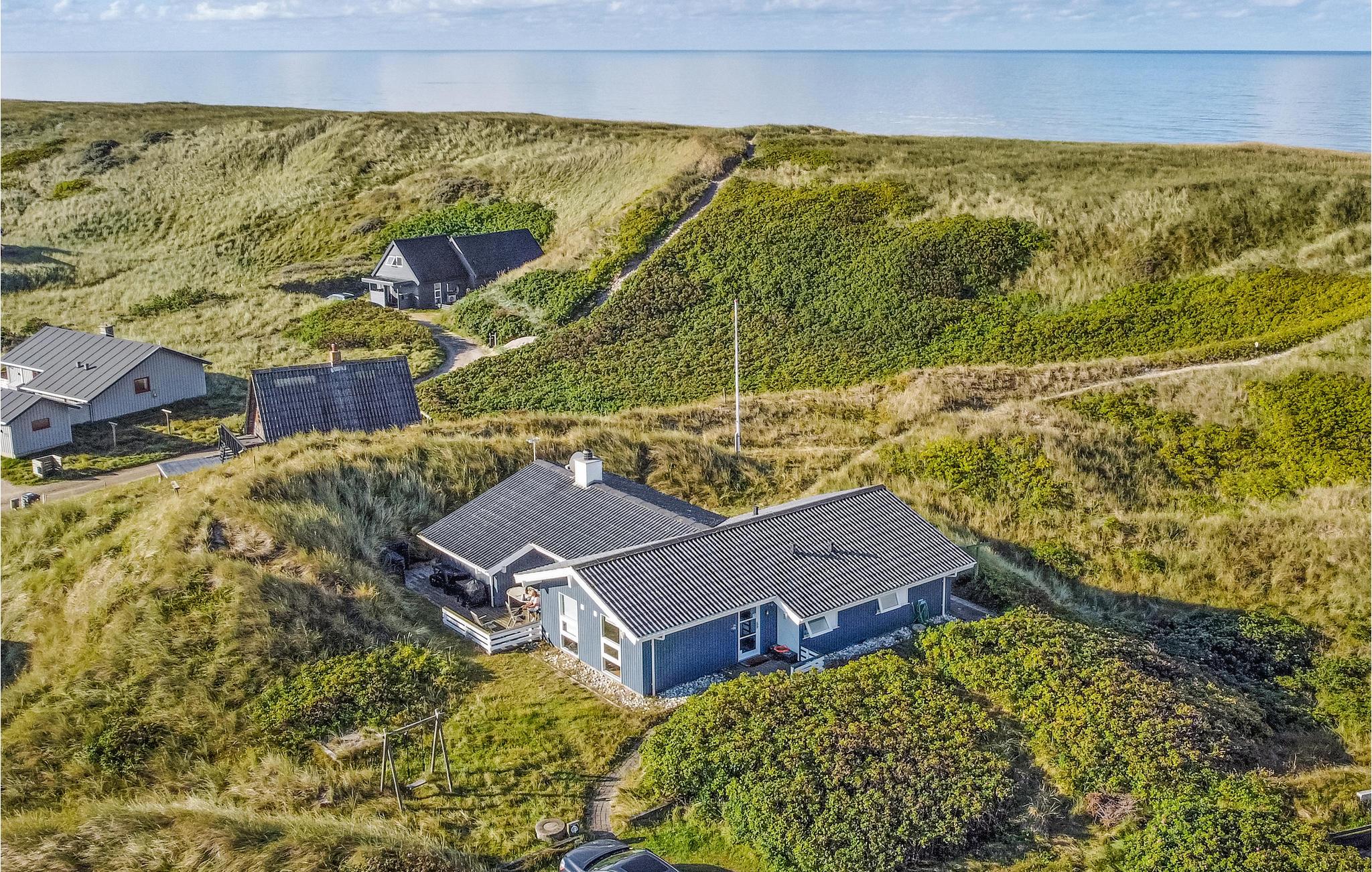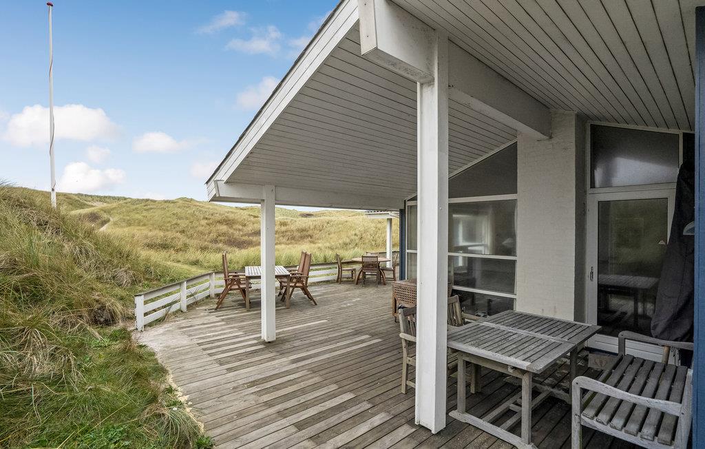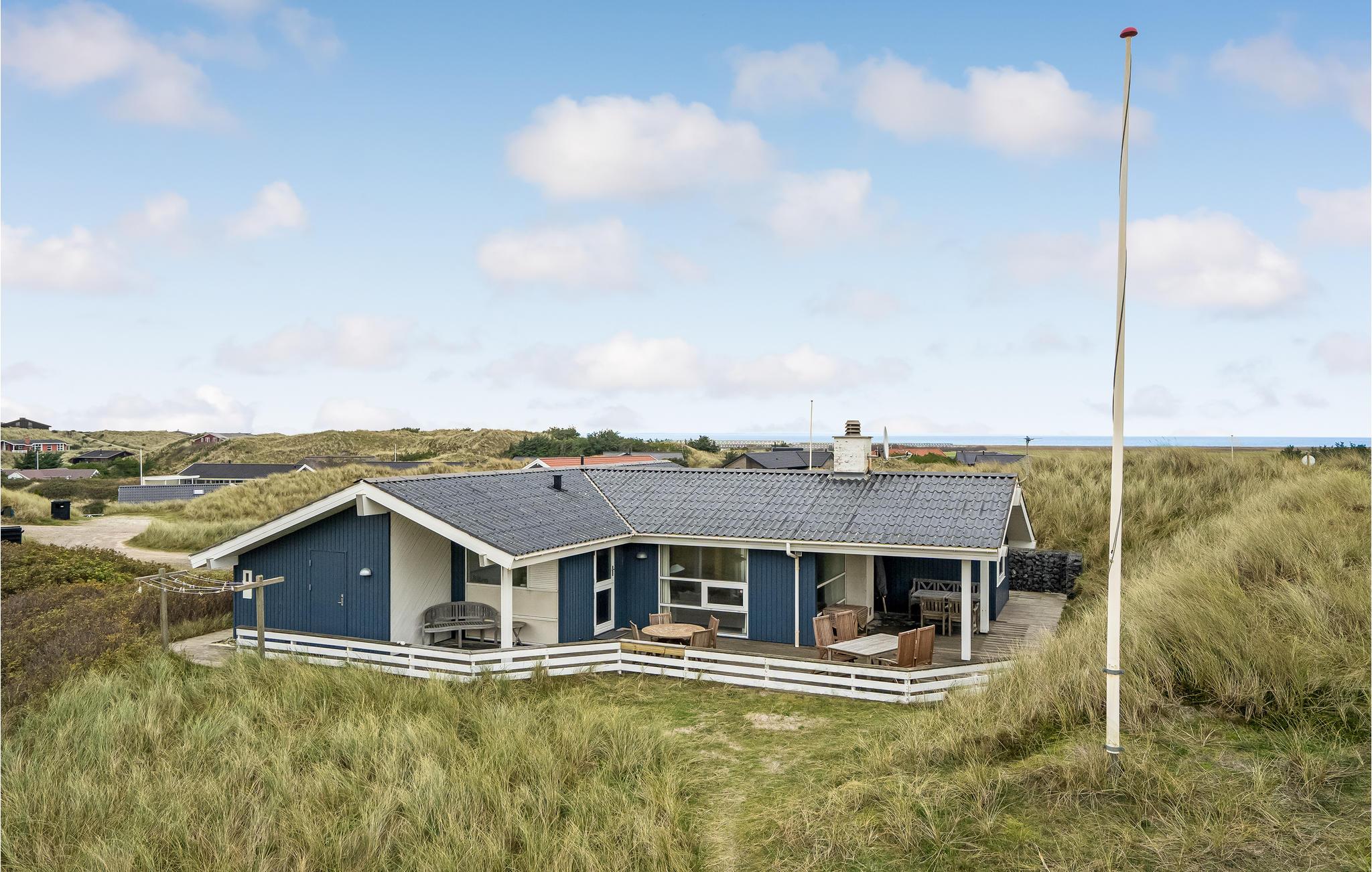Med Vesterhavet som nærmeste nabo har denne perle af et feriehus en super beliggenhed på en stor kuperet klitgrund, hvorfra der over klitterne er direkte adgang til stranden. Huset passer flot ind i klitlandskabet. Fra den østvendte terrasse er der udsigt til Ringkøbing fjord og fra stuen og den vestvendte terrasse har I en smuk udsigt til klitterne. Huset er stort og flot indrettet med en hyggelig stue i direkte sammenhæng med køkkenet. I såvel køkken som stue er der klinkegulve med gulvvarme. Der er tre gode soveværelser, alle med dobbeltsenge og et stort og flot badeværelse med spabad og direkte adgang til saunaen. De gode sommerdage kan I nyde på terrassen, hvor der både er liggestole og solvogne. Der er redskabsrum til f.eks. cykler. Som et ekstra plus er der gratis trådløs internetopkobling (egen pc medbringes).
