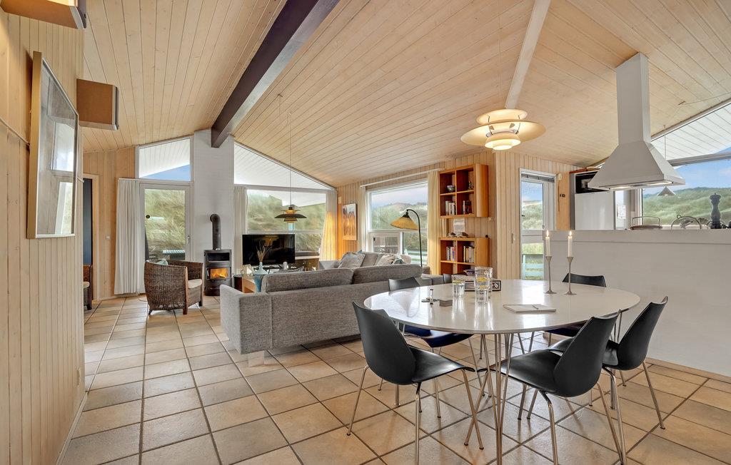 Charmerende feriehus ved Vesterhavet med panoramaudsigt til klitter og Ringkøbing Fjord.