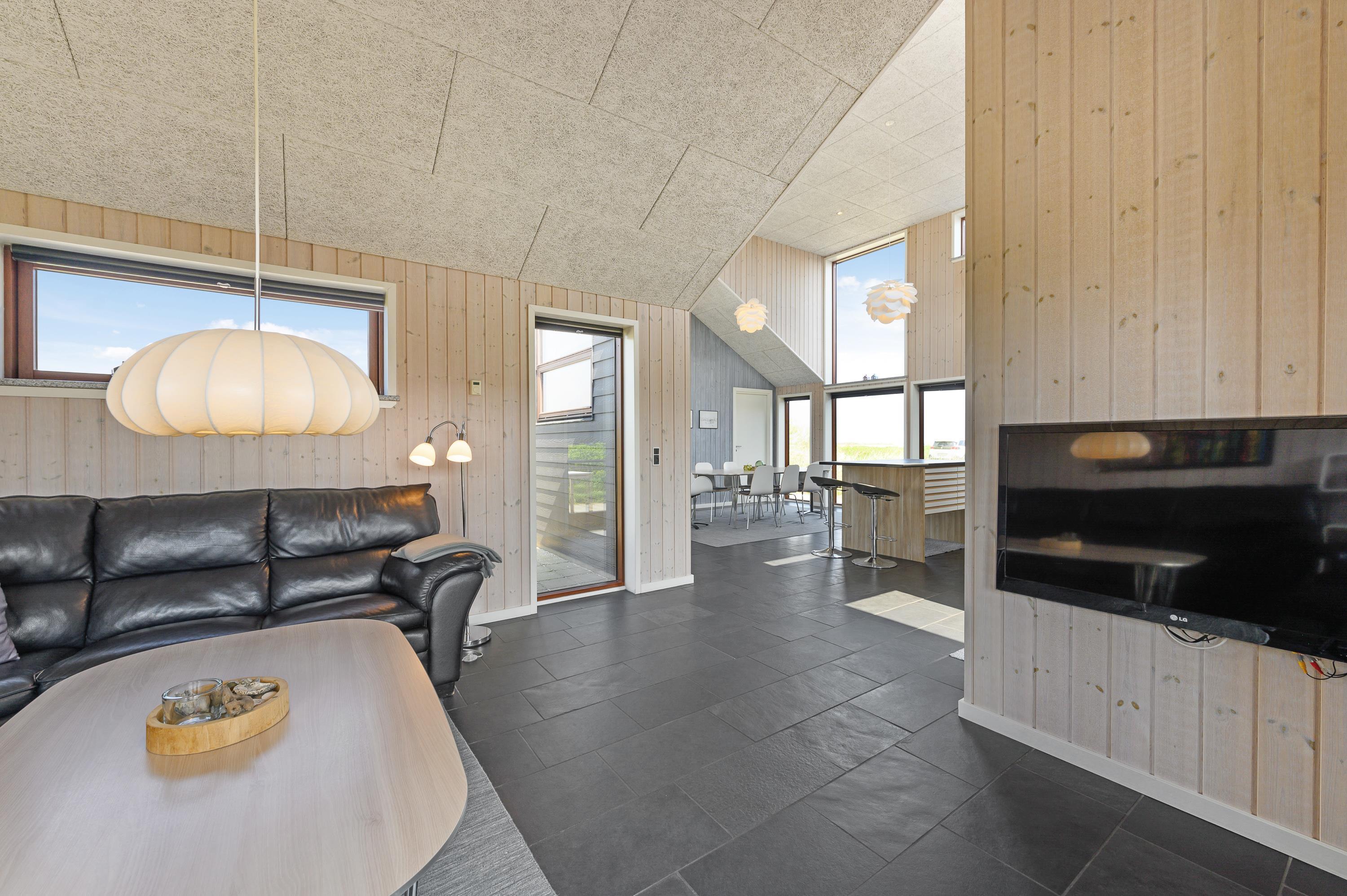Når det er tid til afslapning indendørs, kan du nyde underholdningen fra fladskærms-TV’et med parabolforbindelse. Sommerhusets opholdsrum er også udstyret med gulvvarme, hvilket bidrager til den hyggelige atmosfære.