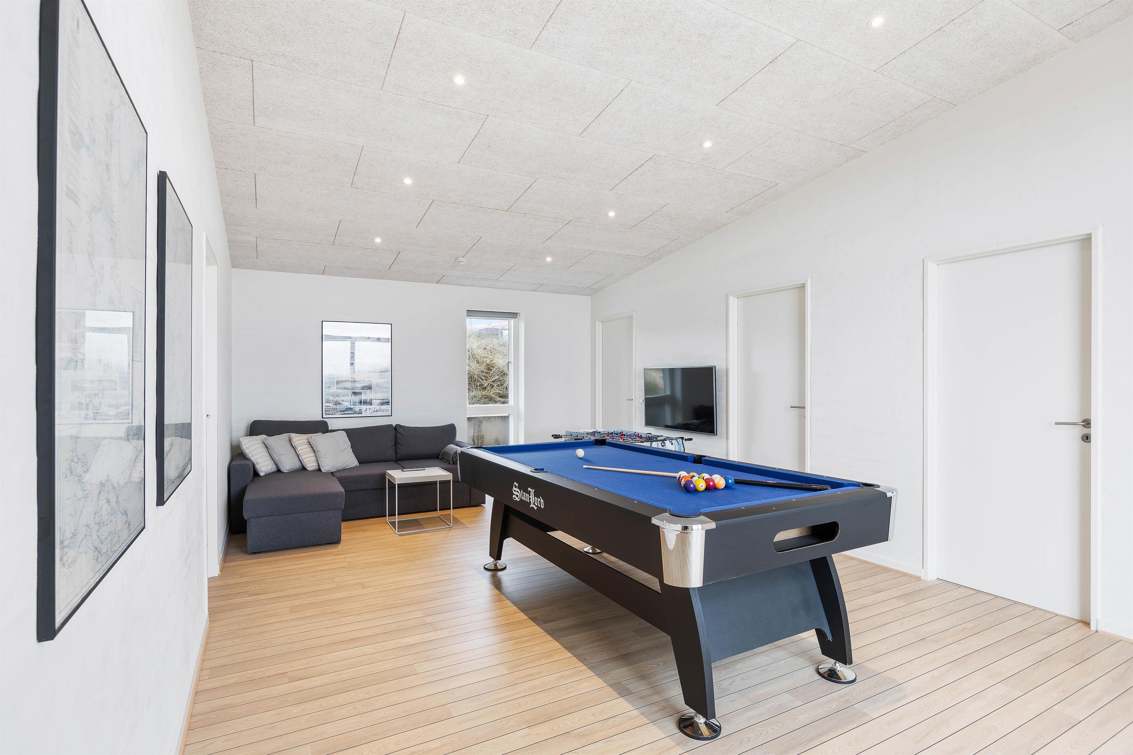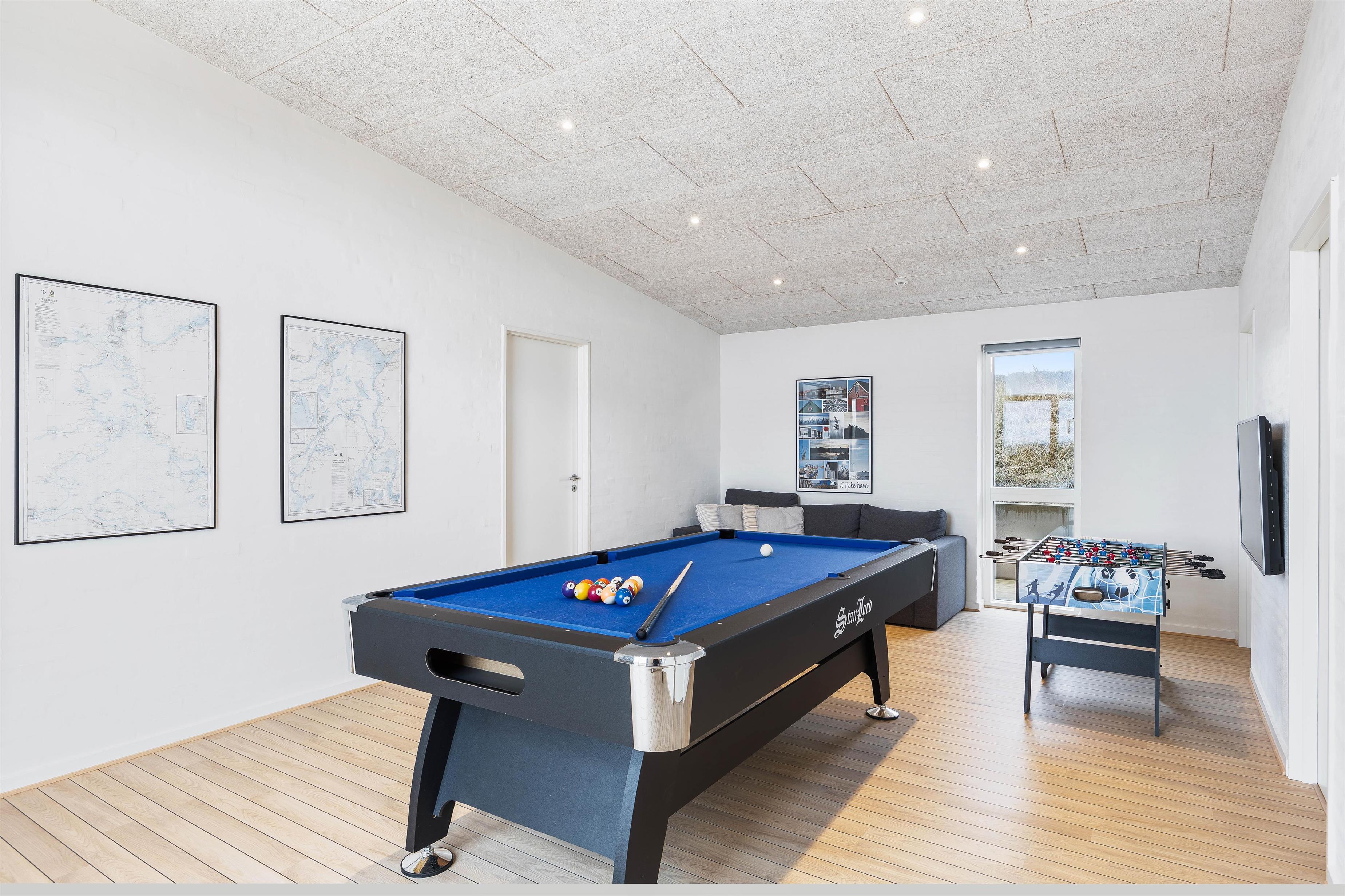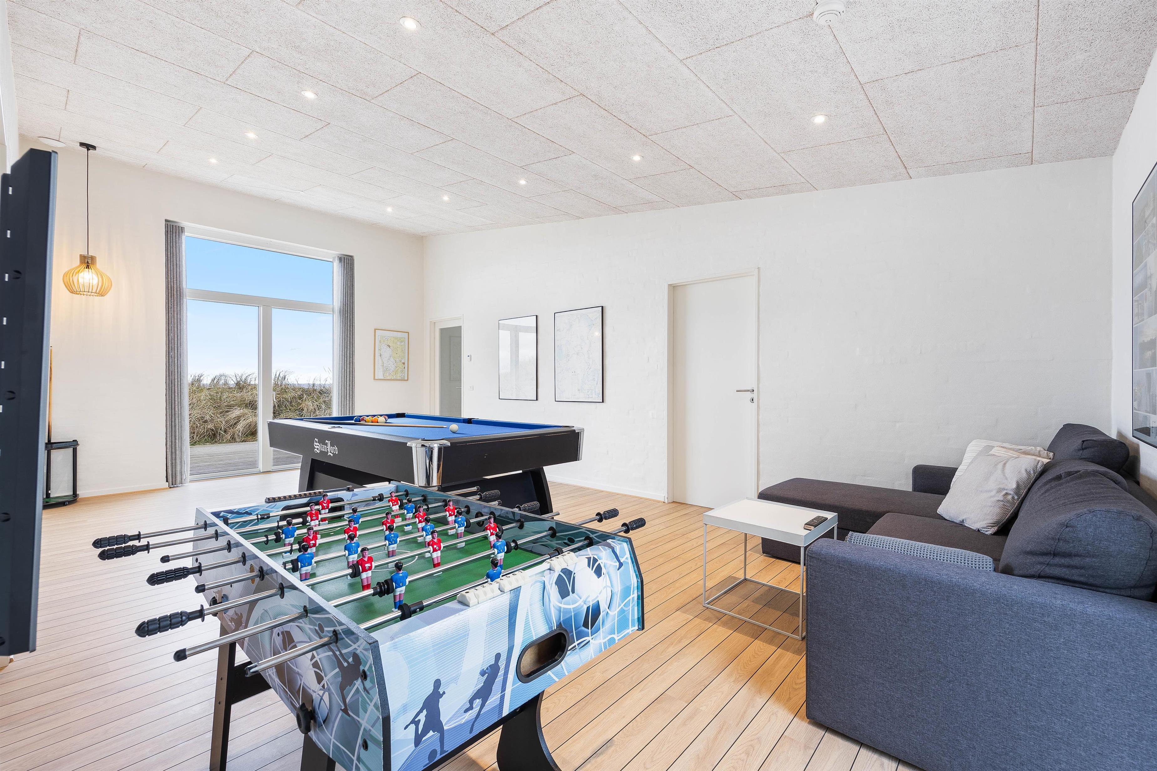 Aktivitetsrummet lægger op til familiehygge på højt plan – her er alle muligheder for billard- eller bordfodbold turneringer. Man kan også bare ”hænge ud” i sofaen, eller se en film. Her er noget for enhver smag – store som små. Også perfekt til især ”vinter- og regnvejrs-hygge”.