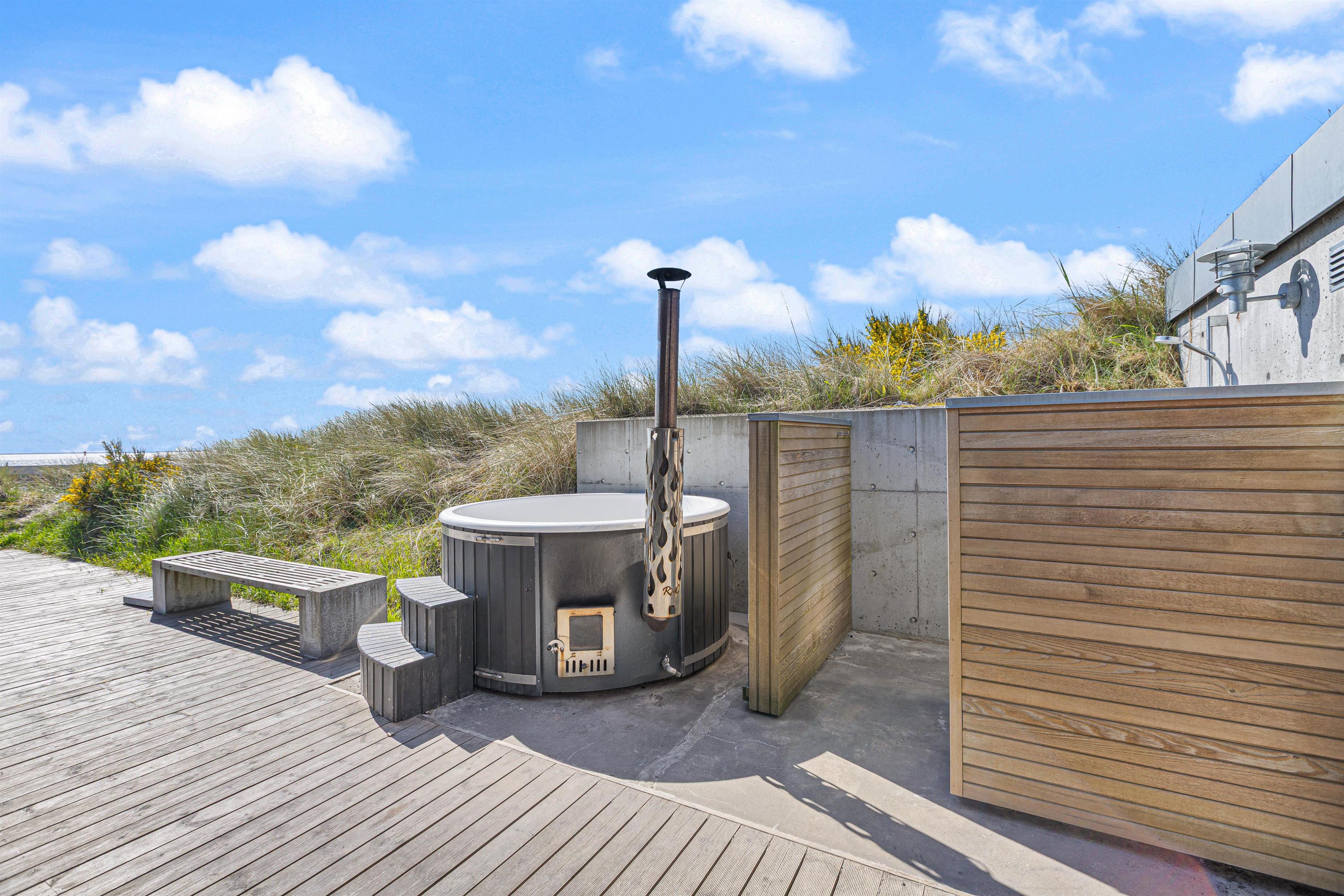 Den ultimative nydelse og ren afslapning må være den udendørs wellness-afdeling. At sidde i vildmarksbadet med et glas rosé, og nyde solnedgangen farve himlen orangerød over klitterne – med havets brusen og salte duft i baggrunden, må være balsam for krop og sjæl.