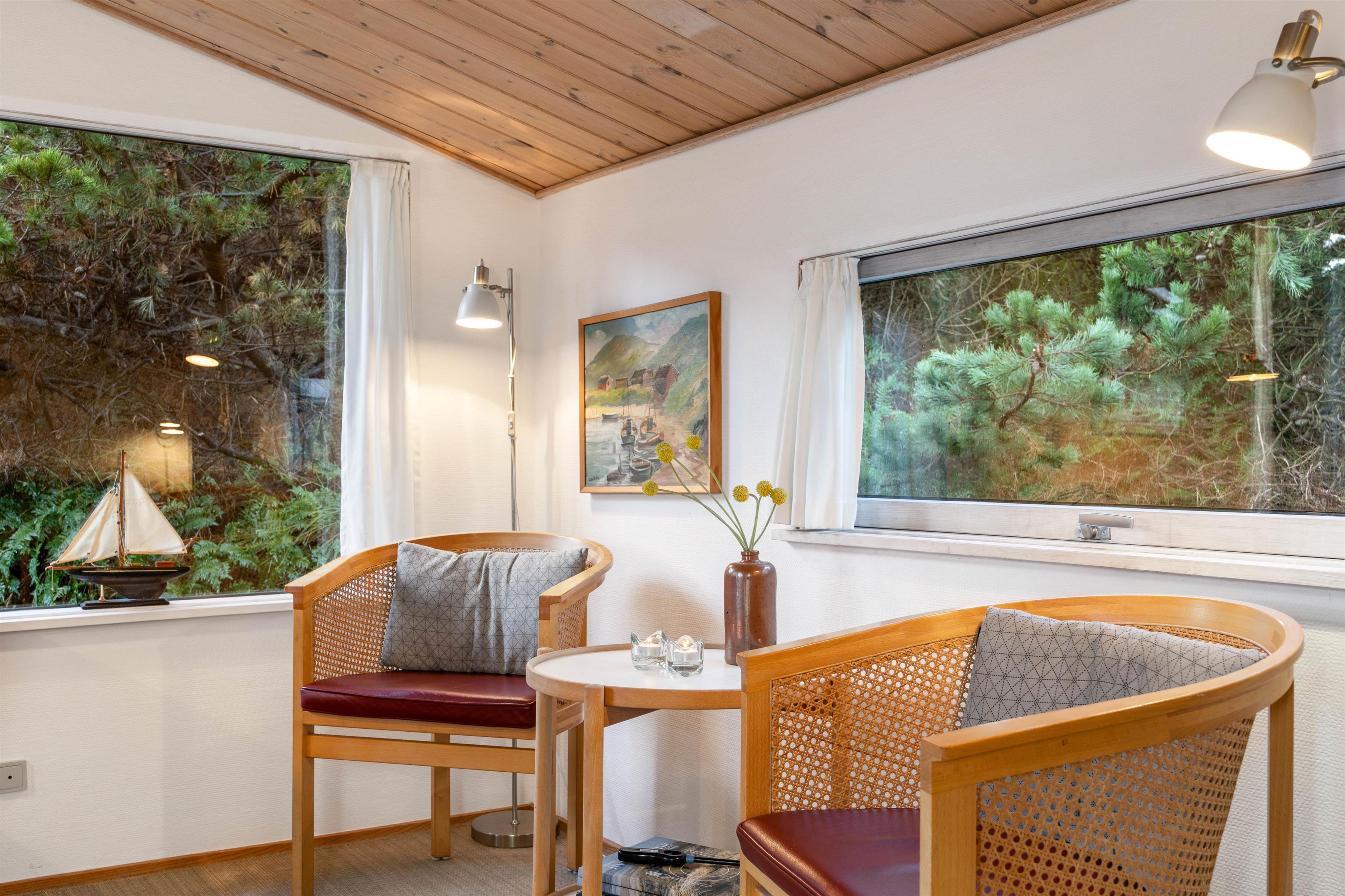 Udenfor terrasse er et lille grønt areal, der er perfekt til udendørsspil såsom kongespil. Saml hele familien og find feriens vindere. Græsplænen er desuden også helt perfekt til solbadning, boldspil eller leg med hunden – den helt rigtige måde at komme væk fra hverdagen.