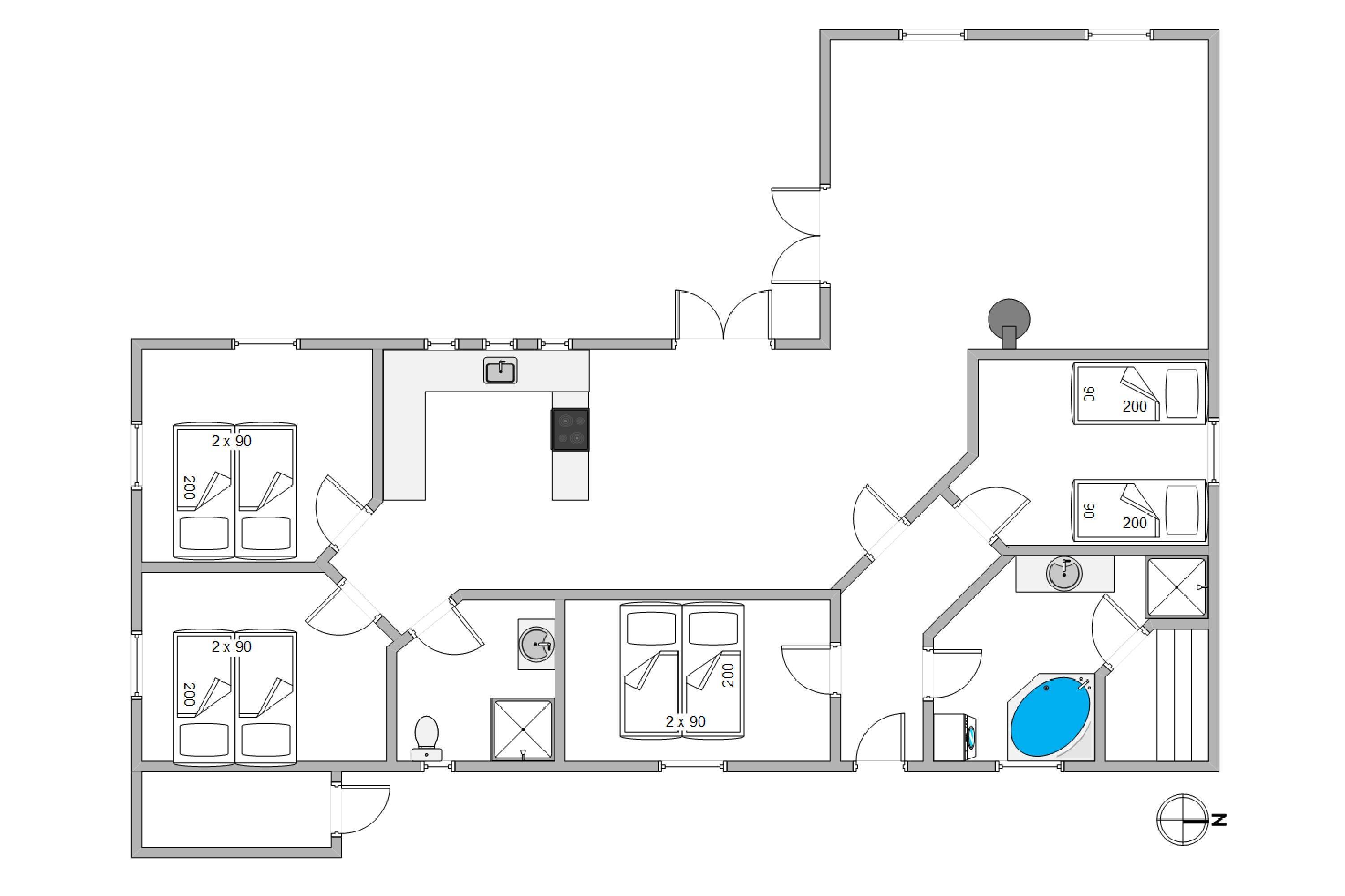 Husets 4 hyggelige soveværelser stiller i alt 8 sovepladser til rådighed. I de 3 af soveværelserne er der dobbeltsenge, og i det sidste er der 2 enkeltsenge.