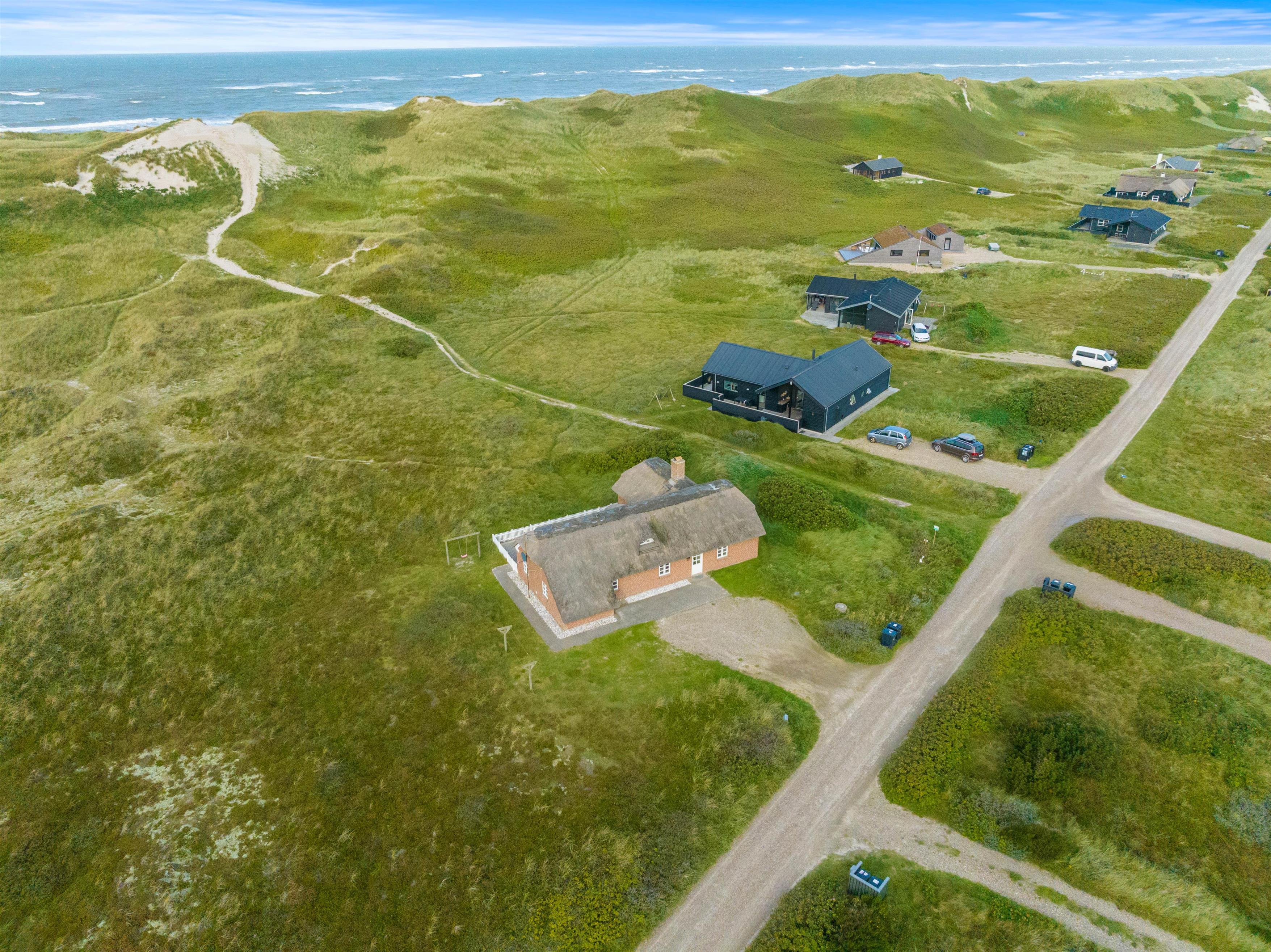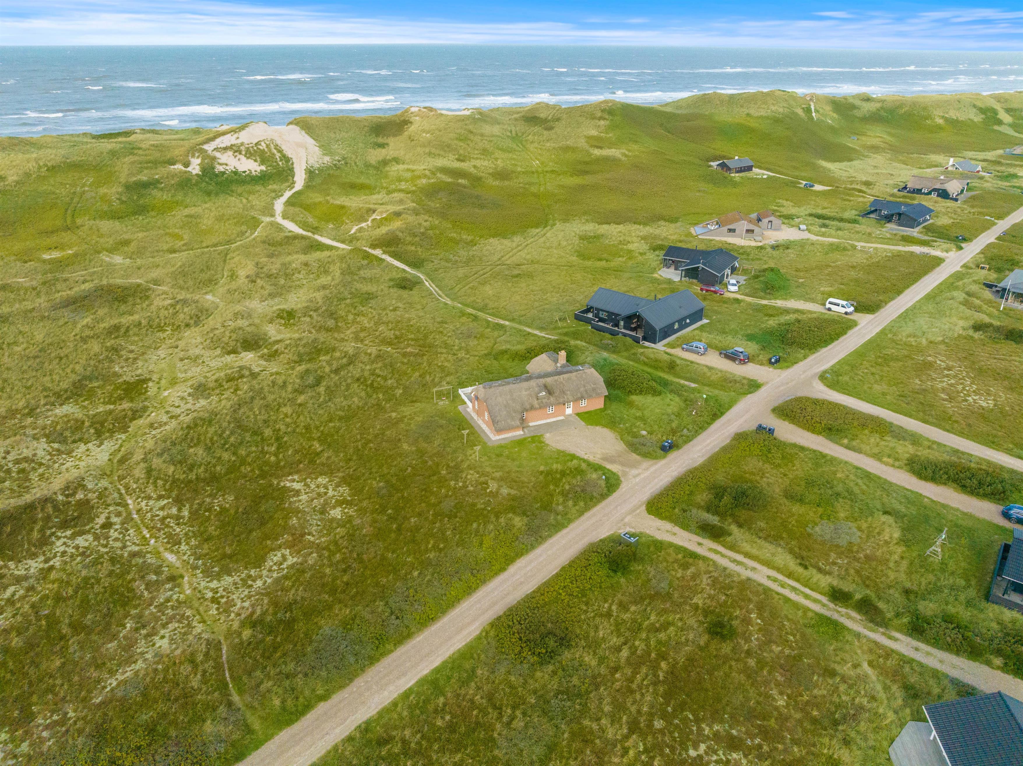 Syd for huset er der en lille sti, som fører over klitterne og ned til stranden, som kun ligger 150 m fra huset. Dermed har man en god direkte adgang til Vesterhavet.