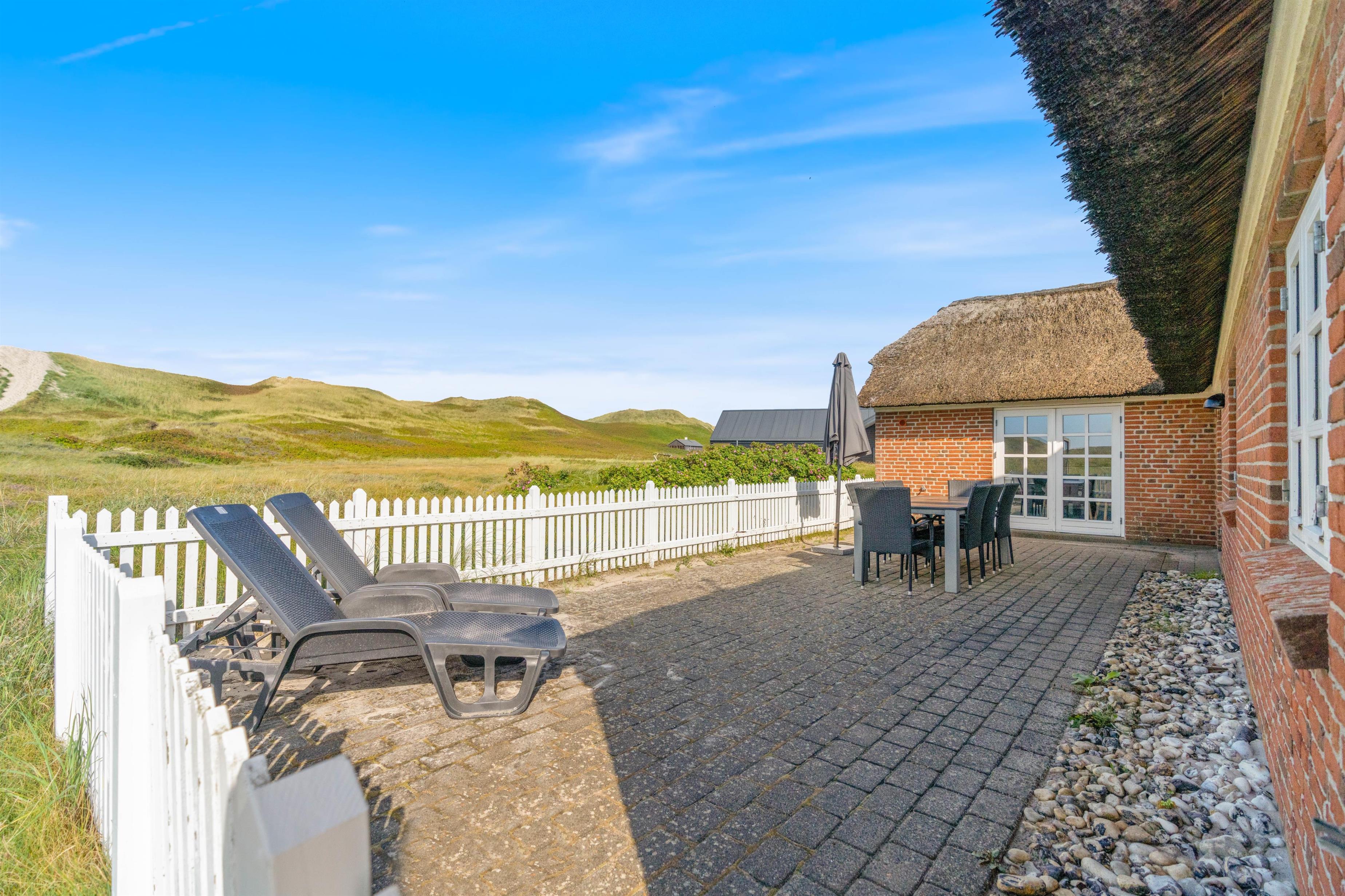 På terrassen kan familien med sikkerhed tilbringe hyggelige grillaftener og mange gode timer på solrige dage. Og herfra har man en utrolig smuk udsigt over det åbne landskab og til de nærtliggende klitter, som simpelthen skal opleves.