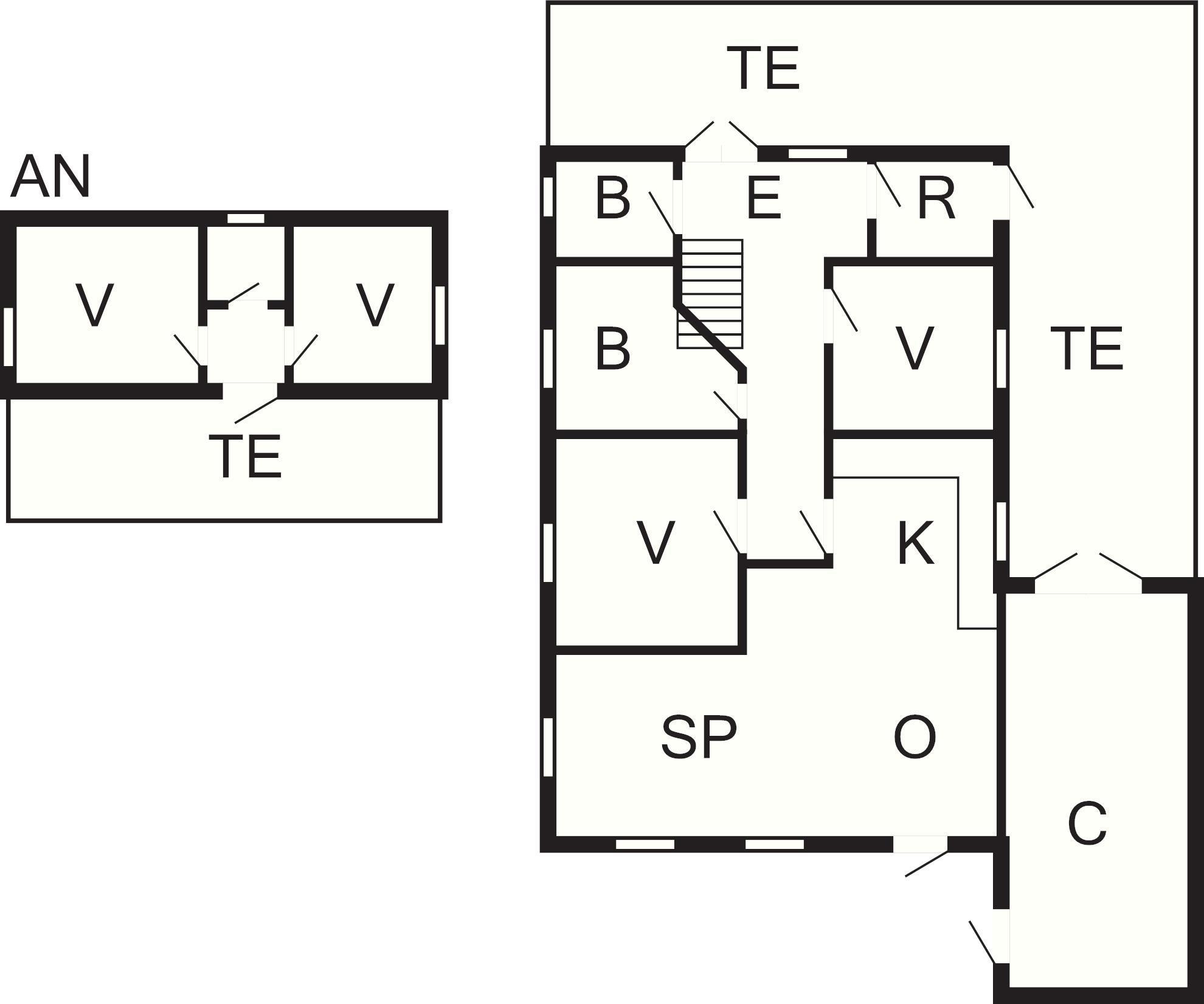 Indenfor er huset designet til familier eller vennegrupper. To soveværelser i hovedhuset tilbyder hver tre komfortable senge, mens et separat anneks giver fire ekstra senge på tværs af to soveværelser og eget toilet, hvilket sikrer masser af plads til alle. Boligen rummer desuden to veludstyrede badeværelser og et praktisk bryggers, der gør daglige rutiner ubesværede.