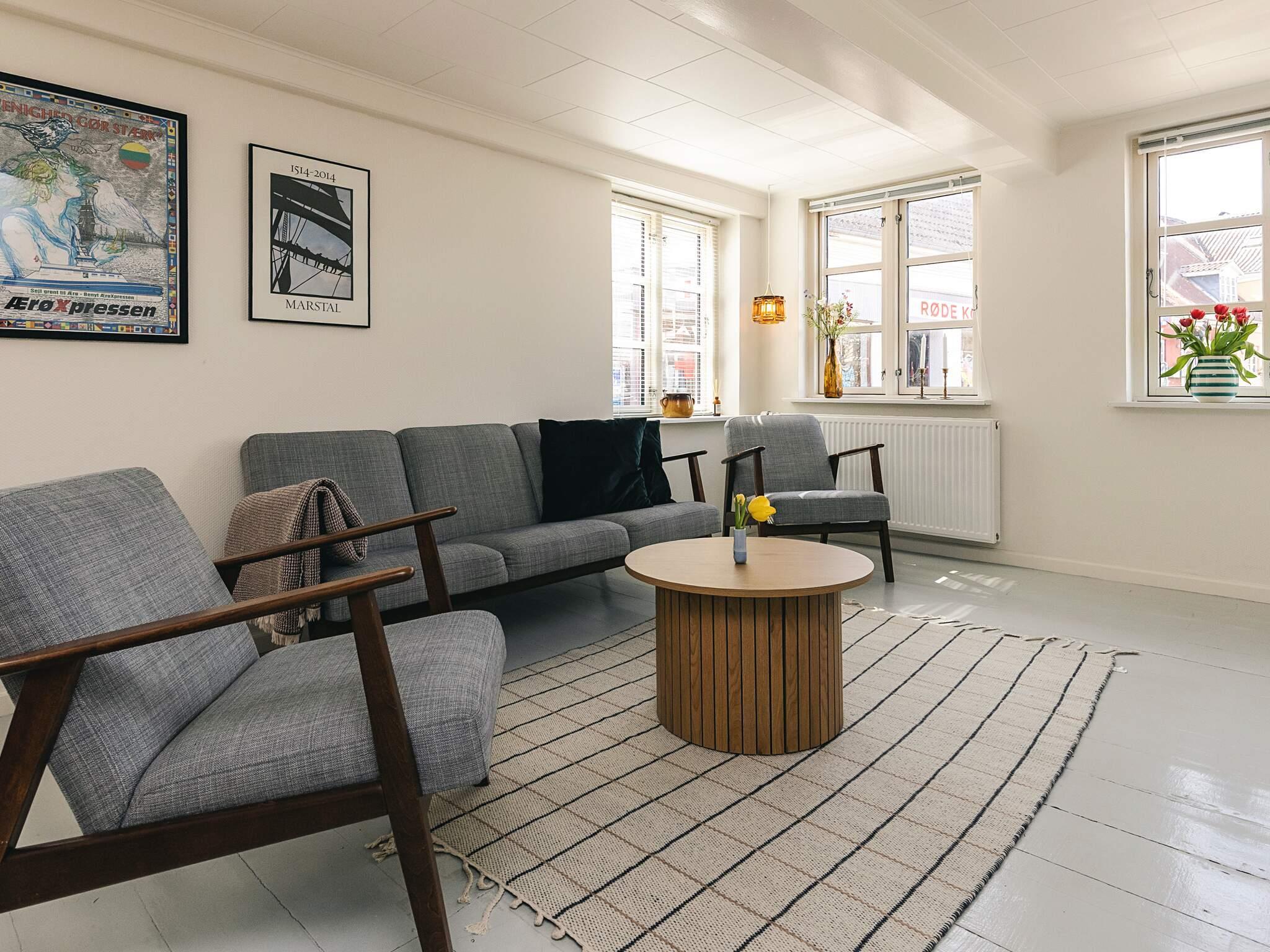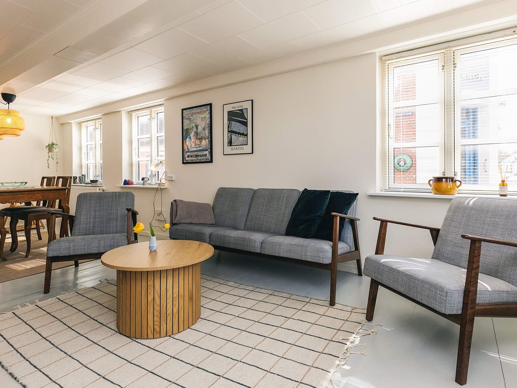 Skipperhuset ligger ved Marstals gågade med caféer, ishus, specialbutikker og det hyggelige byliv midt i den historiske skipperby lige uden for døren. Der er kort afstand til dagligvareindkøb, flere offentlige parkeringspladser inden for 150 meter og få minutters gang fra det lokale bibliotek. En perfekt beliggenhed for især børnefamilier, par og det modne publikum. Udlejes ikke til ungdomsgrupper.