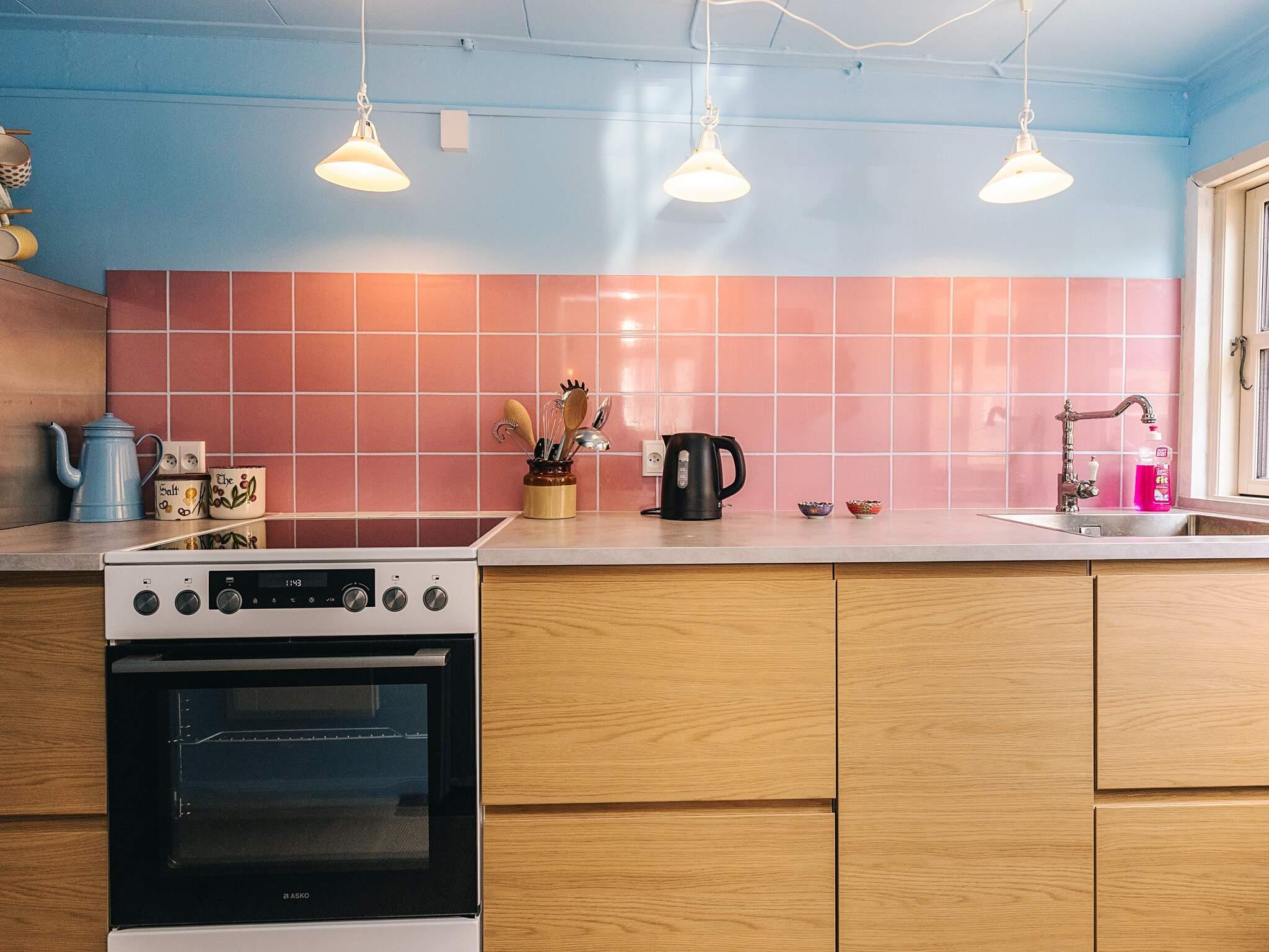 Køkken: El-komfur, køle-frys, opvaskemask.