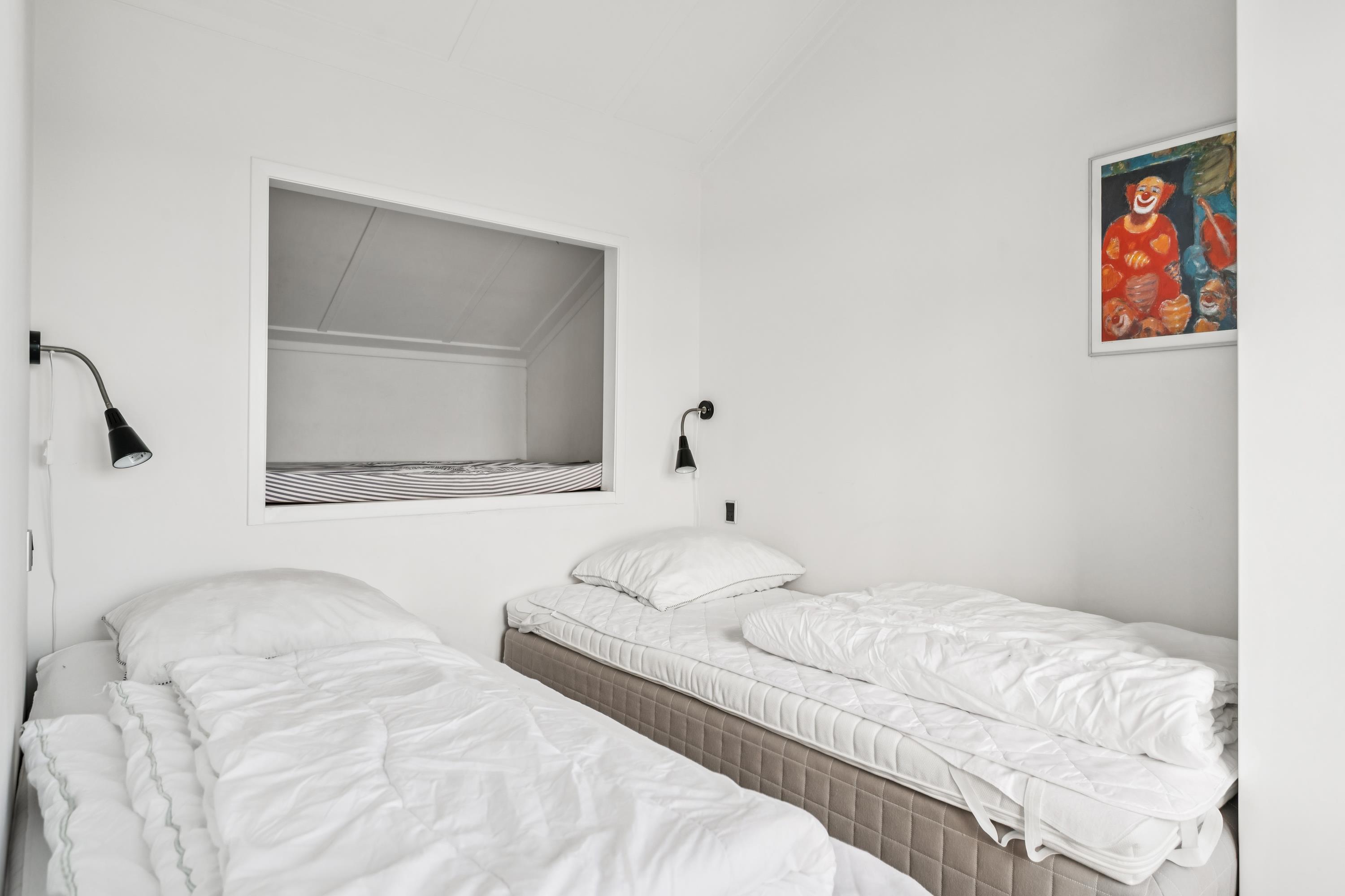 I Øer Maritime Ferieby finder man dette flotte og velindrettede hus. I stueplan finder man det skønne køkken med b.la. opvaskemaskine og flot badeværelse. Nedgang til forsænket spisestue, og hvorfra der er udgang til en skøn terrasse med havemøbler. I underetagen finder man også det ene af husets soveværelser med dobbeltseng. Opgang til første sal, hvor man finder en dejlig stue, hyggelig møbleret og hvorfra der er udgang til endnu en lille terrasse. Her finder man også huset andet soveværelse med dobbeltseng samt indbygget alkove. Ved indgangen til huset er der endnu en terrasse med havemøbler, så man har altid mulighed for at nyde både solopgang og solnedgang. Et virkelig flot og gennemført hus.
