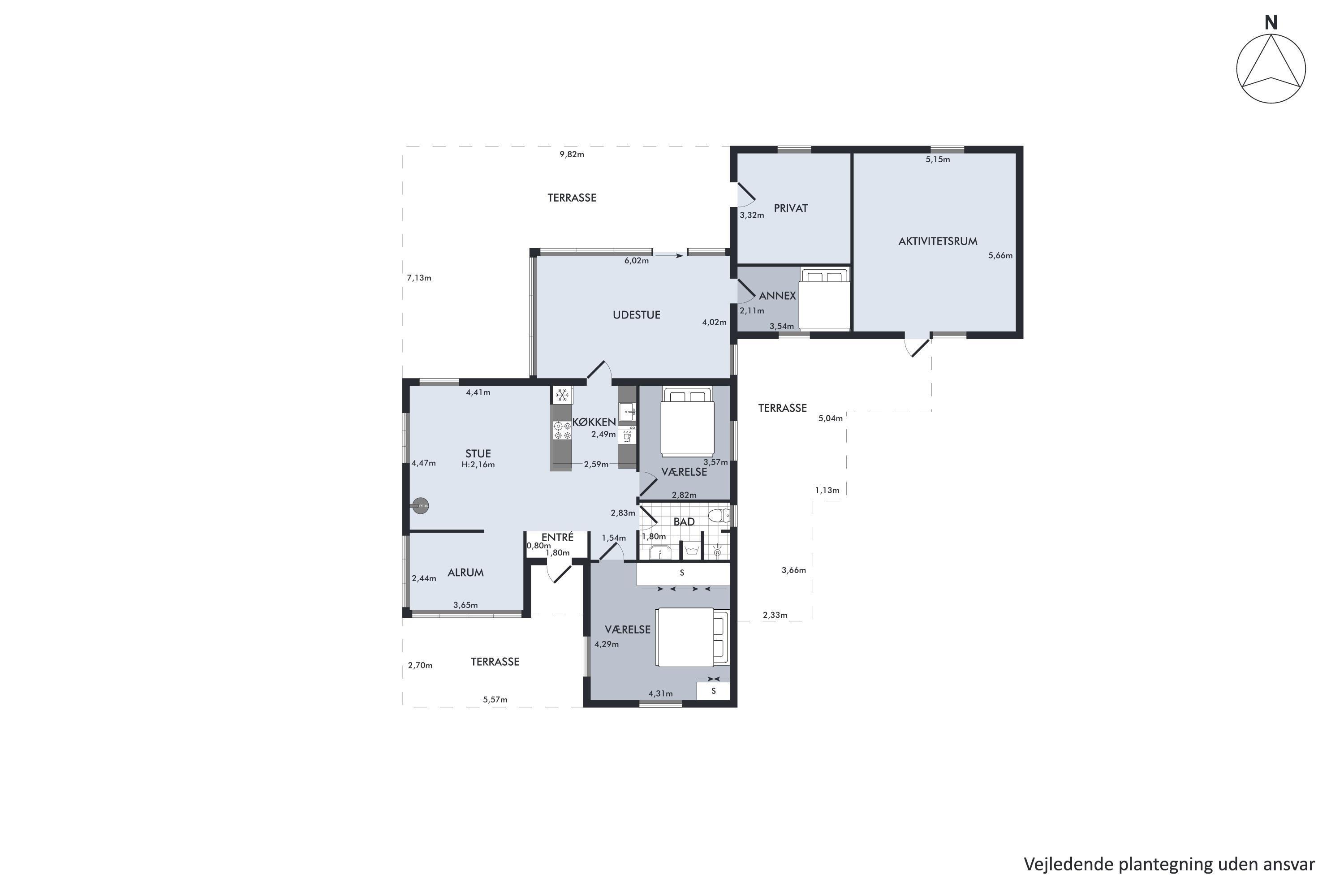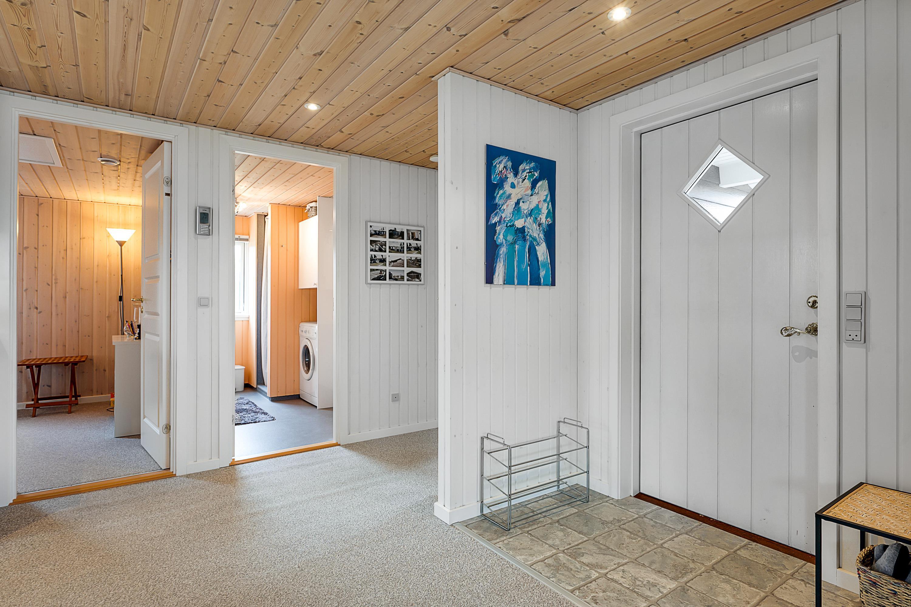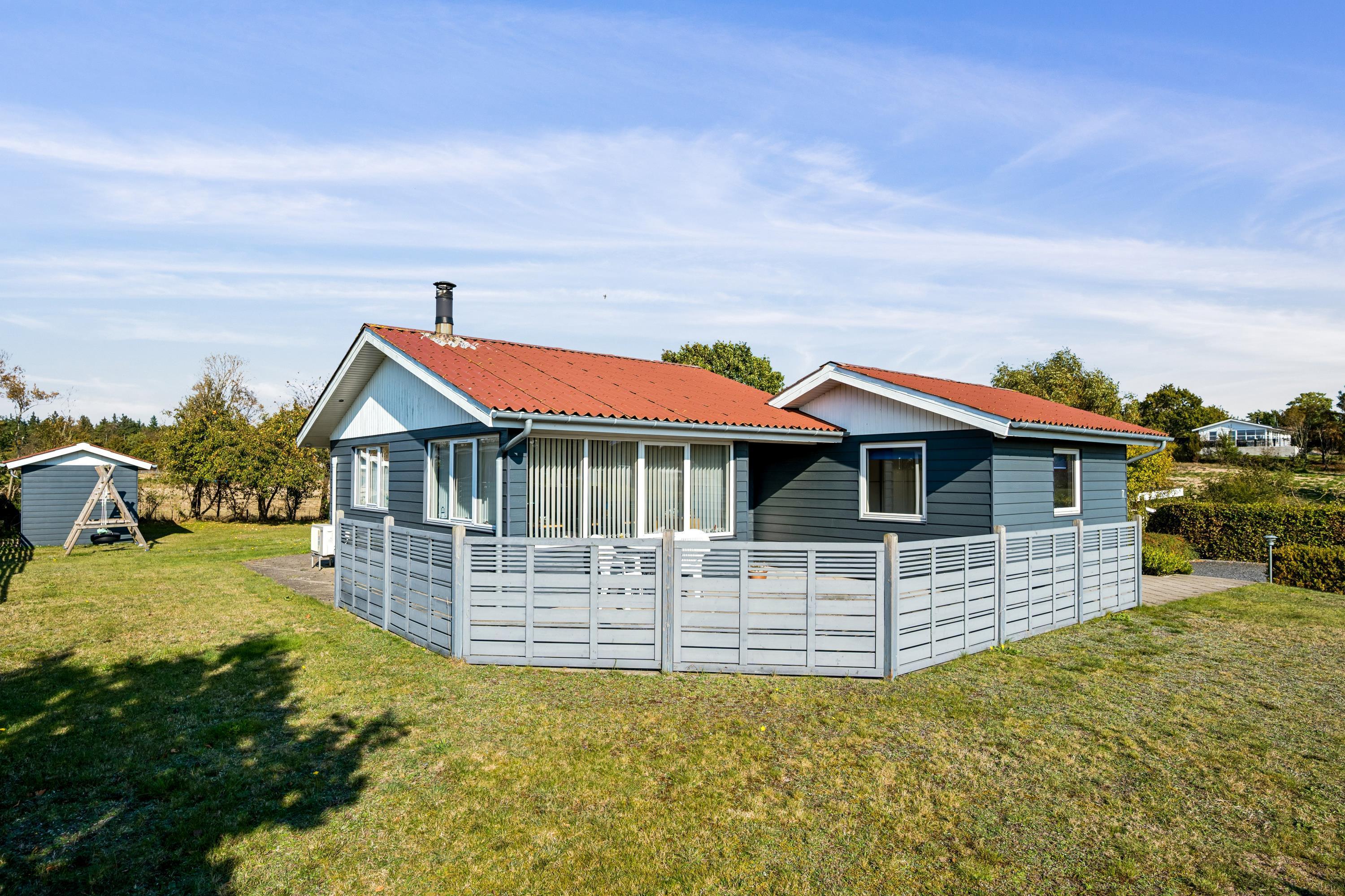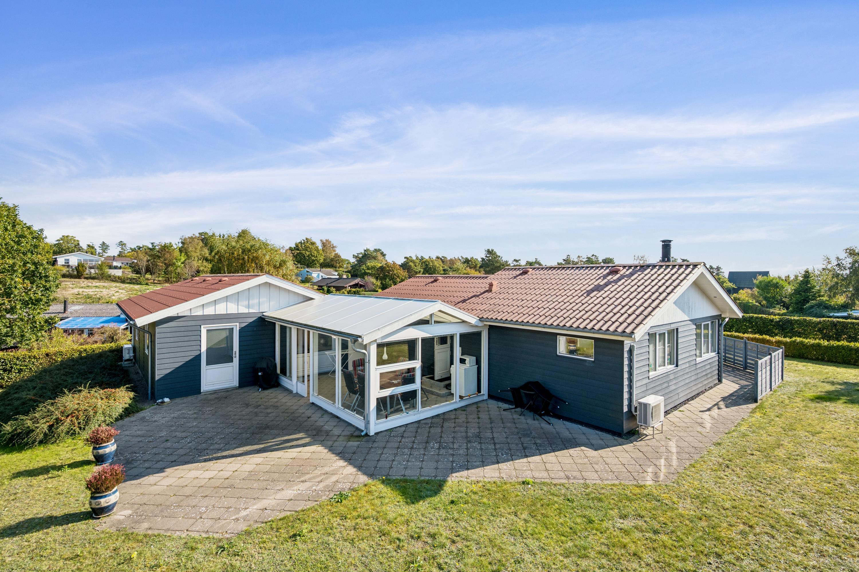 Dette rummelige, velholdte og løbende moderniserede feriehus er højt beliggende i den nordlige del af det store sommerhusområde mellem Ebeltoft og Øer. Stor, nordvestvendt fliseterrasse med skøn udestue, hvor man kan nyde middagsmaden og udsigten uanset vejret, samt dejlig, afskærmet, sydvendt fliseterrasse. Her er havemøbler og grill.