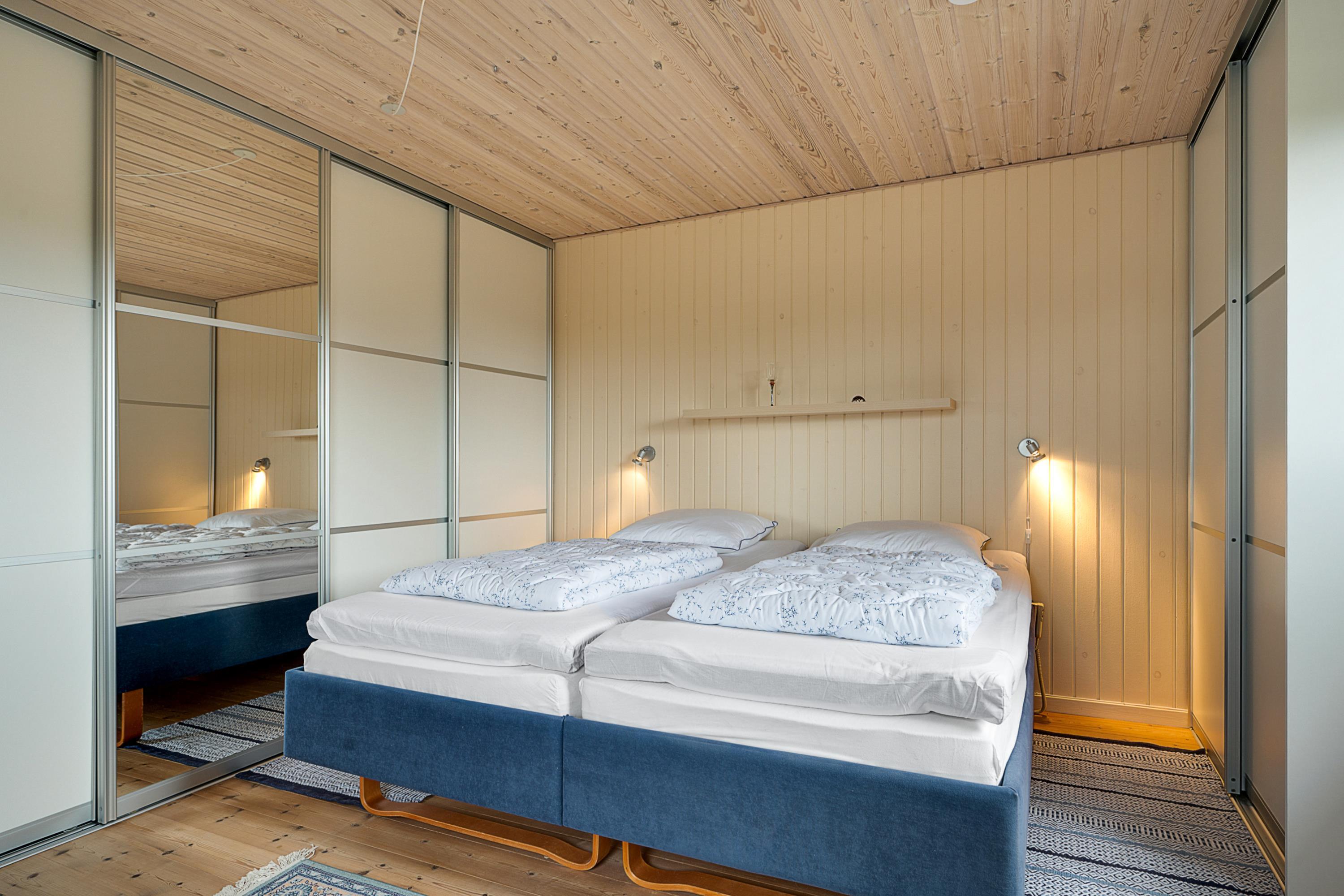 Man kommer direkte ind i den store stue/alrum med brændeovn, mageligt sofahjørne, TV med danske (inkl. TV2) og tyske kanaler samt særskilt spiseafdeling til 6 personer med udsigt til haven. I åben forbindelse med stuen er der virkelig pænt, veludstyret køkken med god arbejdsplads og komfur med keramiske kogeplader og ovn, køle-/fryseskab, opvaskemaskine og mikrobølgeovn. Fra køkkenet er der desuden udgang til havestuen. Huset rummer 6 sovepladser fordelt på 2 gode soveværelser med dobbeltseng og 1 lidt mindre værelse/anneks med indgang fra havestuen. Nyere, regulært badeværelse med bruseniche, skabsarrangement og vaskemaskine. Der er internetadgang.