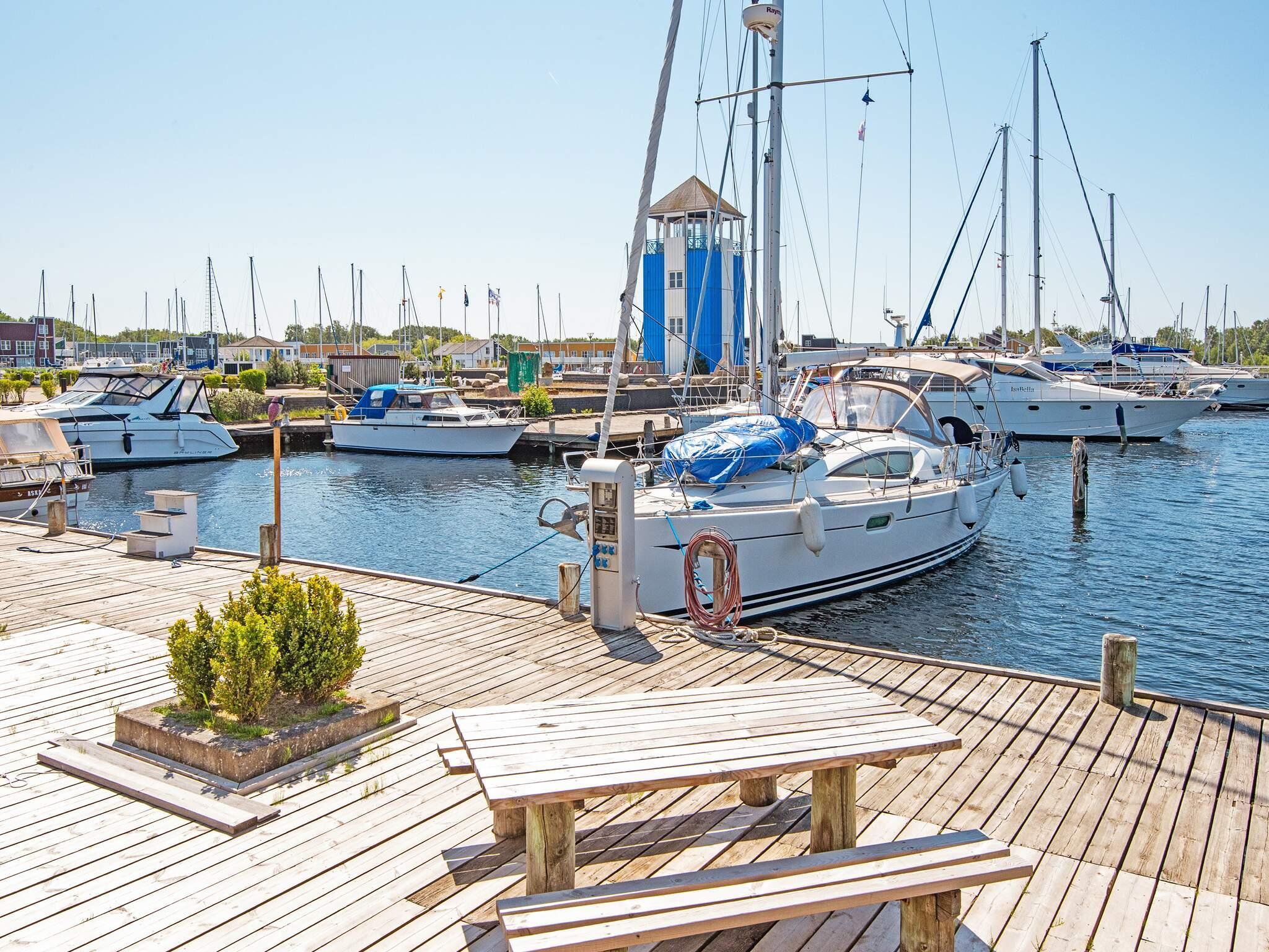 Rækkehus i Øer Maritime Ferieby med en af de absolut bedste placeringer – uden forbipasserende trafik og med feriebyens bedste terrasse, hvorfra der er panoramaudsigt over bådenes færden. Huset byder på flot og velindrettet interiør med sans for detaljer i både møbler og materialevalg. Det er indrettet i ét plan med to rummelige soveværelser samt en terrasse på hver side af huset, så I altid kan finde en solrig plads.