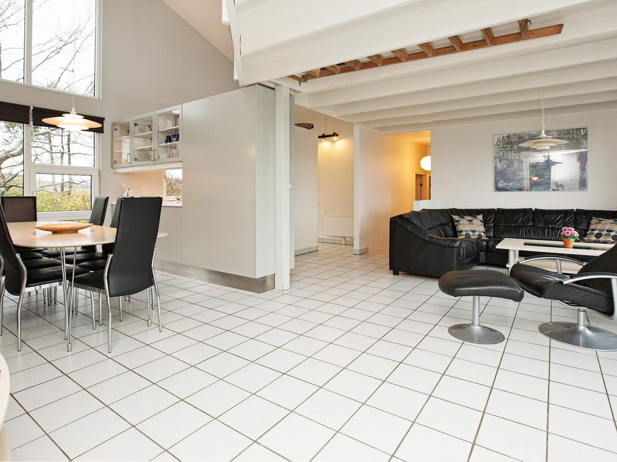 Arkitekttegnet sommerhus med swimmingpool, spabad og sauna beliggende på en 1300 m² stor naturgrund ca. 300 m fra vandet. Huset er moderniseret i 2012. Fra opholdsstuen er der glasdør ind til poolafdelingen med swimmingpool samt hjørnespabad. Fra poolafdelingen er der også adgang til husets sauna. Huset indeholder en stor, åben spise- og dagligstue. På de kølige aftener er brændeovnen i stuen hyggelig og god at varme sig ved. I forbindelse med spise- og dagligstuen er der åbent køkken, der blandt andet er udstyret med opvaskemaskine og mikroovn. Her er alle muligheder for at hygge jer samtidig med at der laves mad, spilles spil og snakken går om dagens oplevelser. Fra opholdsstuen er der et par trin ned til den separate soveafdeling med 4 soveværelser – alle værelser er med dobbeltsenge. Ikke mindre end hele 25 m² hems med dobbeltseng og lænestole – modsat de fleste hemse er denne hems så stor, at I flere steder kan stå fuldt oprejst. Hemsen vil helst sikkert være et stort hit som opholdssted for de fleste børn.