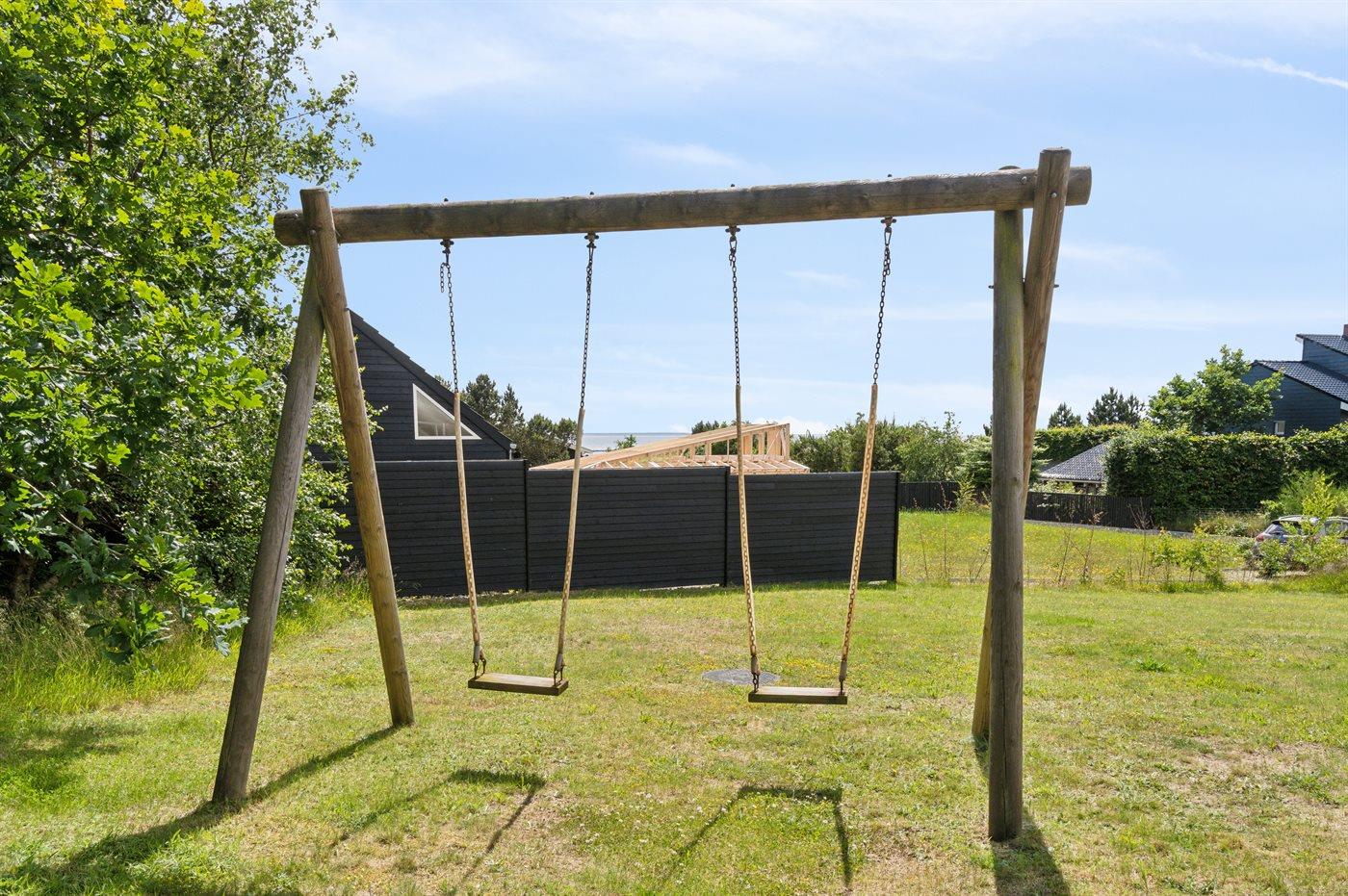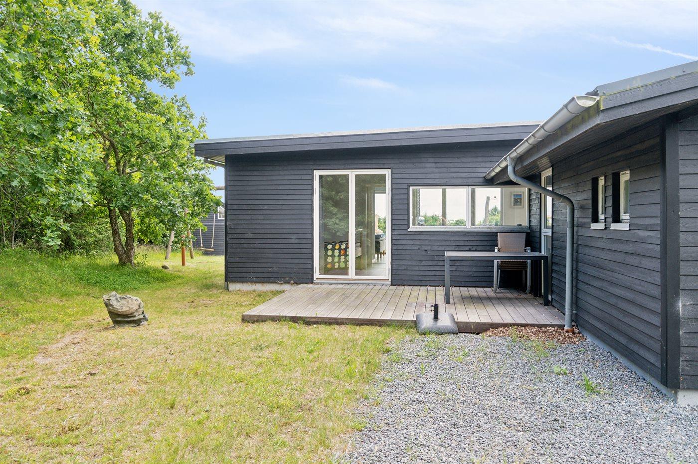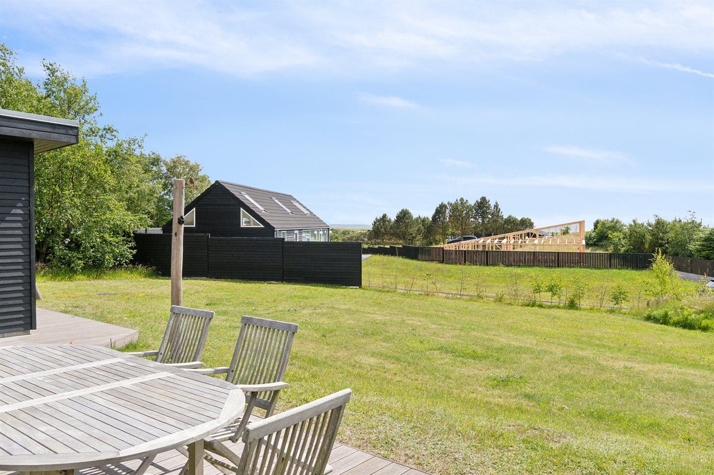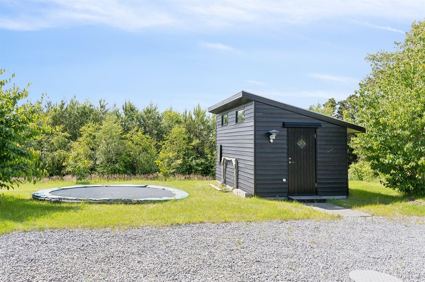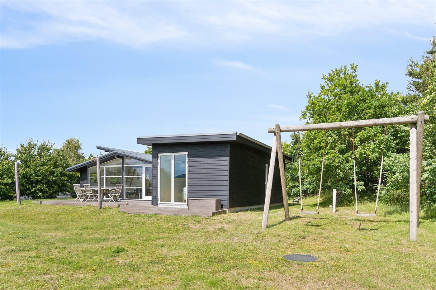 Ferieboligen er beliggende på en 1441 m² stor naturgrund. Grunden er indhegnet. Der er 350 m til havet. Nærmeste forretning er beliggende i en afstand af 6000 m. Til ferieboligen hører åbent terrasseareal. Der er redskabsrum. Gynge. Trampolin. Parkering ved ferieboligen.
