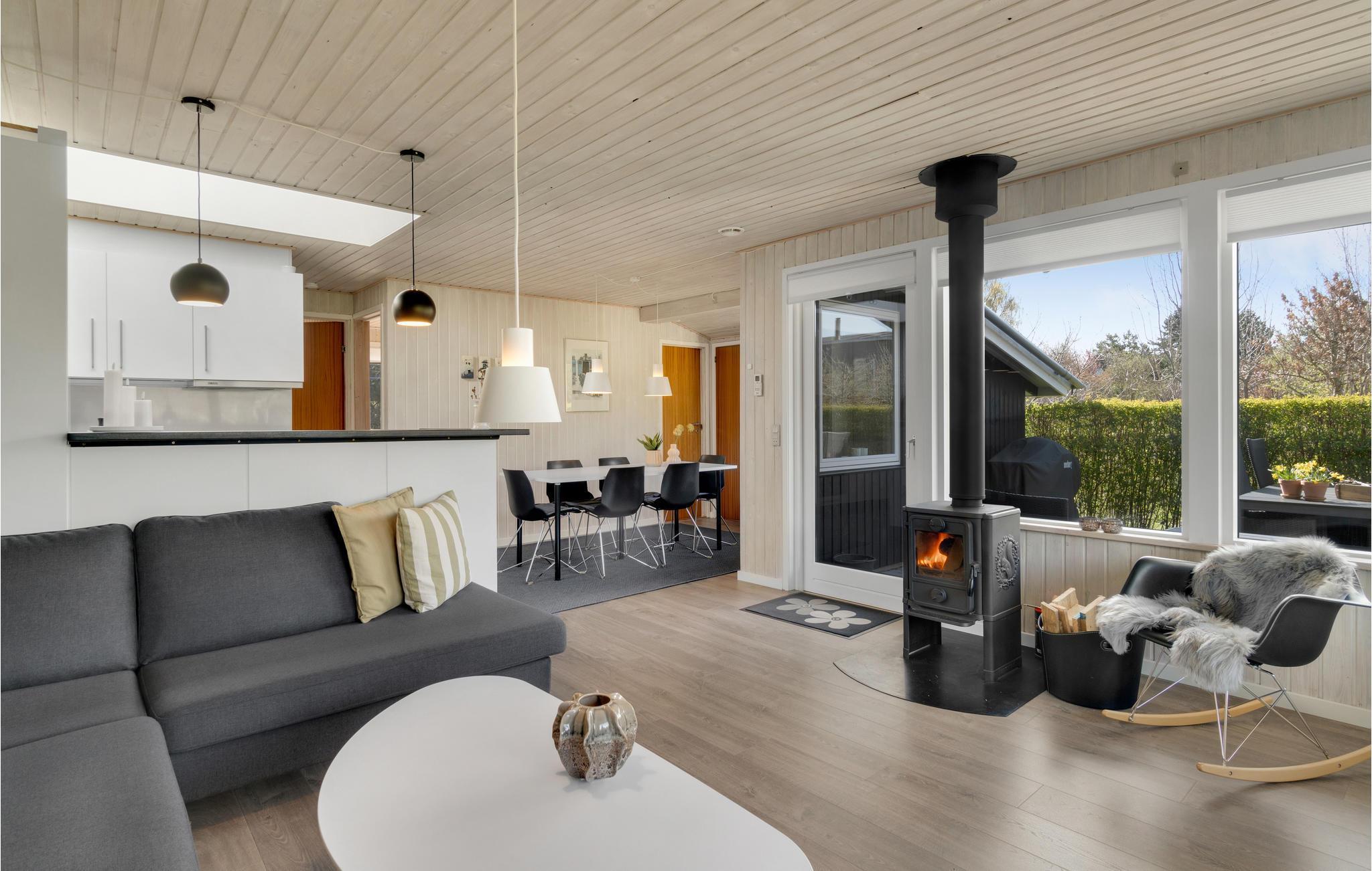 Slap af i dette skønne sommerhus. Hyg jer med jeres nærmeste og nyd tiden sammen i den åbne stue, mens nogle laver lækre retter i køkkenet og andre spiller kort ved spisebordet eller slapper af i sofaen. Hvis I trænger til ekstra varme og hygge, kan I tænde op i brændeovnen og nyde varmen og de knitrende lyde fra ilden. Saunaen bidrager også til afslapning.
