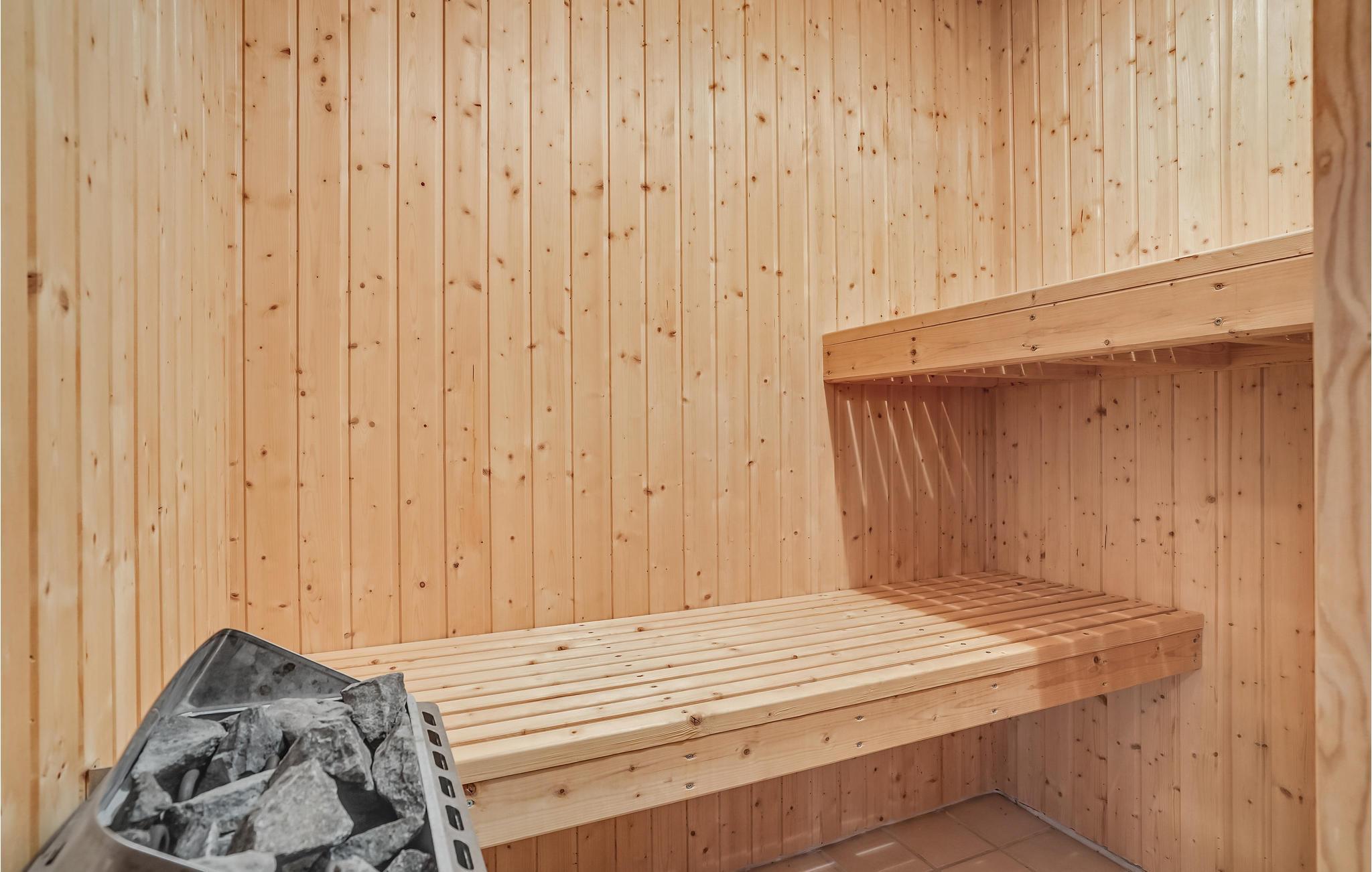 Velkommen til dette dejlige sommerhus, som har plads nok til to familier, der ønsker at holde en skøn ferie sammen. Husets hjerte er den store opholdsstue med lækre møbler og store vinduespartier, der lukker meget lys ind og giver et godt udsyn til haven. Glæd jer til at tilberede lækre feriemåltider i husets store, veludstyrede køkken, som efterfølgende kan nydes ved spisepladsen eller ude på terrassen. Her kan I sidde og sole jer eller læse en god bog i løbet af dagen, mens børnene løber rundt og leger på græsset eller gynger og rutcher. Om aftenen kan I holde en hyggelig grillaften, eller hvad med at sætte sig godt til rette i udespaet med en drink i hånden? Foretrækker I indespa, har I også den mulighed, ligesom I kan varme jer godt op i saunaen. Den store fladskærm med Chromecast i stuen indbyder til hyggelige filmaftener.