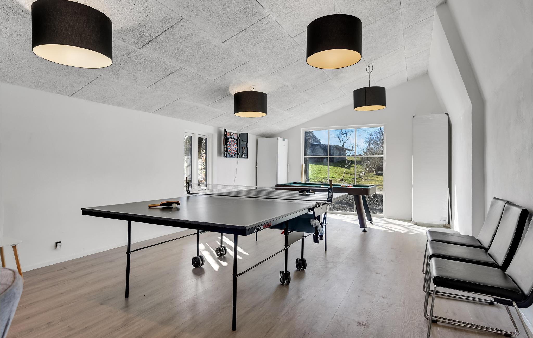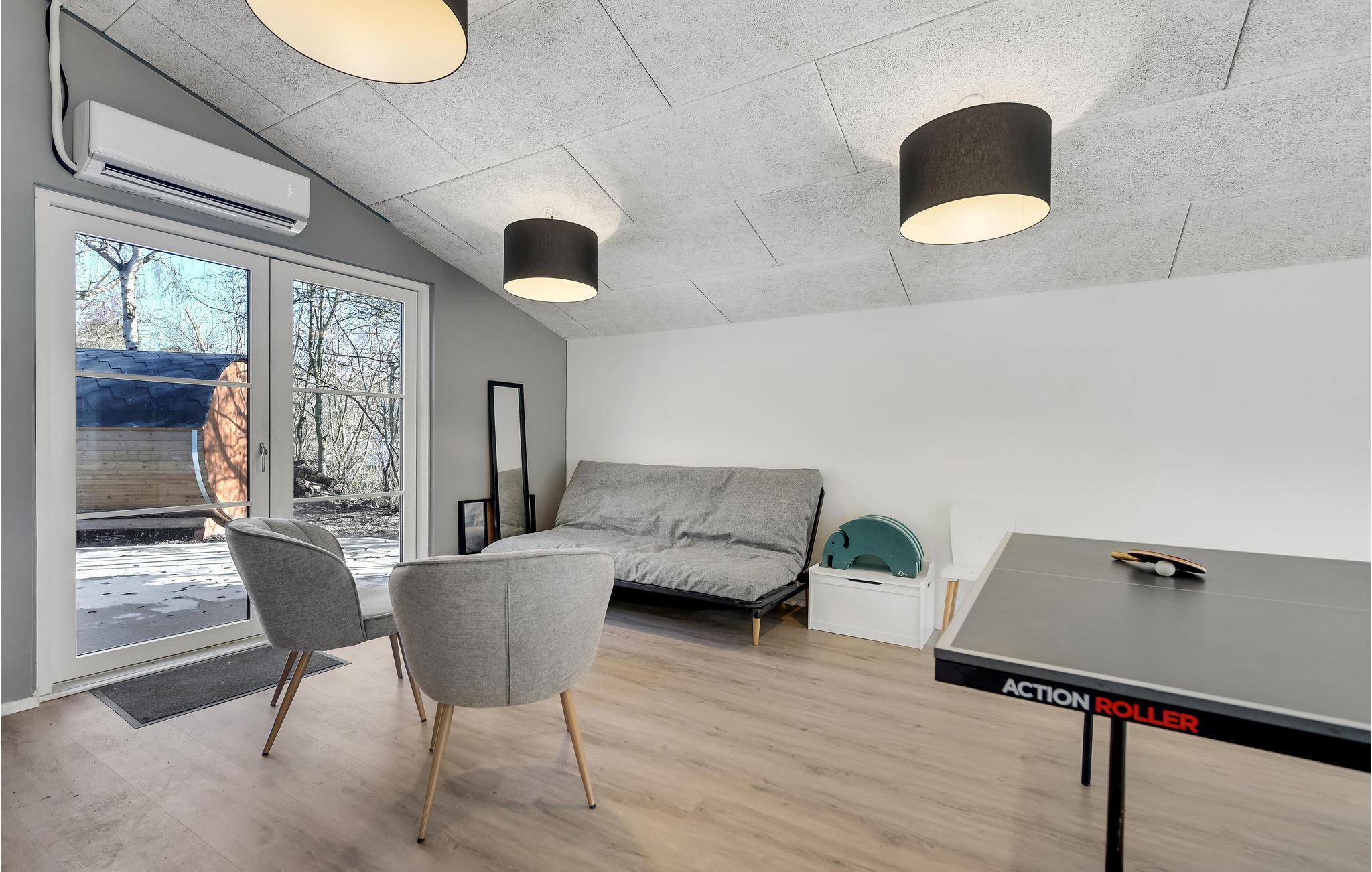 Hvis I drømmer om at lade op i naturen, og samtidig ikke vil undvære komfort, så er dette hus helt oplagt. Huset består af lyse rum med udsigt til haven, og indretningen er stilren og rolig. Sæt jer med dagens måltider, mens I kigger ud over haven og snup en rask dyst ved pool- eller bordtennisbordet, når I ikke er på farten. Efter en lang dag med strandliv, vandreture eller mountainbikekørsel kan I nyde en rolig pause i saunaen eller sætte jer i skæret fra ilden i brændeovnen og snakke om dagen, der er gået.