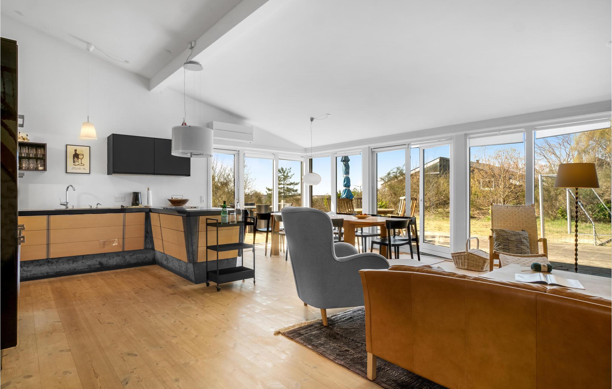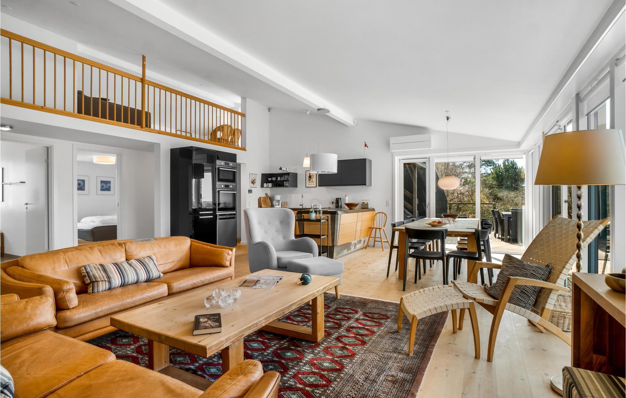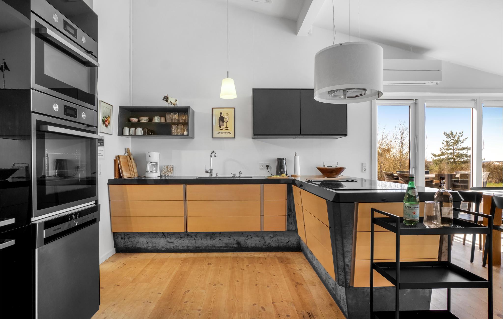 Komfortabelt feriehus ved Ebeltoft med pool, havudsigt og aktivitetsrum for hele familien.