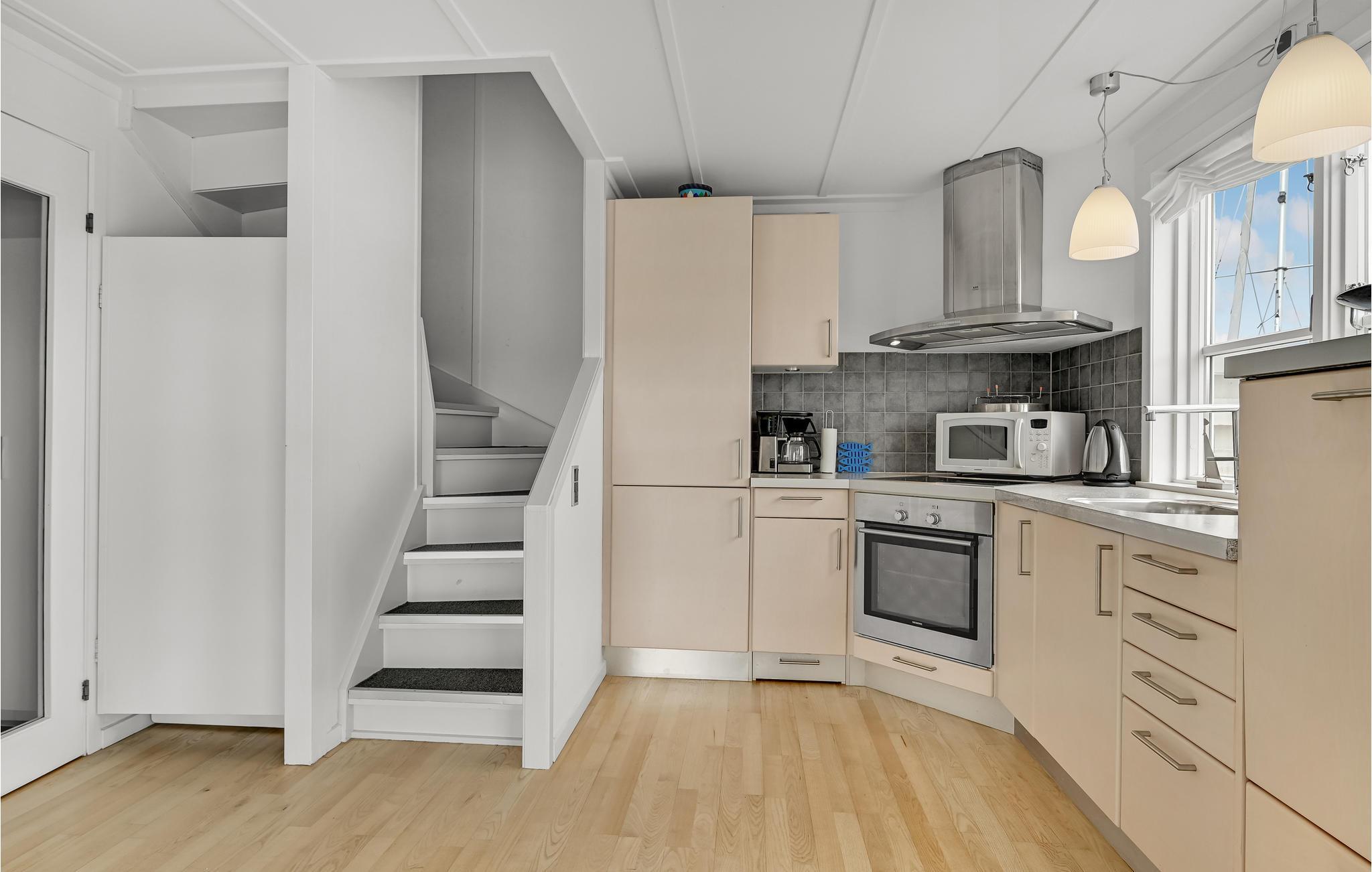 Huset er indrettet med kvalitetsmøbler og med sans for farver og sammensætning. Fra huset er der direkte udgang til en dejlig terrasse, som er beliggende lige ved vandet. Her kan man nyde solen og udsigten det meste af dagen.