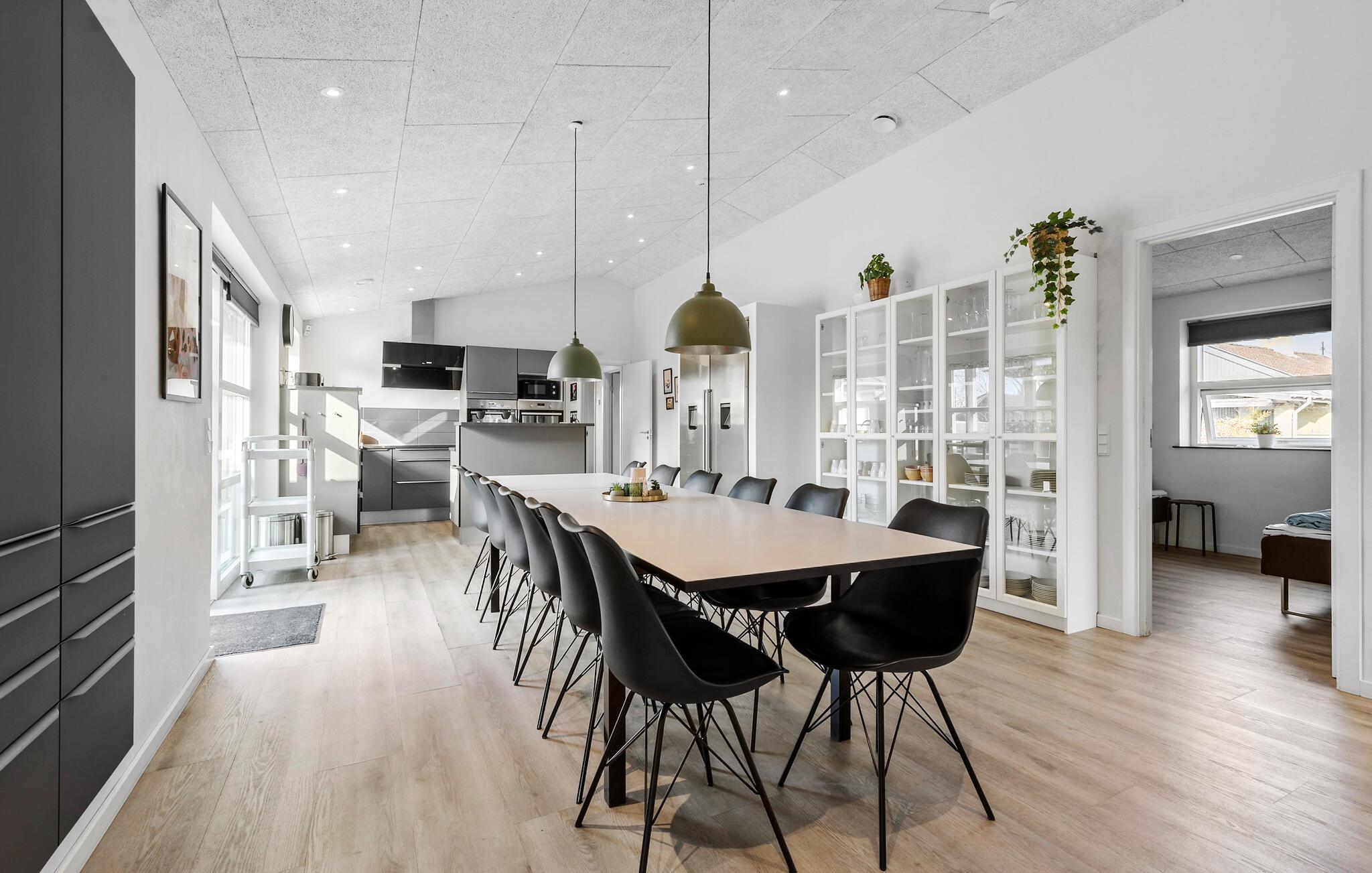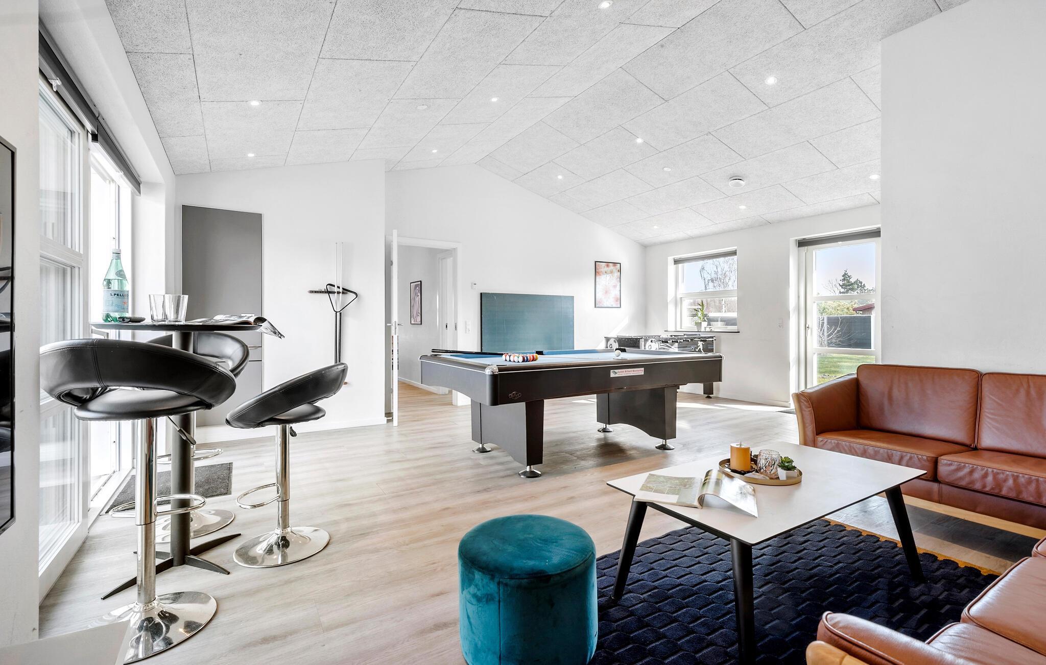 Velkommen til et flot og rummeligt sommerhus, hvor der er gode rammer til den store ferie med familien eller vennerne. Det hyggelige hus ligger i Øer Strand og er godt udstyret med faciliteter samt smarte indretningsløsninger, hvilket gør det ekstra nemt at slappe af. I stuen kan I samles efter dagens udflugter og nyde den fredfyldte stemning, mens ilden knitrer i brændeovnen. Sammensæt feriens lækre måltider i det moderne køkken og snup derefter en omgang pool eller bordfodbold. Trænger I til at læne jer godt tilbage med lidt wellness, kan I benytte saunaen.
