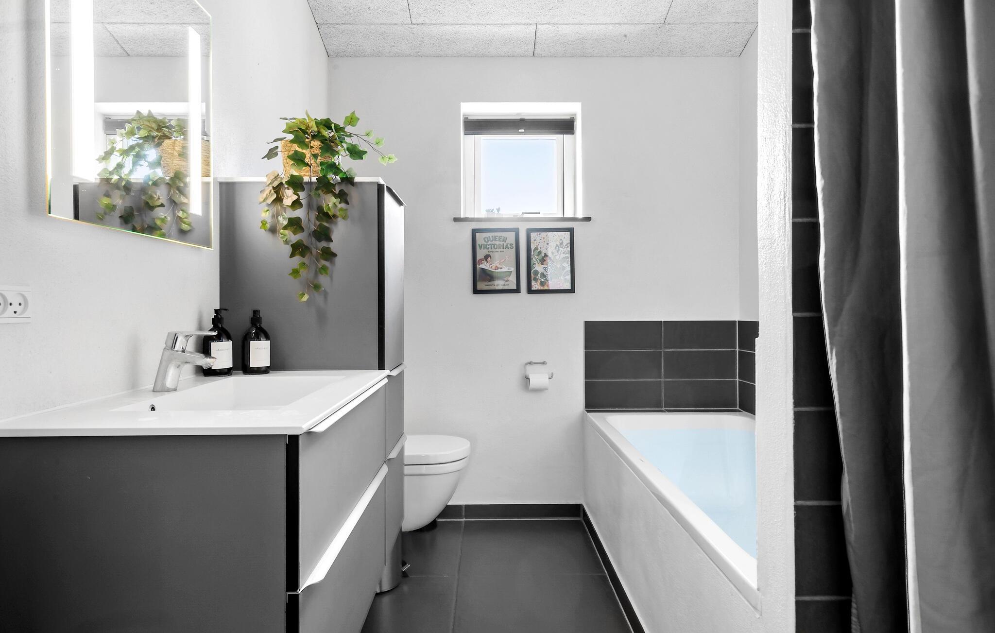 Badeværelse (nr. 1) - WC. Varmt og koldt vand. Bruser og badekar