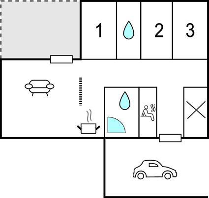 Badeværelse (nr. 2) - WC. Varmt og koldt vand. Bruser
