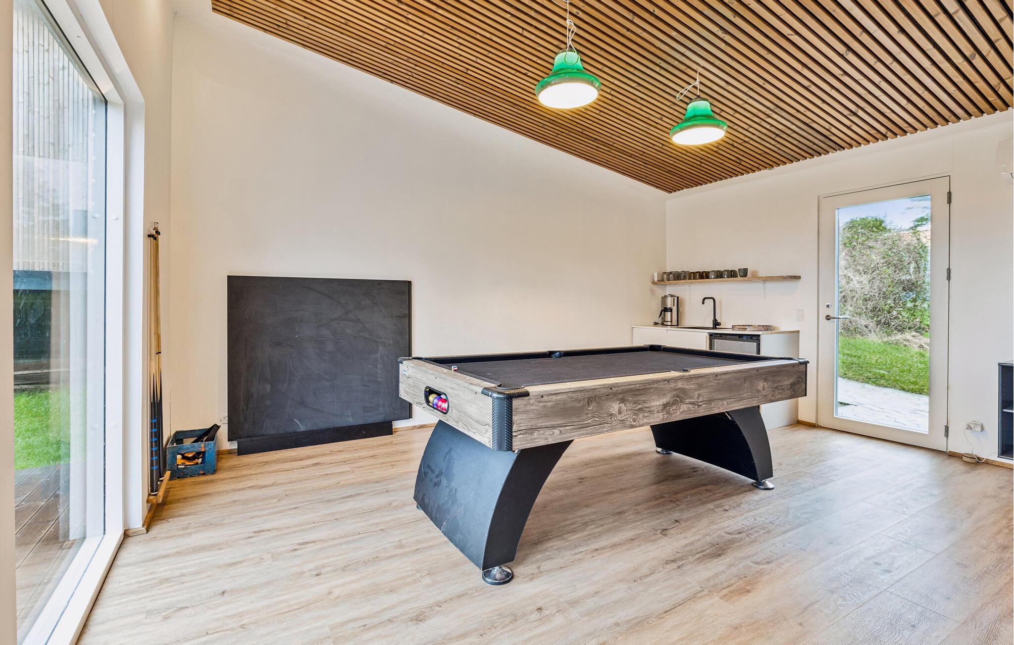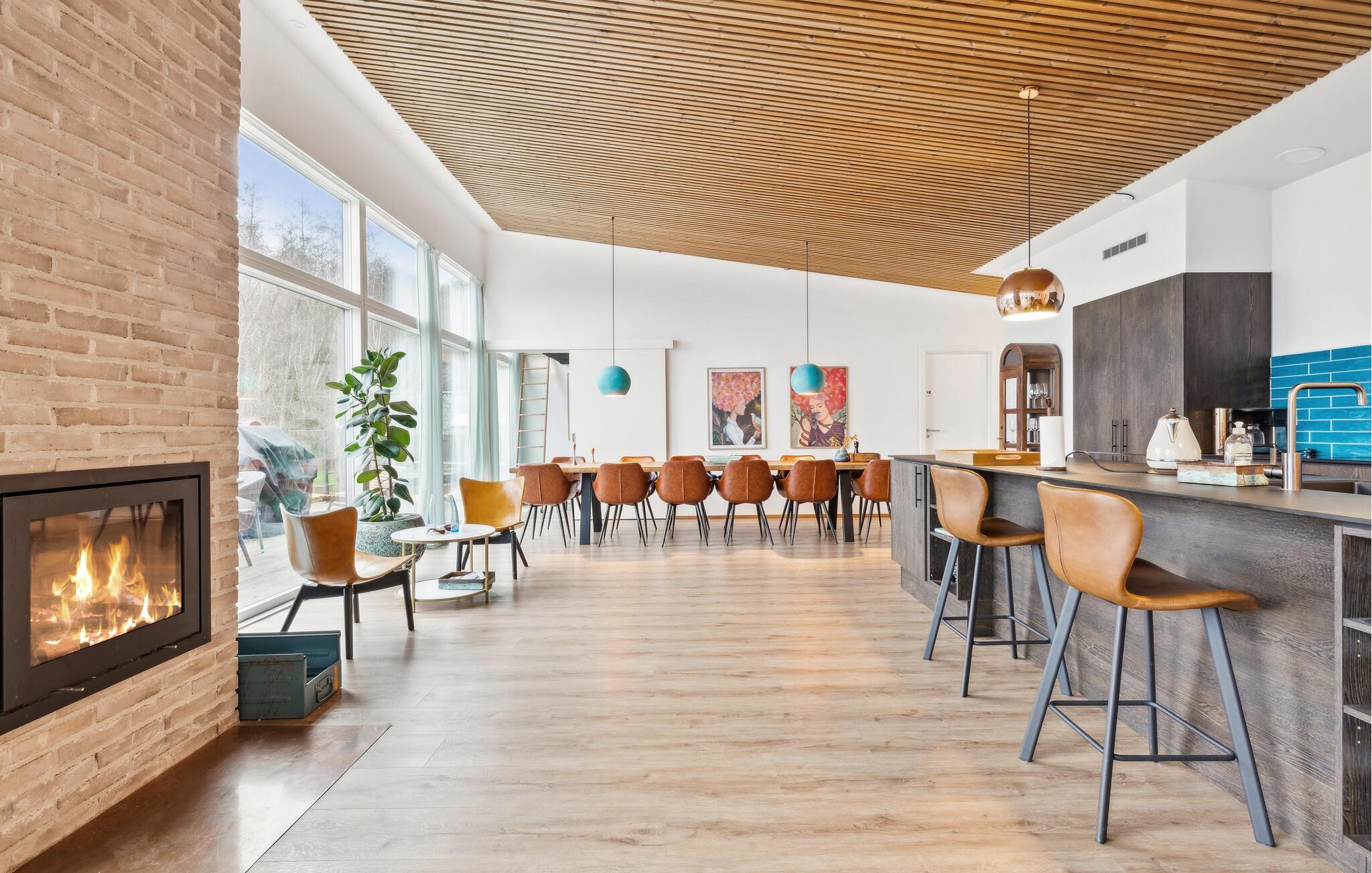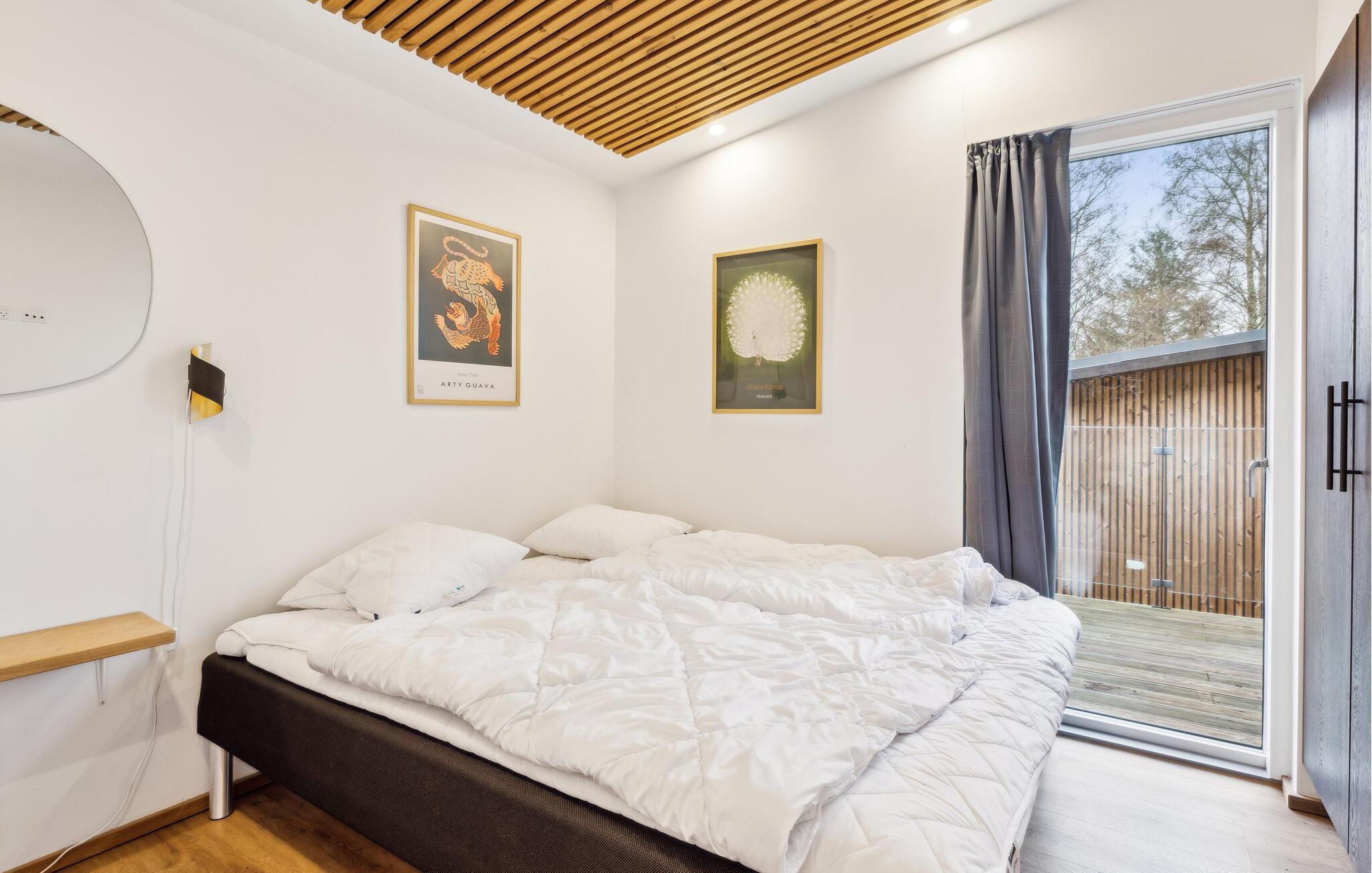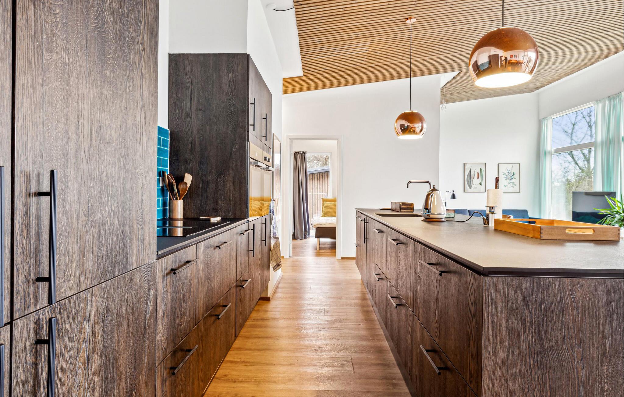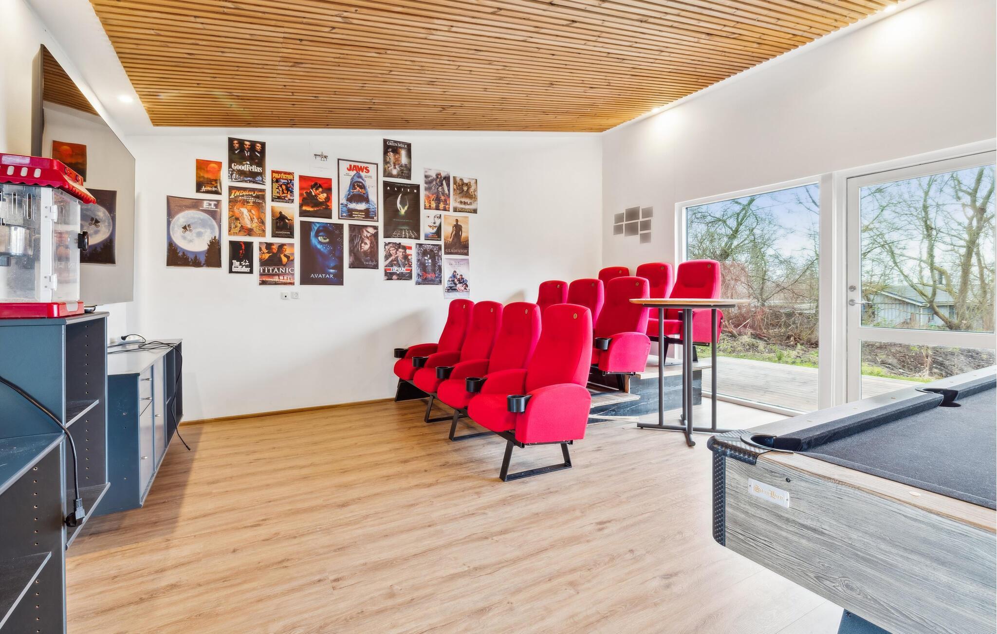 På den sydlige del af Jyllands næse ligger Øer Strand, og her gemmer sig denne rummelige perle af en luksusbolig, der danner rammen om en helt fantastisk ferie med den udvidede familie. Huset er yderst rummeligt og er indrettet med sans for detaljen og den gode stil en masse. Møblerne og interiøret emmer af kvalitet over hele linjen og prydes af den vidunderlige udsigt over landskabet gennem de store panoramavinduer, som kan nydes under en god middag ved det lange spisebord. Tænd op i pejsen på de kølige dage og nyd varmen og den rolige knitren, mens I runder af med drinks og en god film i det behagelige sofahjørne. Hjemmebiografen er noget ud over det sædvanlige, så her kan I måske lave afstemning om, hvilken film, der skal vises, mens I gør popcornene klar. Underholdning og indtryk kan sættes på pause for en stund på terrassen, hvor I kan sætte jer og nyde havudsigten.