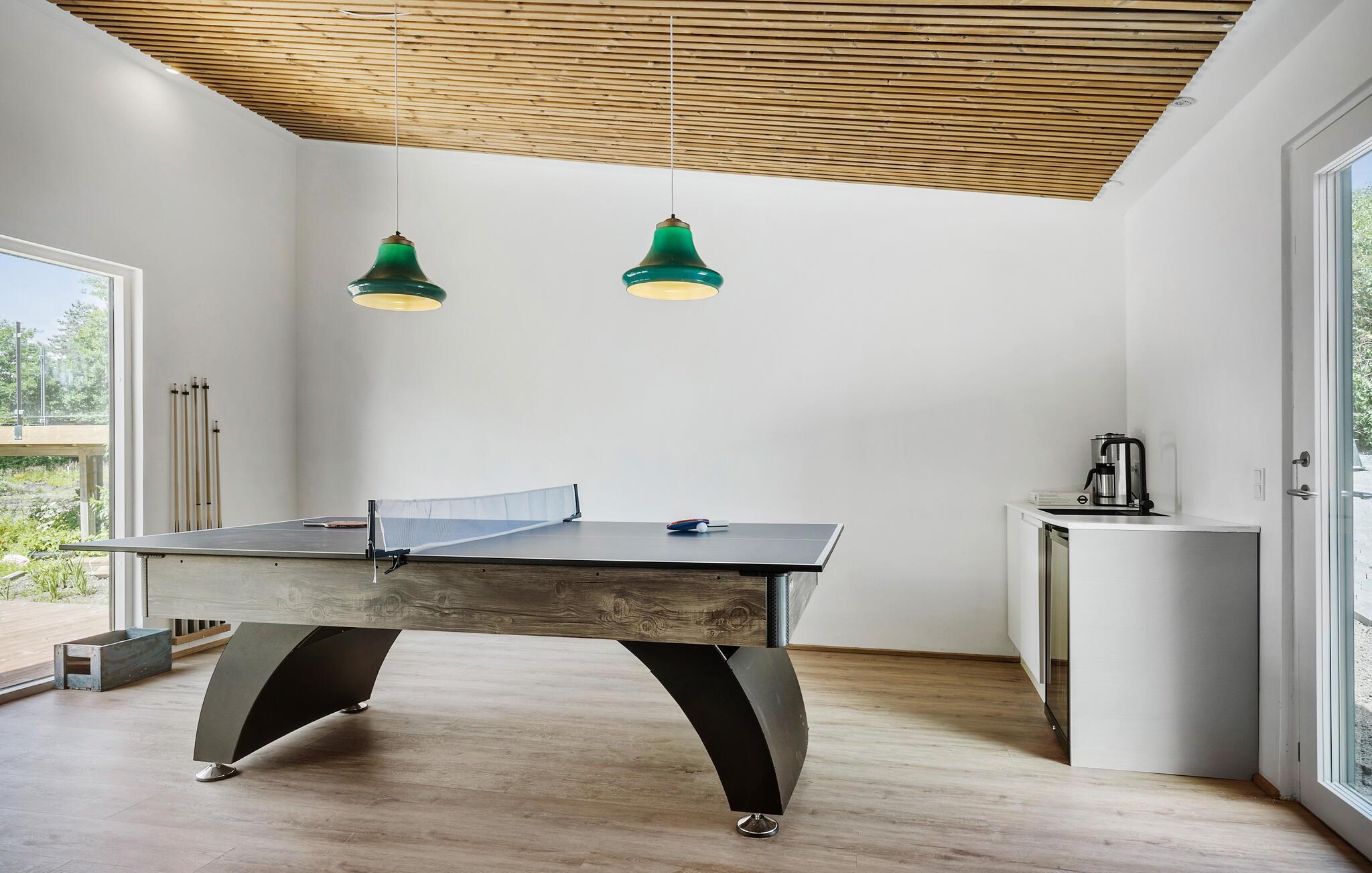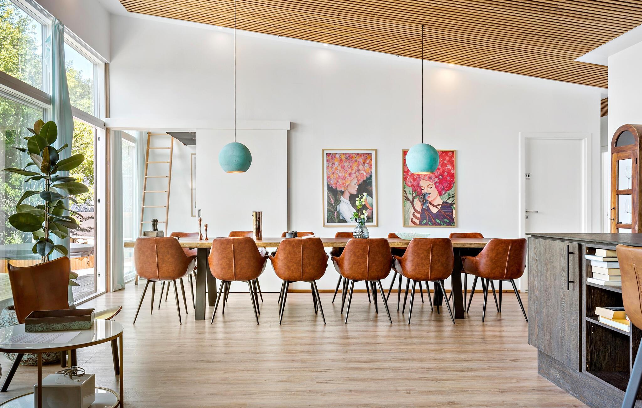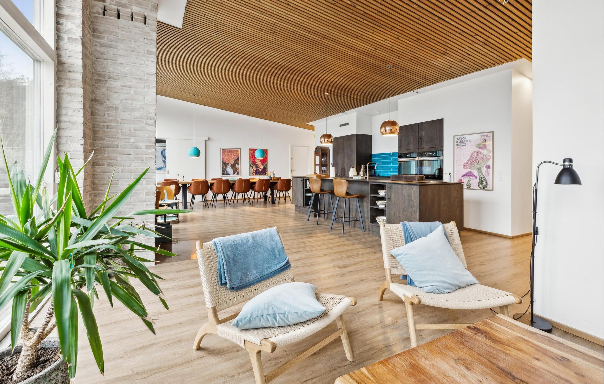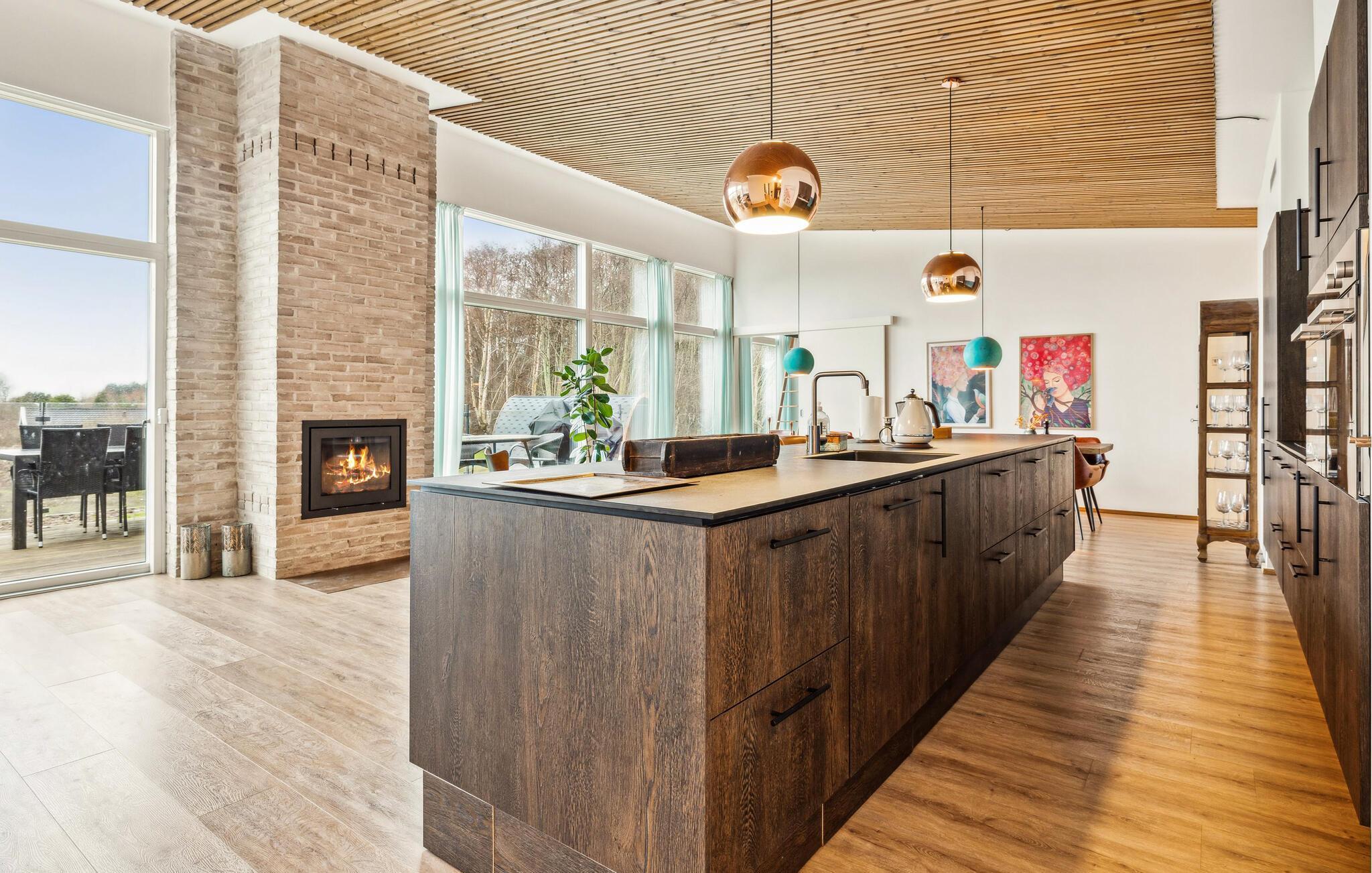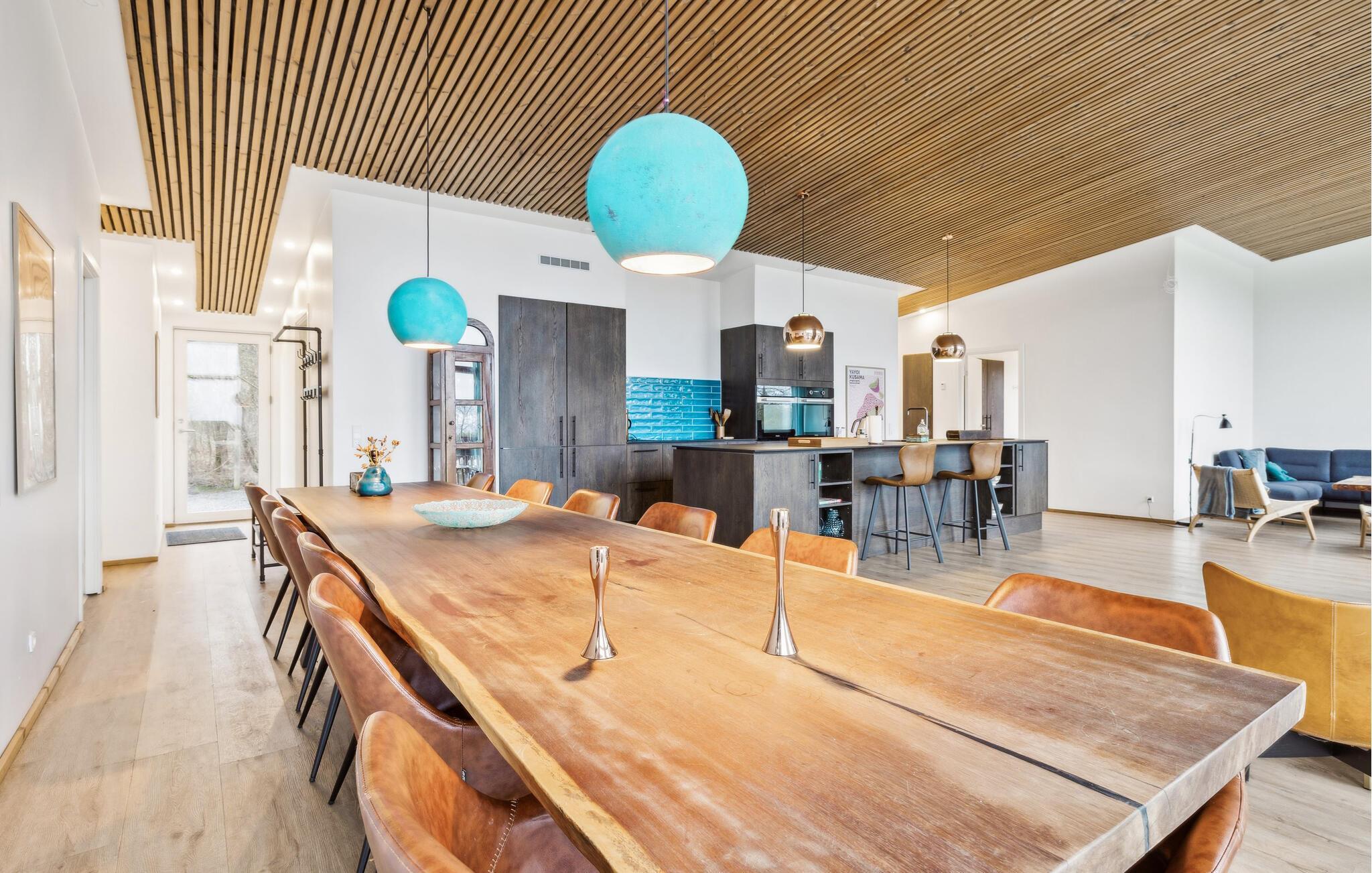 På den sydlige del af Jyllands næse ligger Øer Strand, og her gemmer sig denne rummelige perle af en luksusbolig, der danner rammen om en helt fantastisk ferie med den udvidede familie. Huset er yderst rummeligt og er indrettet med sans for detaljen og den gode stil en masse. Møblerne og interiøret emmer af kvalitet over hele linjen og prydes af den vidunderlige udsigt over landskabet gennem de store panoramavinduer, som kan nydes under en god middag ved det lange spisebord. Tænd op i pejsen på de kølige dage og nyd varmen og den rolige knitren, mens I runder af med drinks og en god film i det behagelige sofahjørne. Hjemmebiografen er noget ud over det sædvanlige, så her kan I måske lave afstemning om, hvilken film, der skal vises, mens I gør popcornene klar. Underholdning og indtryk kan sættes på pause for en stund på terrassen, hvor I kan sætte jer og nyde havudsigten.