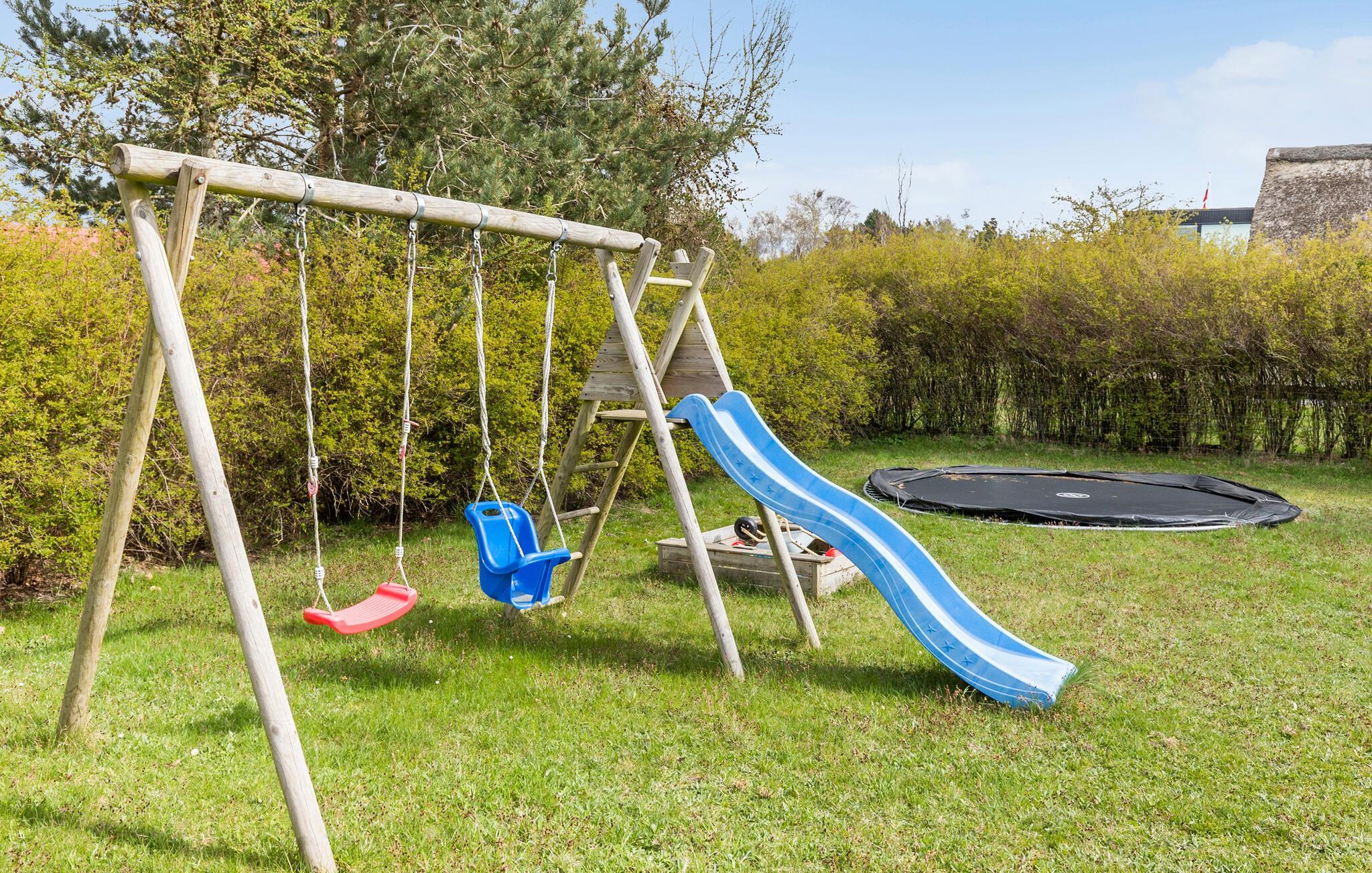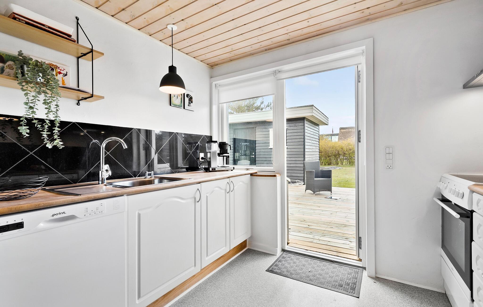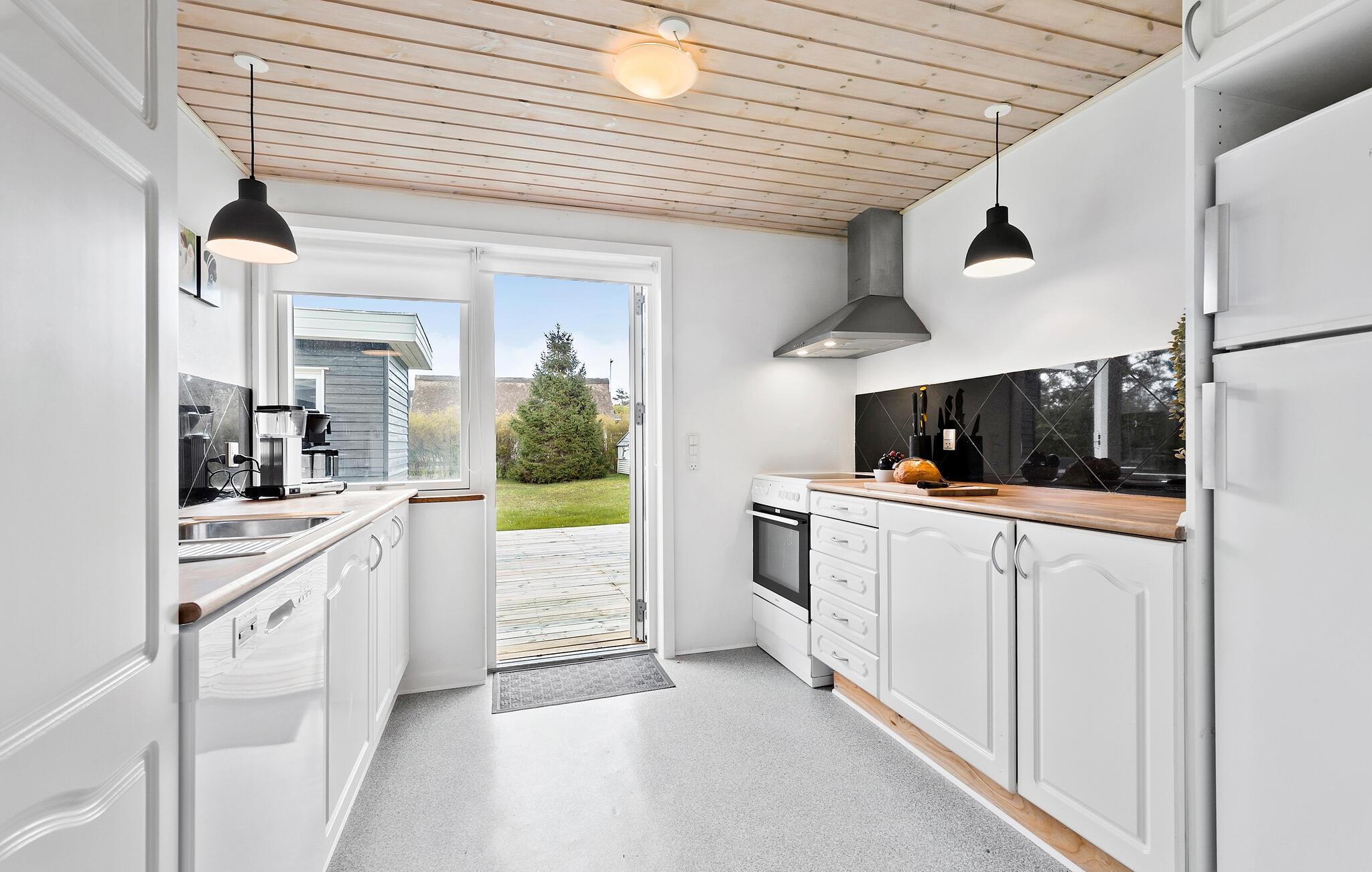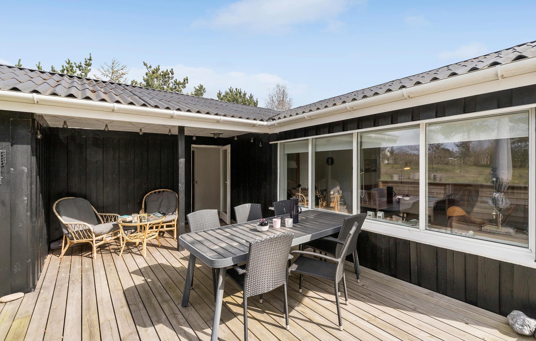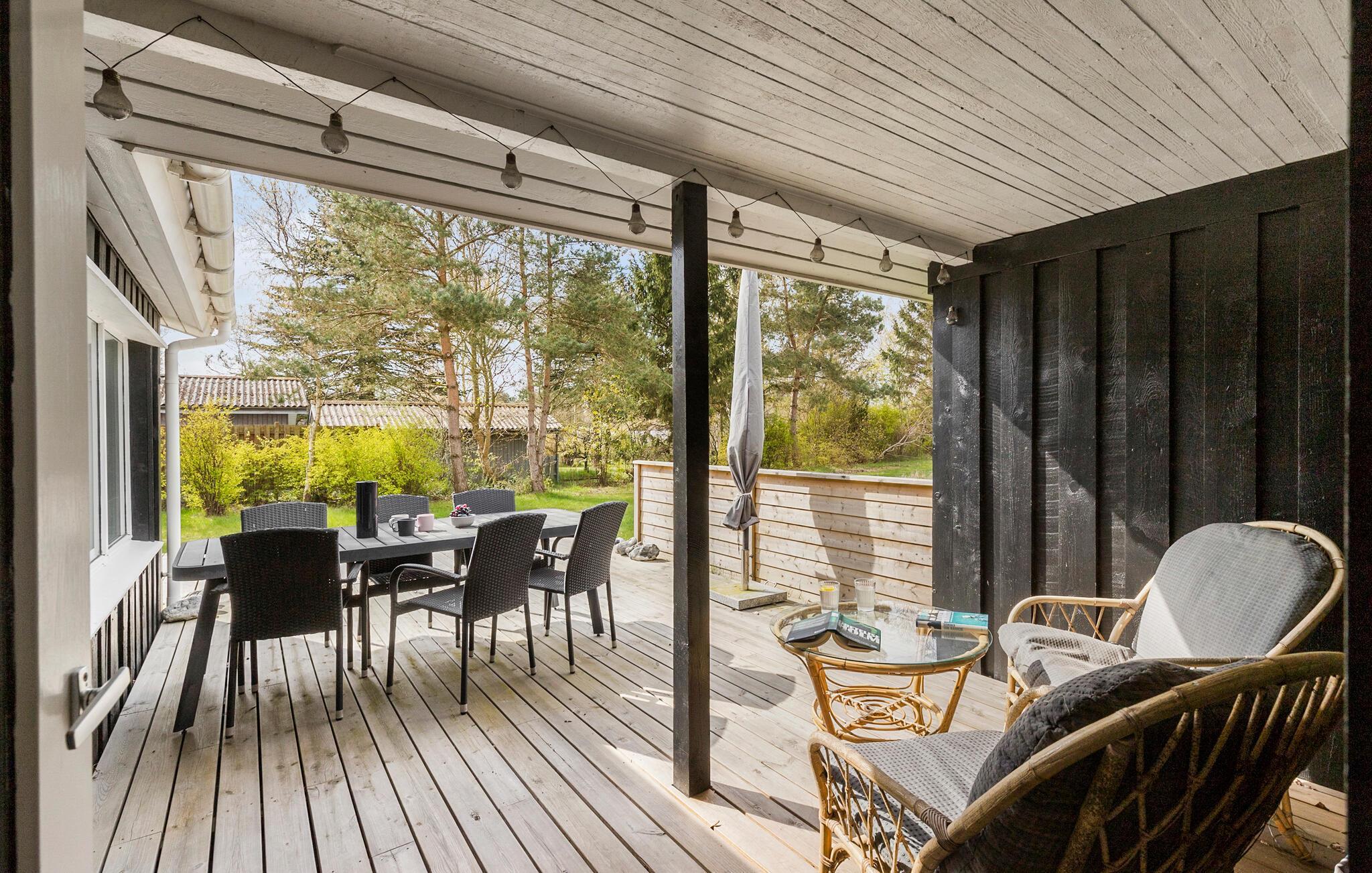 Når solen skinner, er det bare at trække ud på den store træterrasse, hvor I kan finde sol, skygge og læ efter behov i løbet af dagen. Nyd solen, læs en god bog lad børnene lege i den store, indhegnede have, mens I tænder op i grillen og tilbereder familiens livretter under aftensolen.