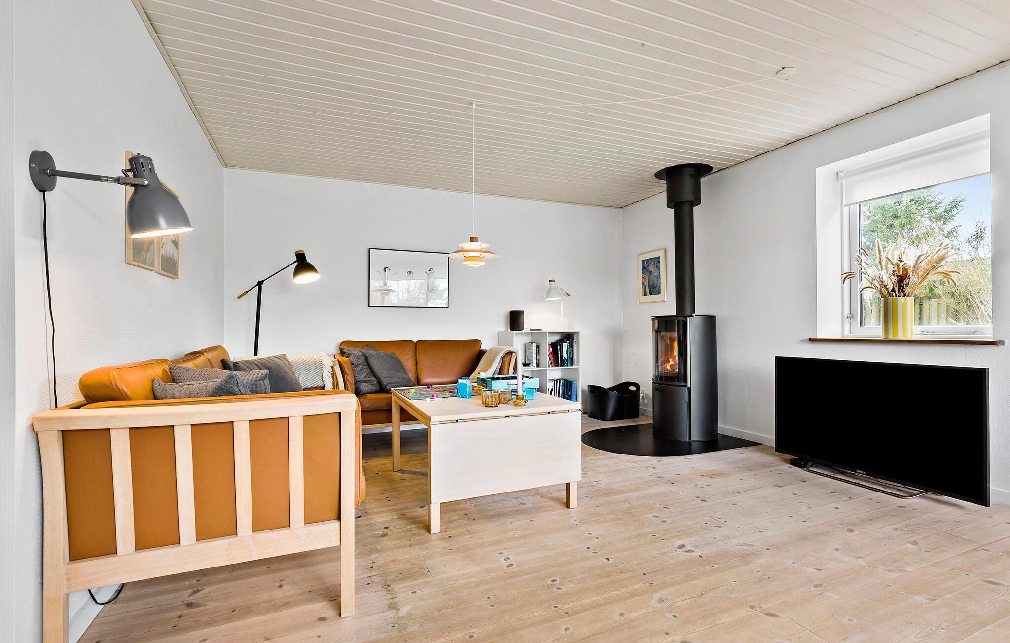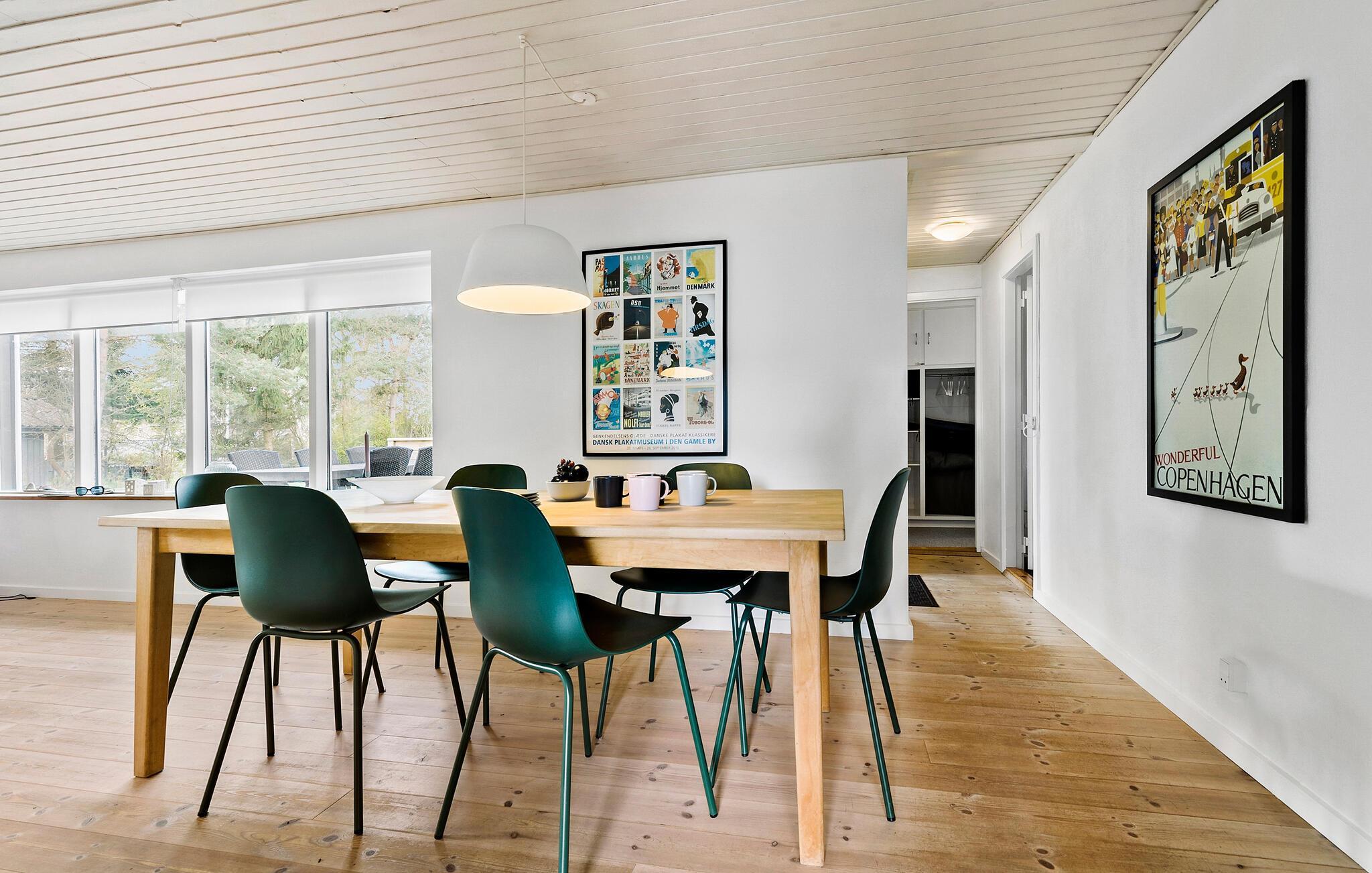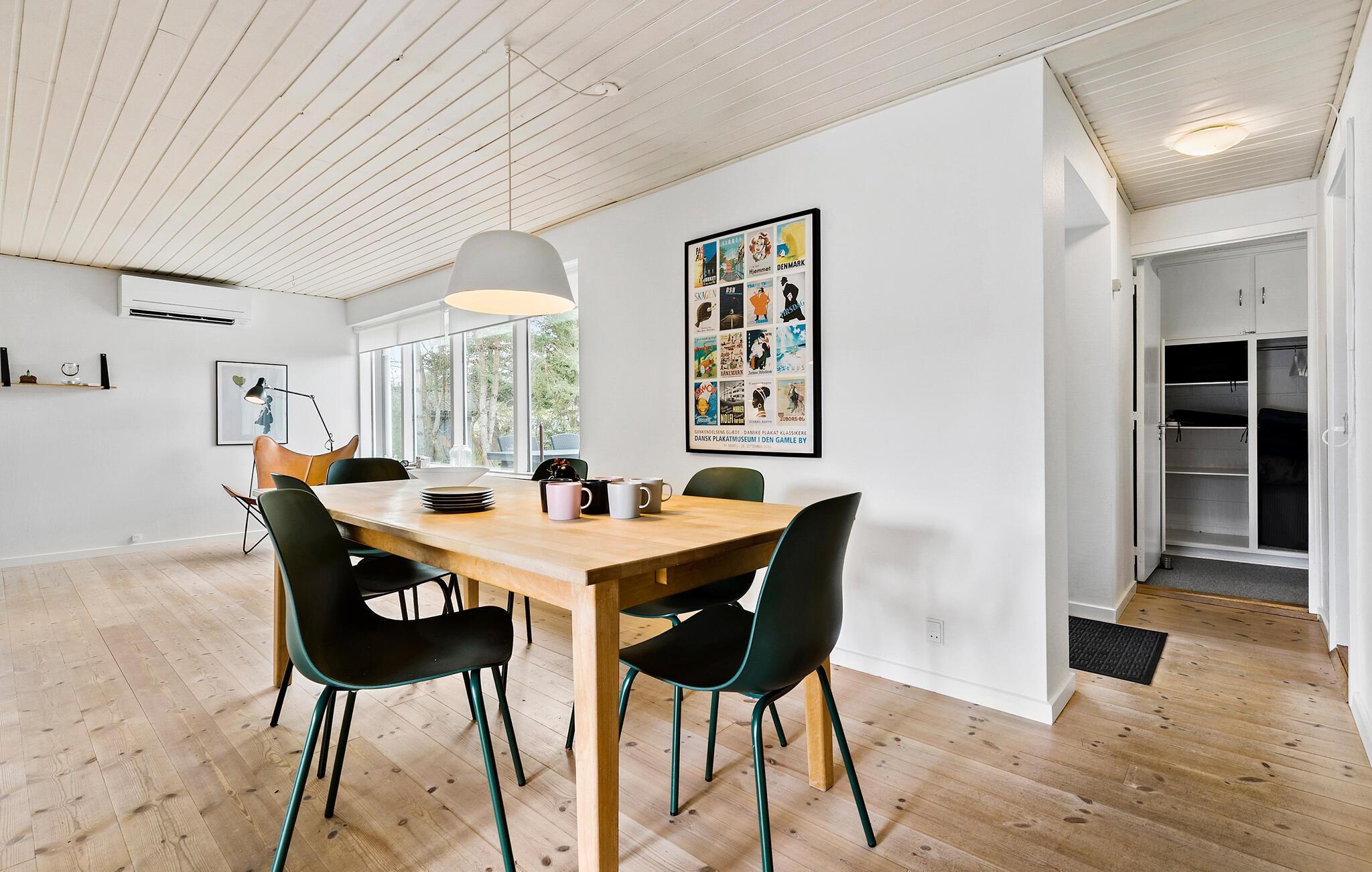 Velkommen til dette dejlige hus, der ligger på det sydligste Djursland og danner rammen om en herlig ferie med familien. Huset er flot indrettet med et åbent boligkoncept, trægulve og pæn kunst på væggene, der giver det indre et varmt udtryk og gør det nemt at slappe af med det samme, I ankommer. Tænd op i brændeovnen på de køligere dage og lad aftenen gå på hæld med en lækker aftensmad og brætspil i sofaen, mens I lægger planer for de kommende dage.