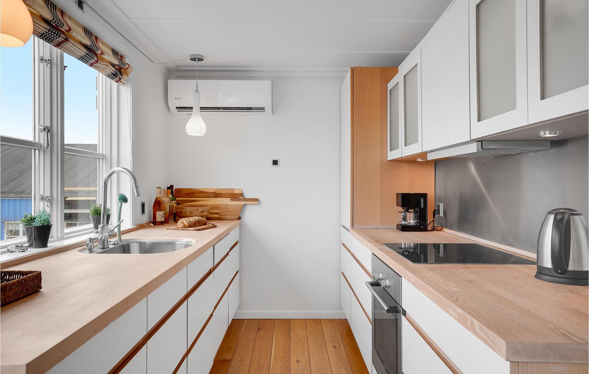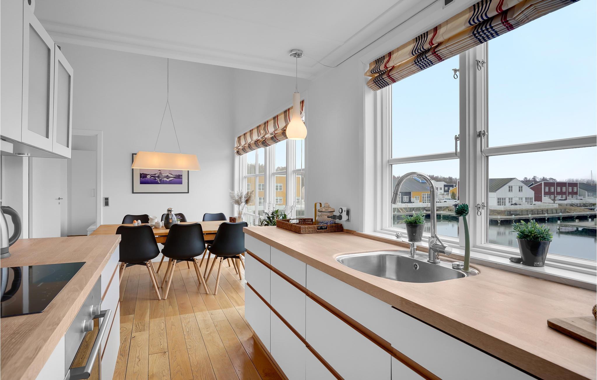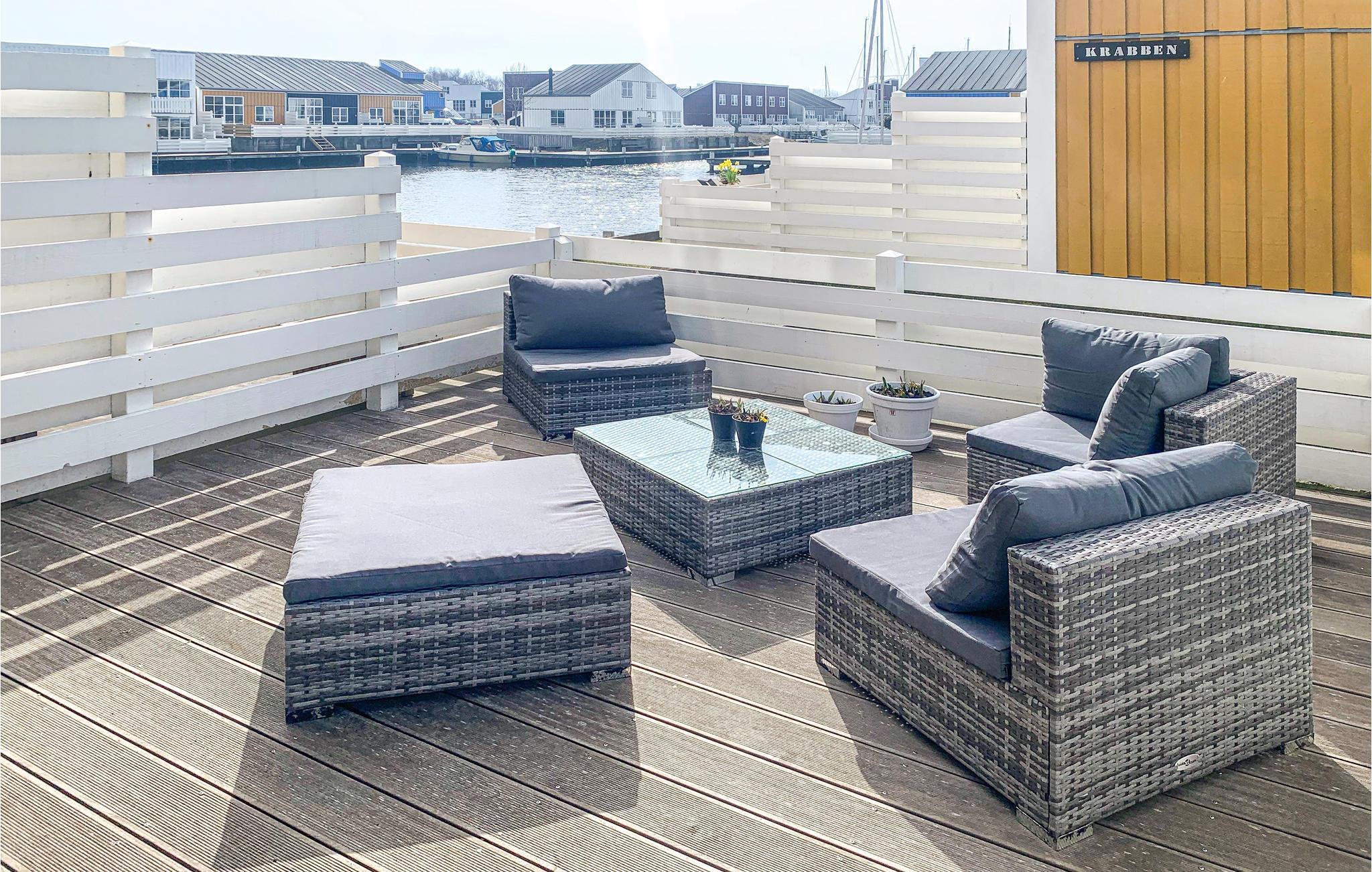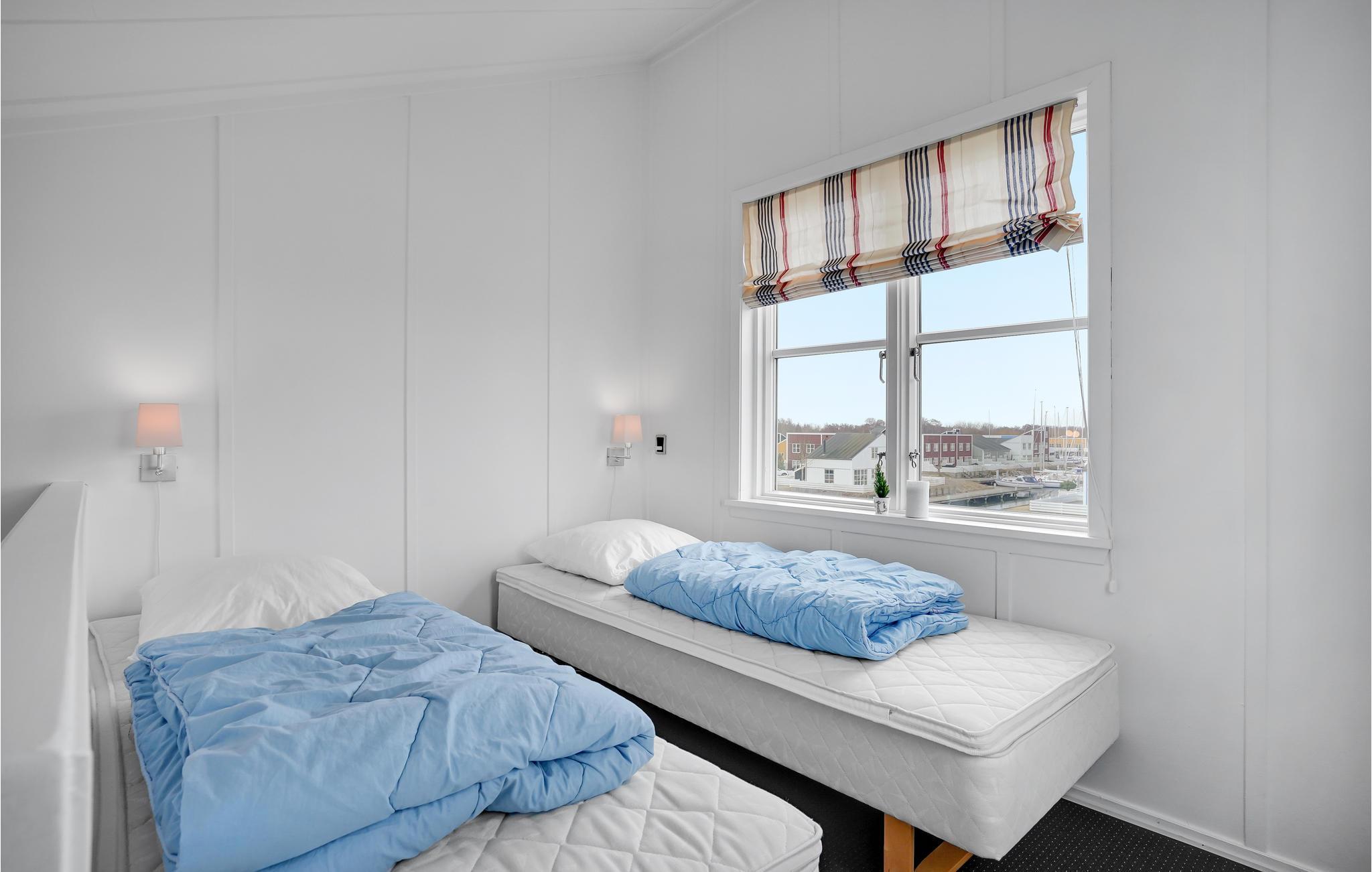 I dette charmerende og moderne rækkehus kan I tilbringe en uforglemmelig ferie med familie eller venner. Med 3 soveværelser, hver med 2 enkeltsenge, kan det rumme op til 6 personer. Indretningen er moderne og indbydende, og I kan nyde en smuk udsigt over havnebassinet fra alle vinduer. Huset er velegnet til en dejlig ferie i enhver sæson, og der er gulvvarme i badeværelset. I kan kun bruge TV'et til at streame fra jeres egne mobile enheder.