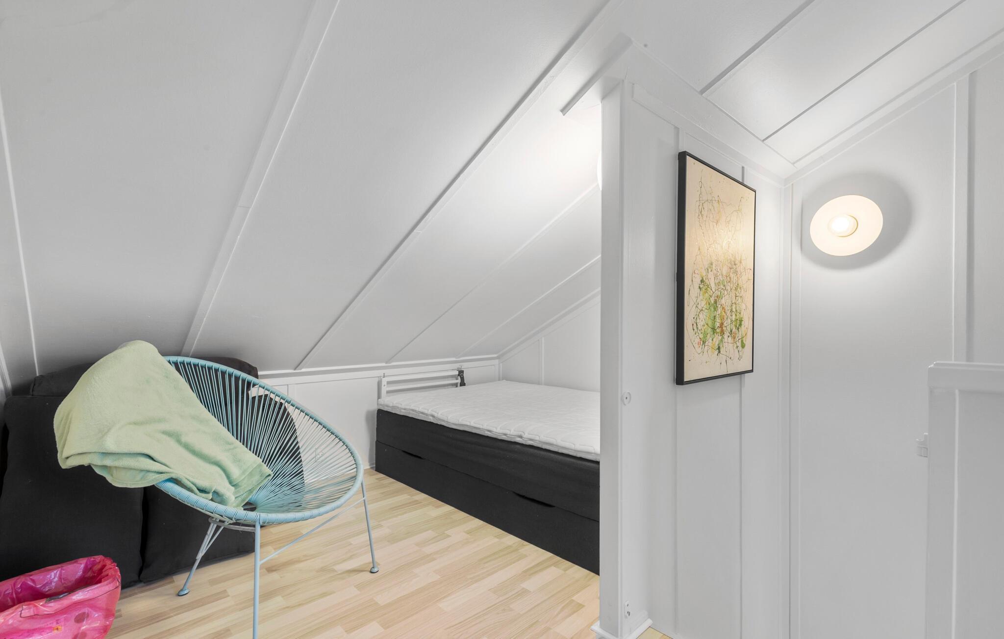 Jeres indbydende feriehus ved Øer Strand byder på to etager med masser af plads og en moderne, lys indretning, ideel til familier eller par, der ønsker at tilbringe afslappende dage sammen. Den åbne opholdsstue med spiseplads og køkken fører direkte ud til terrassen og skaber en luftig, indbydende atmosfære. På den indhegnede terrasse, udstyret med komfortable havemøbler, kan I nyde udsigten over bådene i havnen og starte dagen afslappet med en udendørs morgenmad. Udsigten over havnen inviterer jer til at lade sjælen finde ro og nyde den maritime atmosfære.