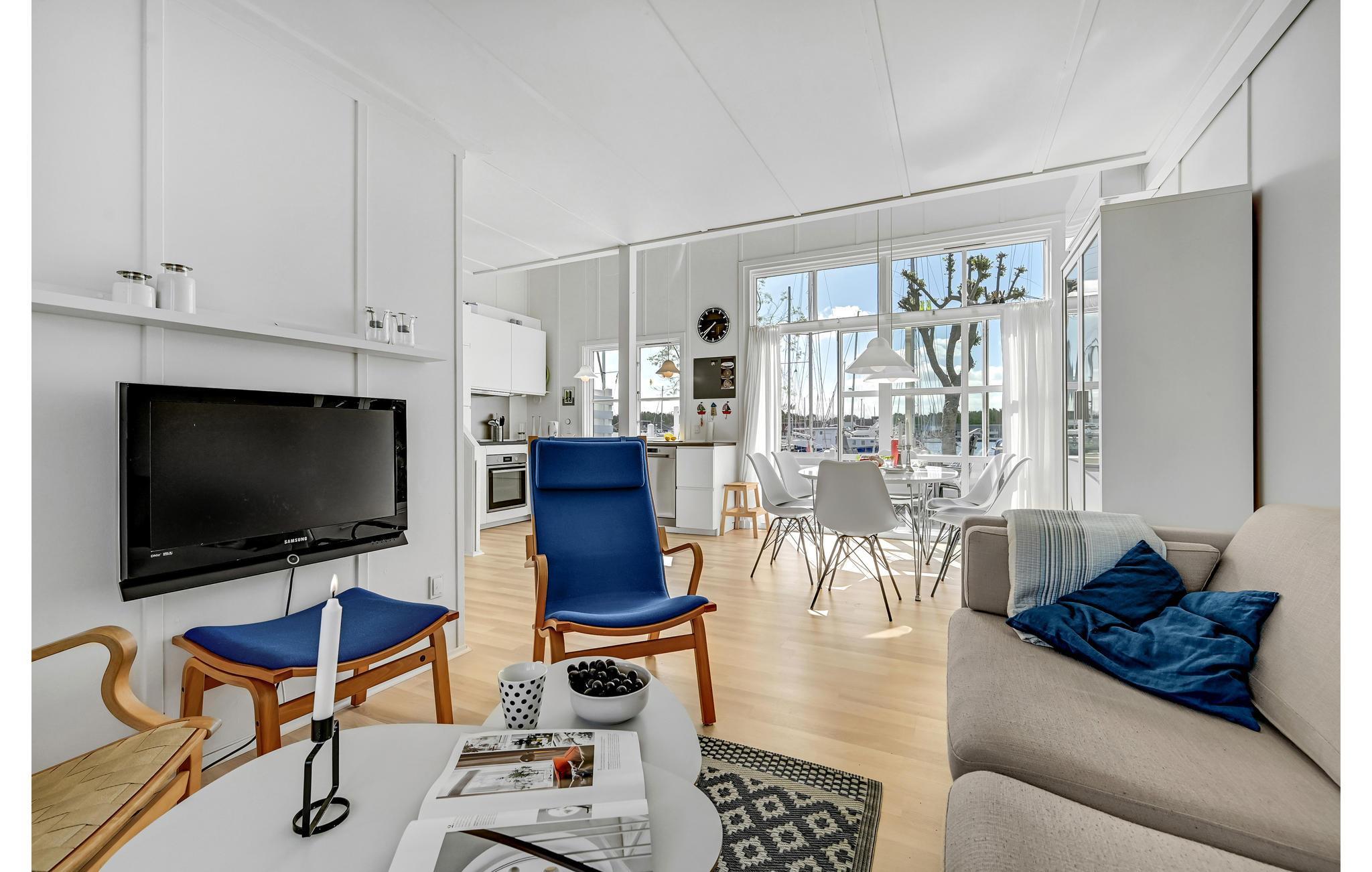 Glæd jer til denne charmerende bolig, som byder på en helt speciel atmosfære med moderne design og store vinduer ud mod havnen. Rummene er lyst og behageligt indrettet med hvide flader og flotte farvekontraster. Her er der mange gode hjørner, hvor I kan slå jer ned med en bog og en kop kaffe. I området er der et udvalg af aktiviteter, herunder fælles indendørspool (mod gebyr), sauna og grill, og for de mere aktive er der også en volleyballbane, tennisbane, padel og fodboldmål.