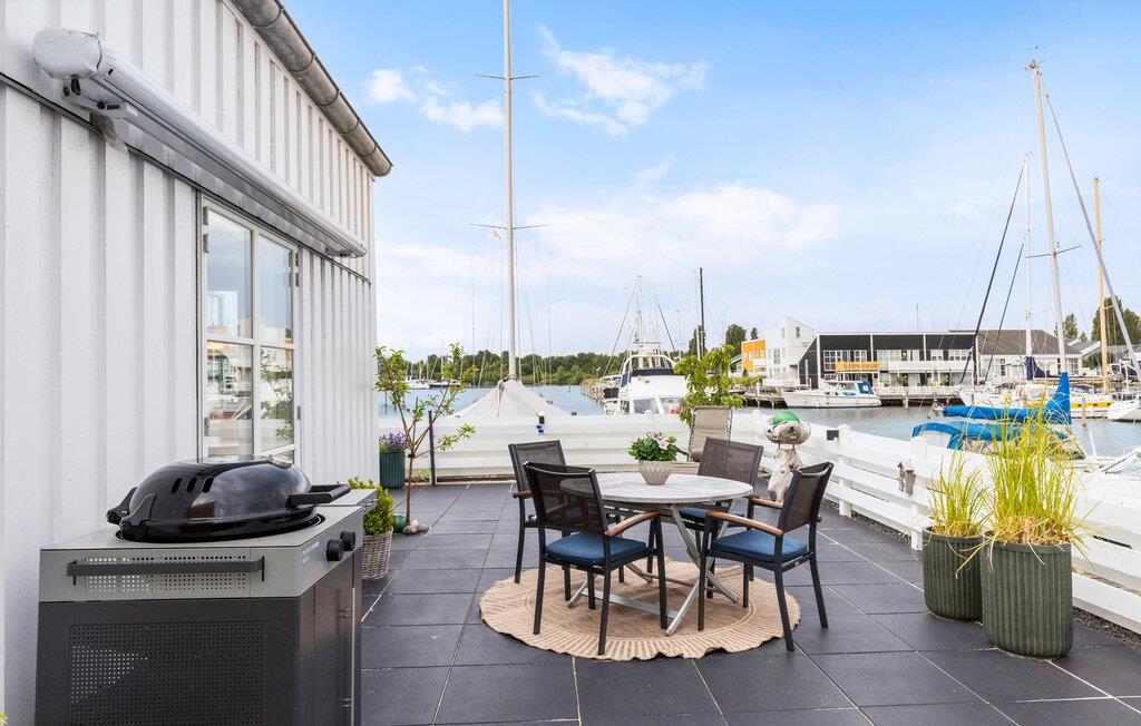 Begynd dagene udendørs og lad morgensolen varme jer. På den store terrasse kan I sidde lige ved vandet og nyde udsigten over bådene, der gynger blidt i havnen. Om eftermiddagen inviterer flere siddeområder rundt om i huset jer til at læse i fred, nyde en kølig drink eller blot betragte travlheden på molen.