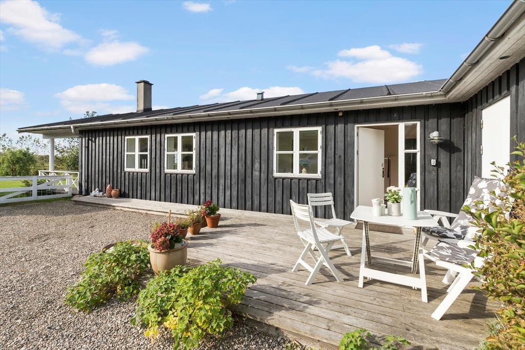 Den rummelige terrasse er perfekt til afslappede dage i solen. Her kan du sidde med en kop kaffe om morgenen og lade træernes brusen være baggrundsmusik til din dag. Når aftenen falder på, er det tid til en hyggelig grillmiddag, hvor I kan nyde den friske luft og måske fange et glimt af solnedgangen. Grunden omkring huset er stor, fuldt indhegnet - hvor både børn og hunde kan lege frit og trygt - og giver rig mulighed for leg og afslapning, måske et spil petanque eller bare en rolig stund i liggestolen med en god bog?